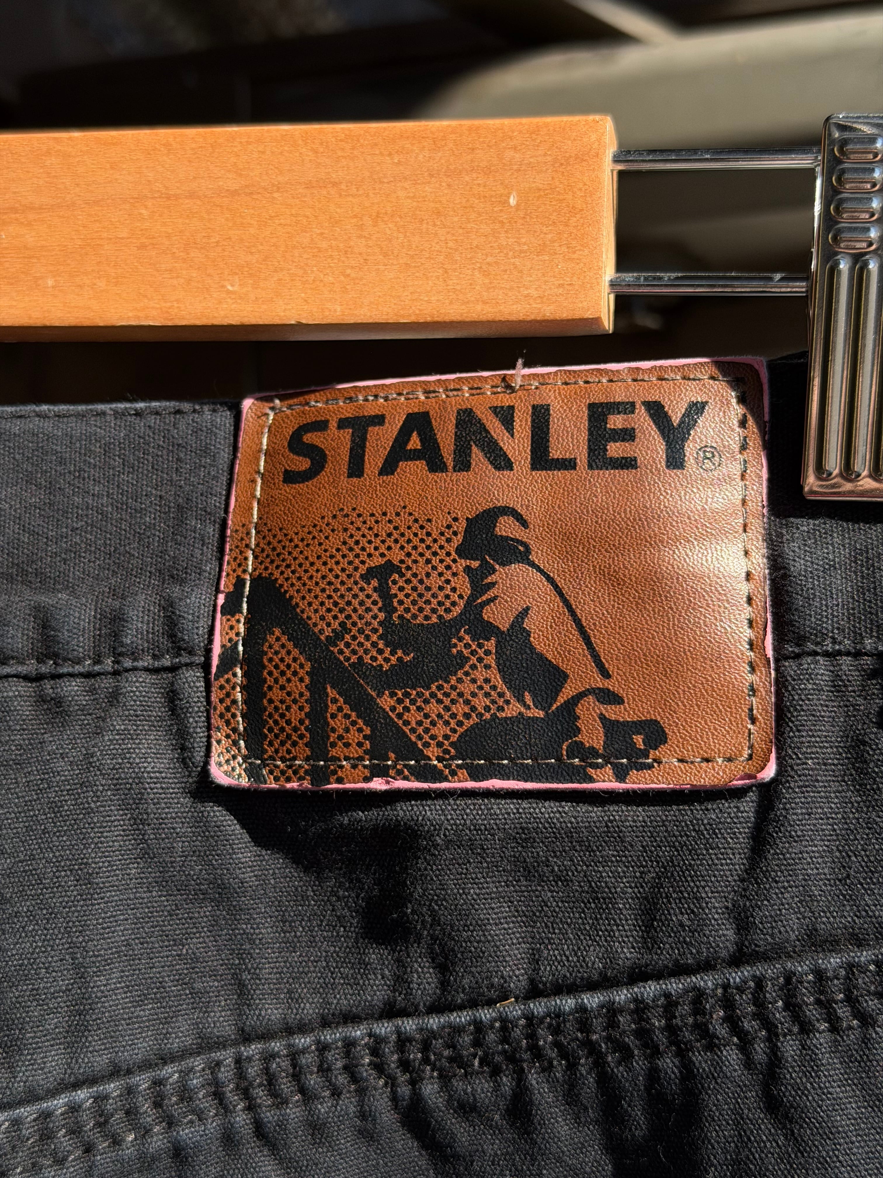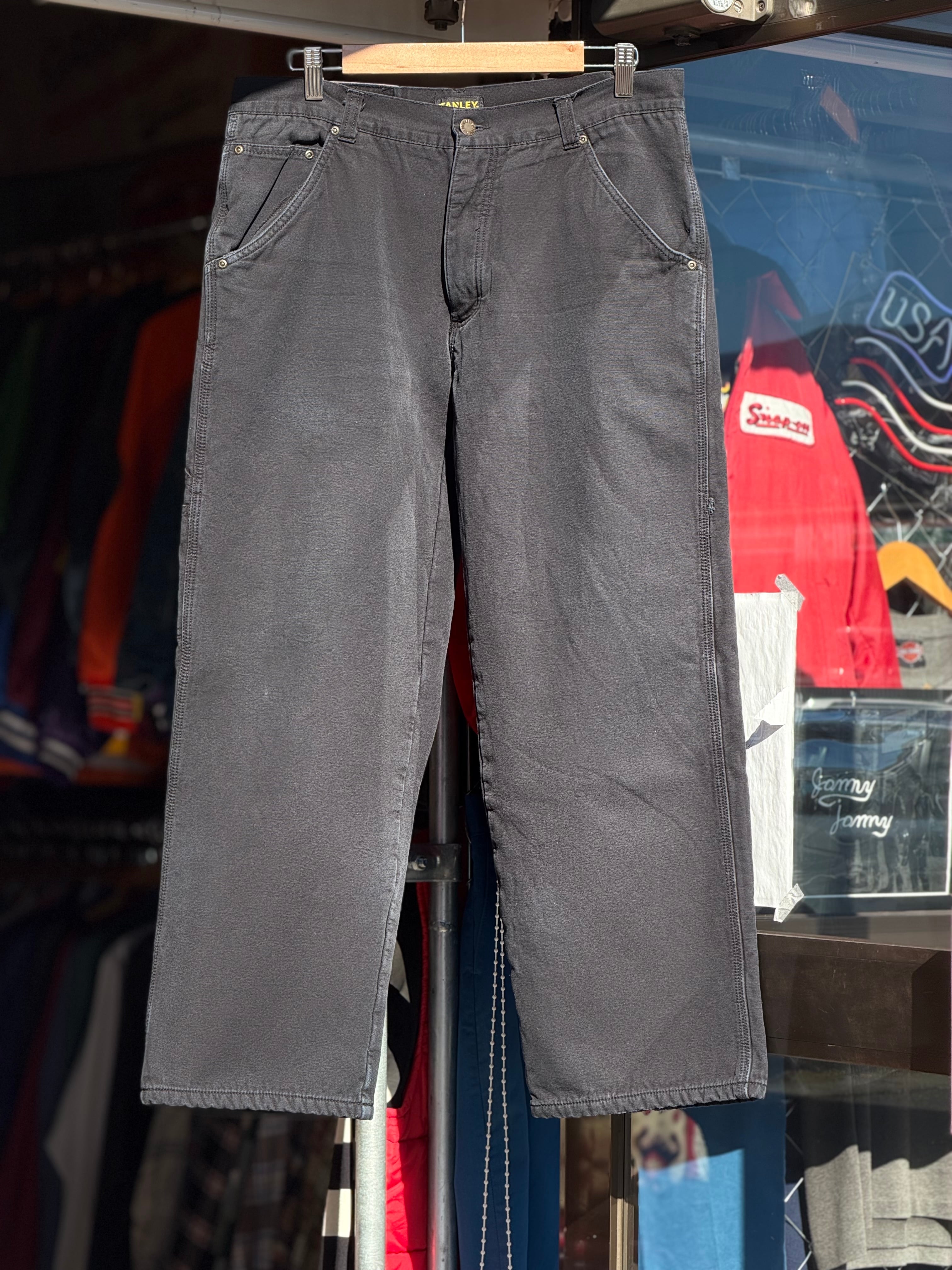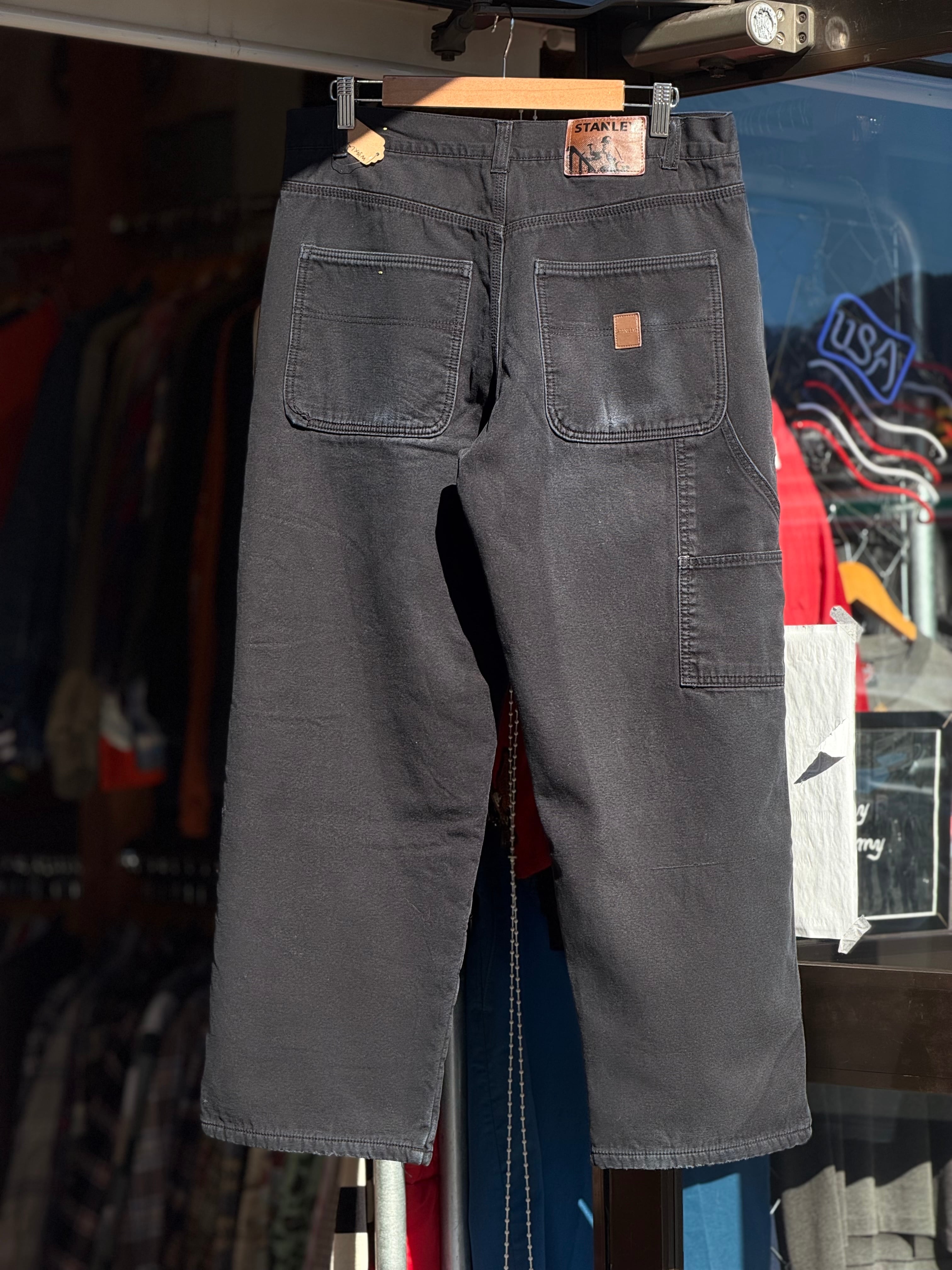 STANLEY フリースライナーペインターパンツ W34×L29 ブラック 裏地付きペインターパンツ 黒 キャンバスダック 暖パン ボンディング 冬 ワークパンツ アメカジ 古着 カーペンターパンツ ウォームパンツ