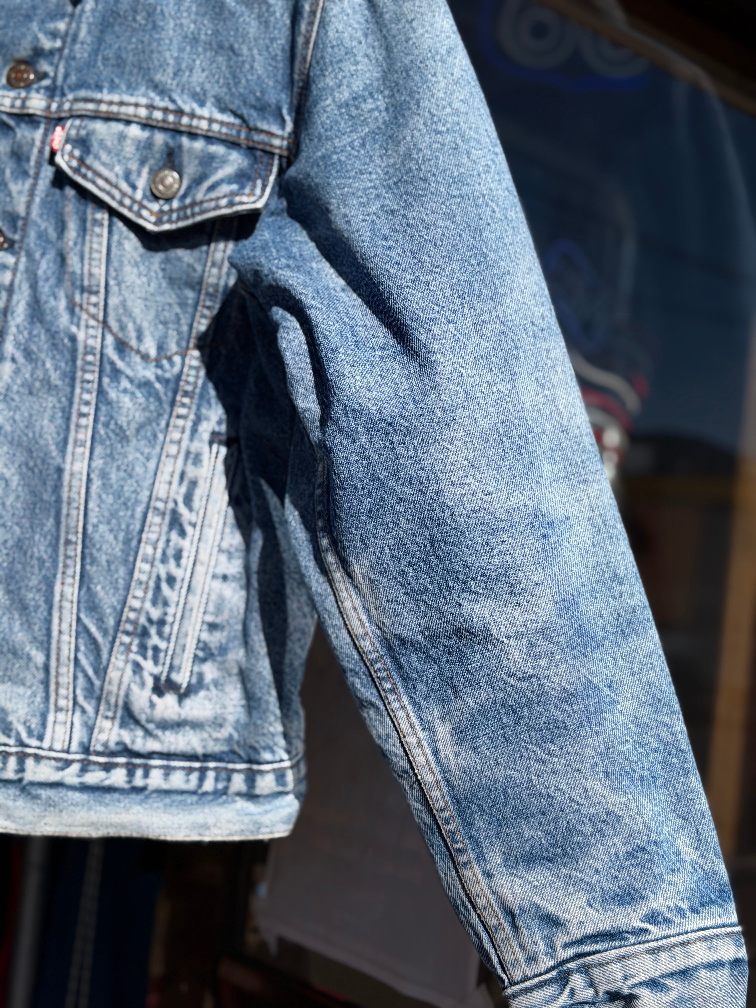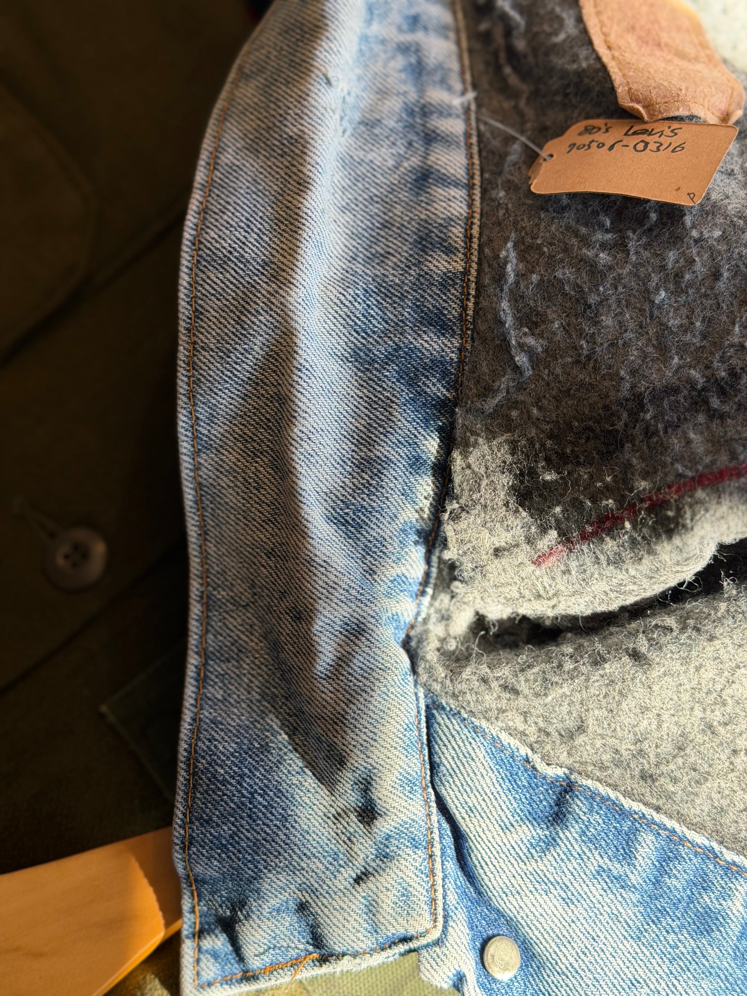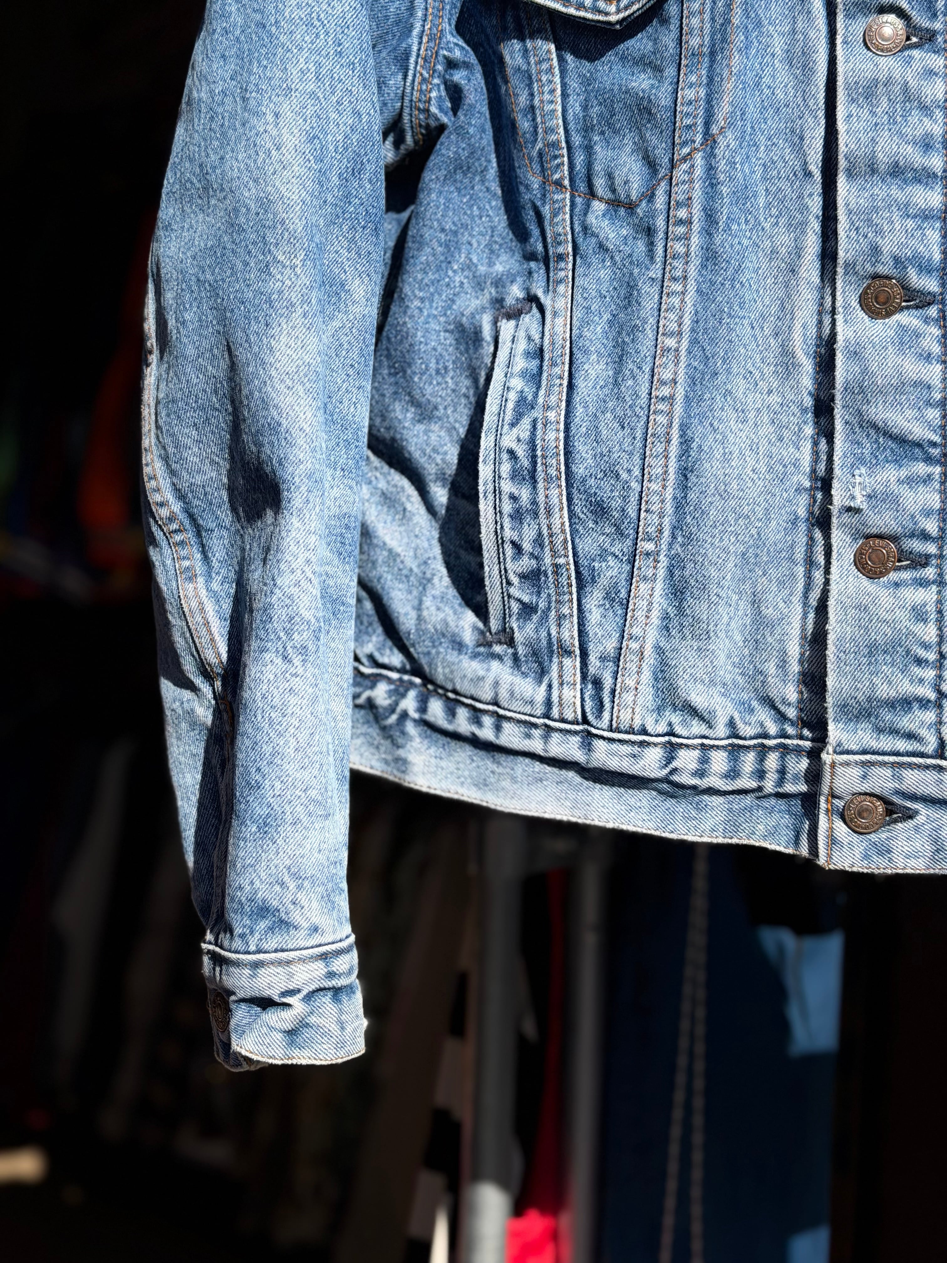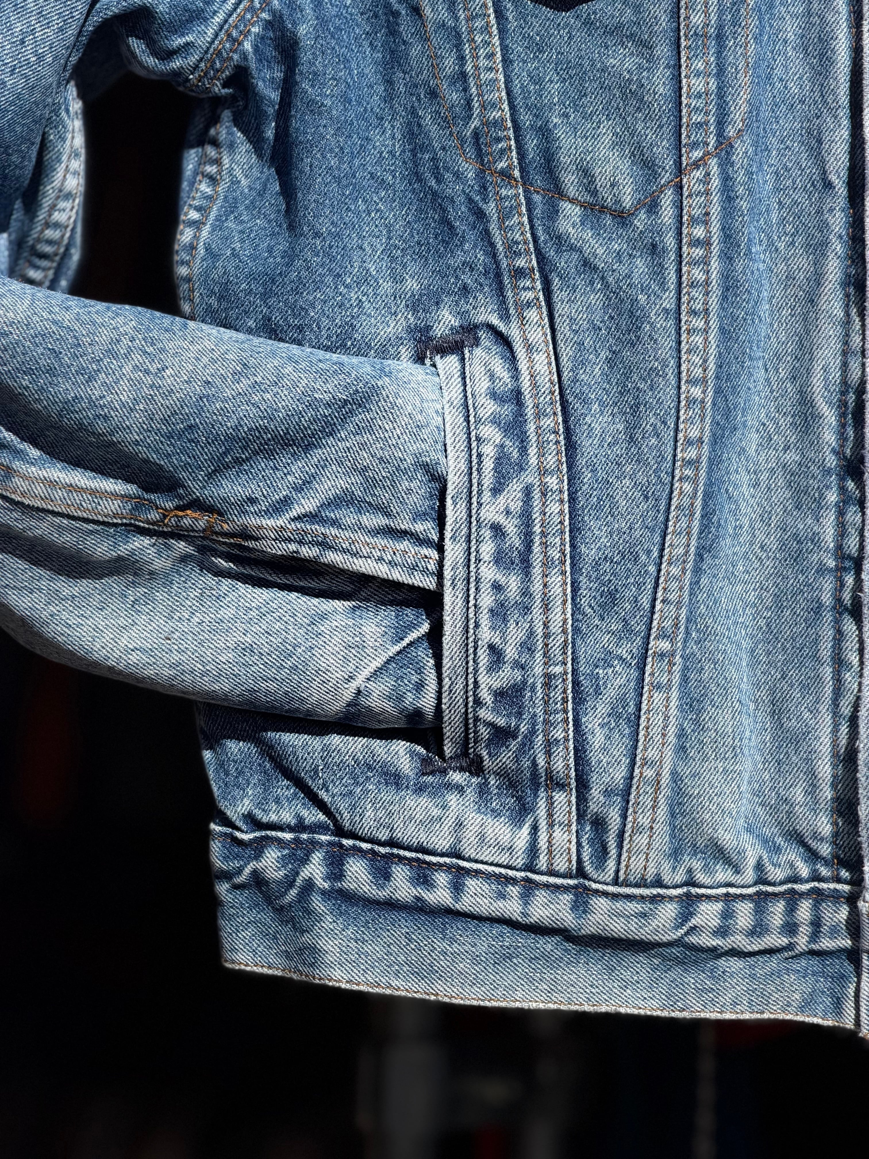 要は「levi'sの裏地付き着丈ちょい調整したハンドポケット付きアメリカ製デニムジャケット、ちょいレア!」という感じです。