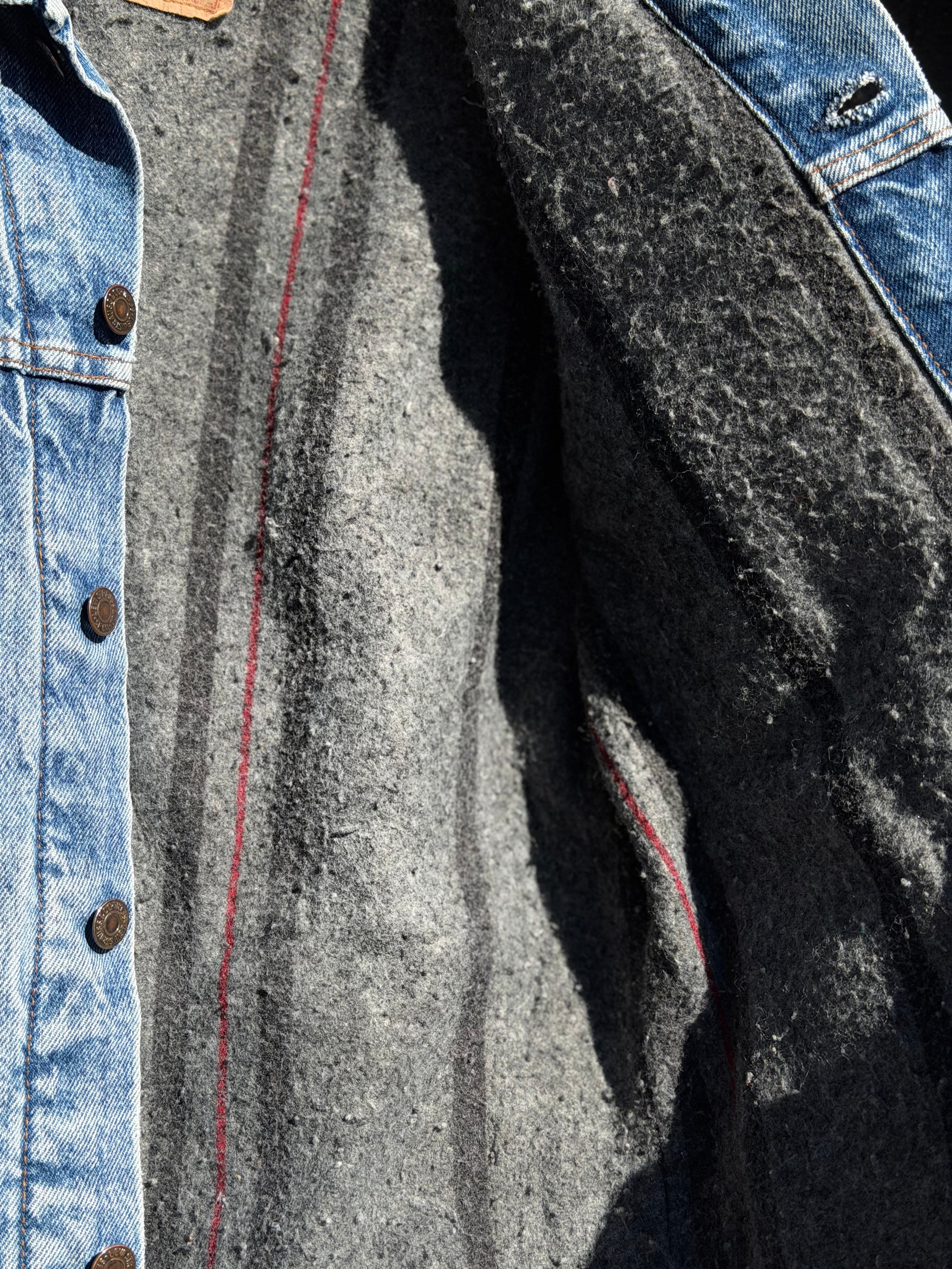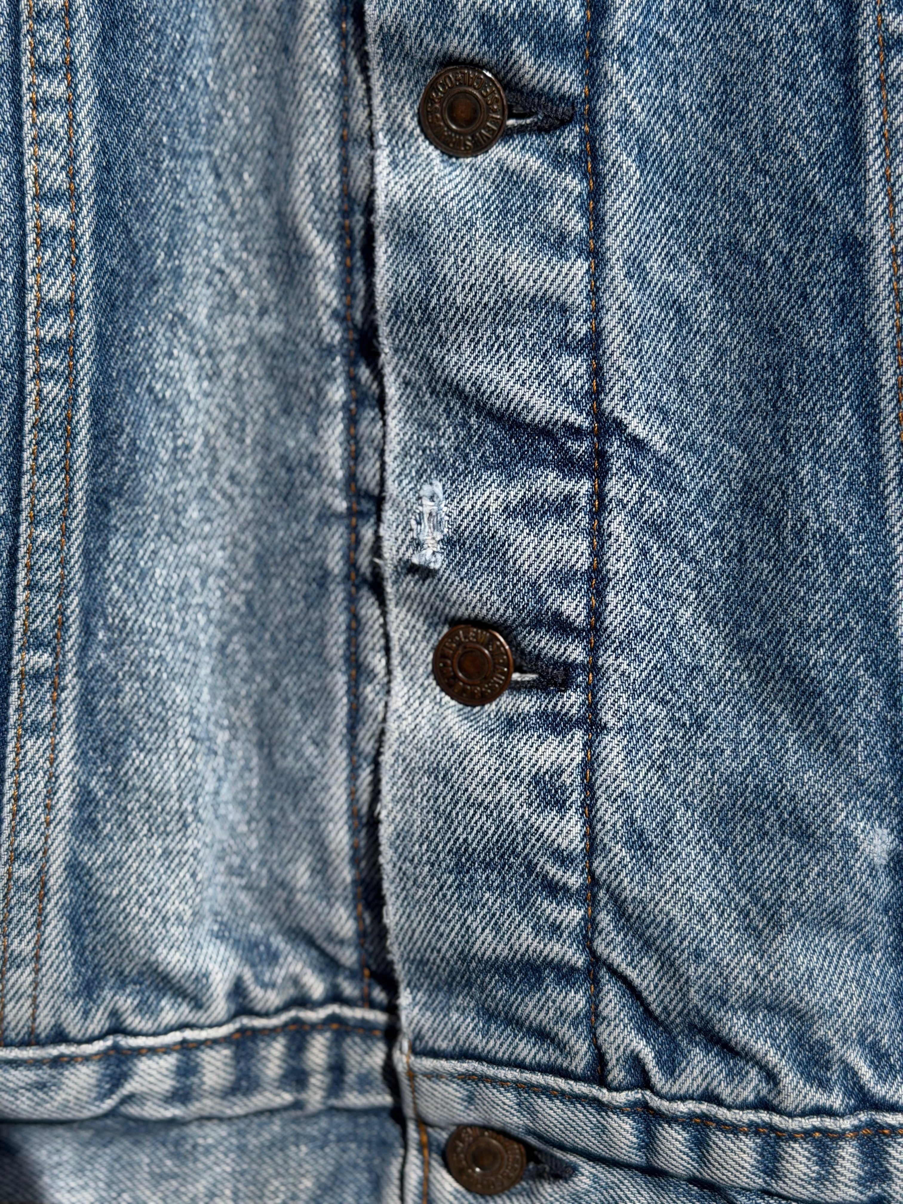 80's Levi's 71506-0316 裏地ブランケット付きデニムジャケット 40L MADE IN U.S.A. 70506 5th 裏地付きデニムトラッカージャケット ジージャン Gジャン 80年代 アメリカ製 LONG丈 ハンドウォーマーポケット ボタン裏刻印527 スモールe リーバイス