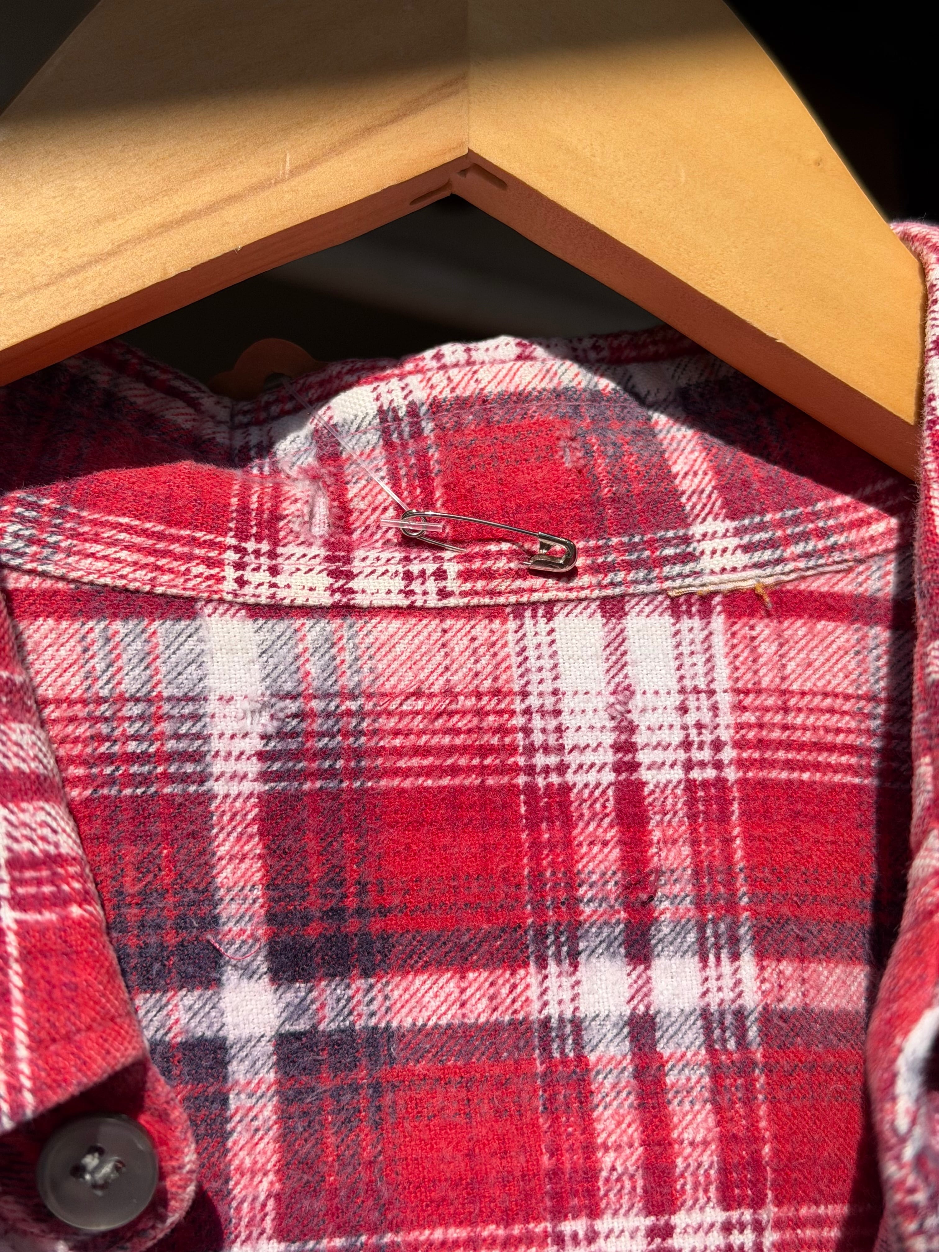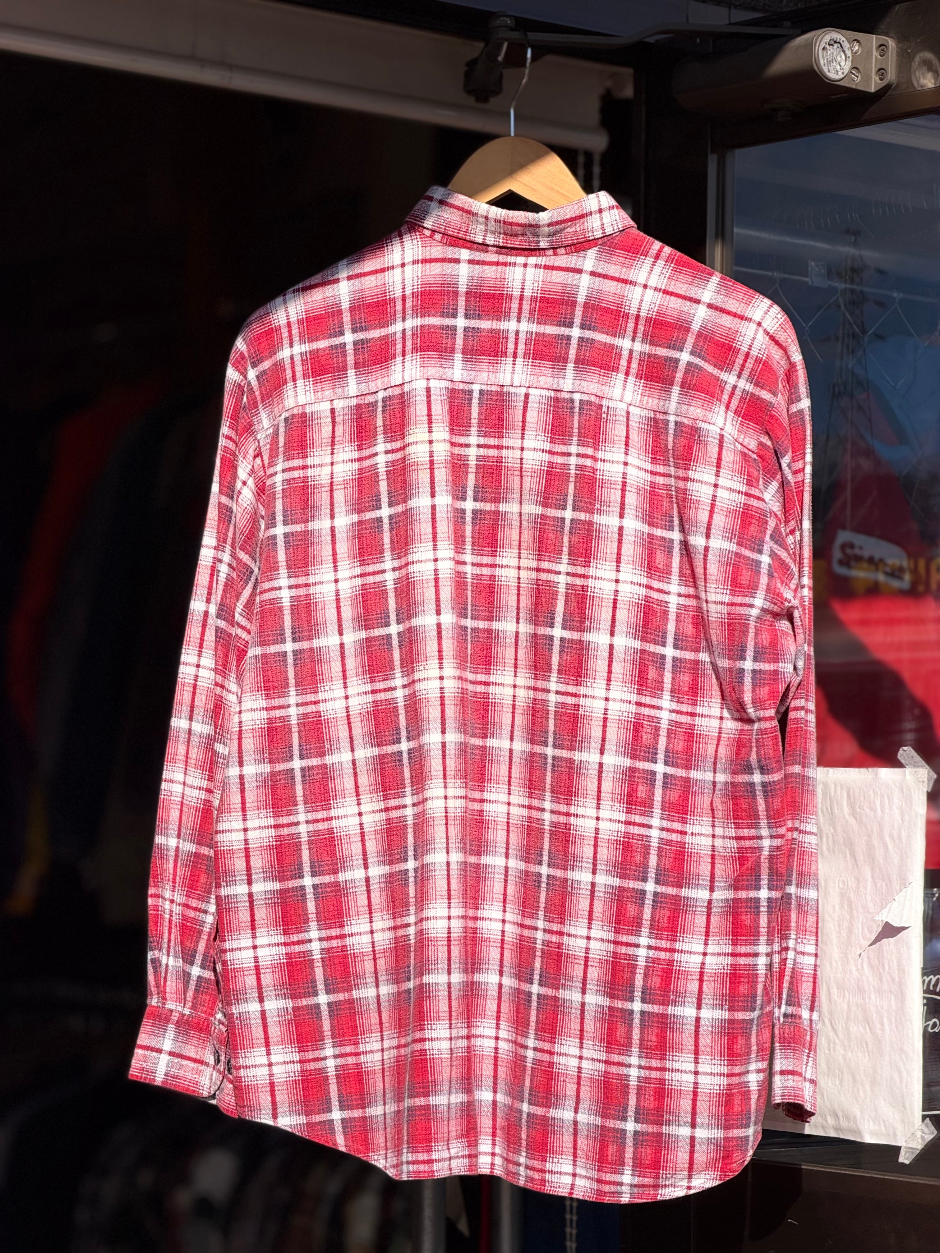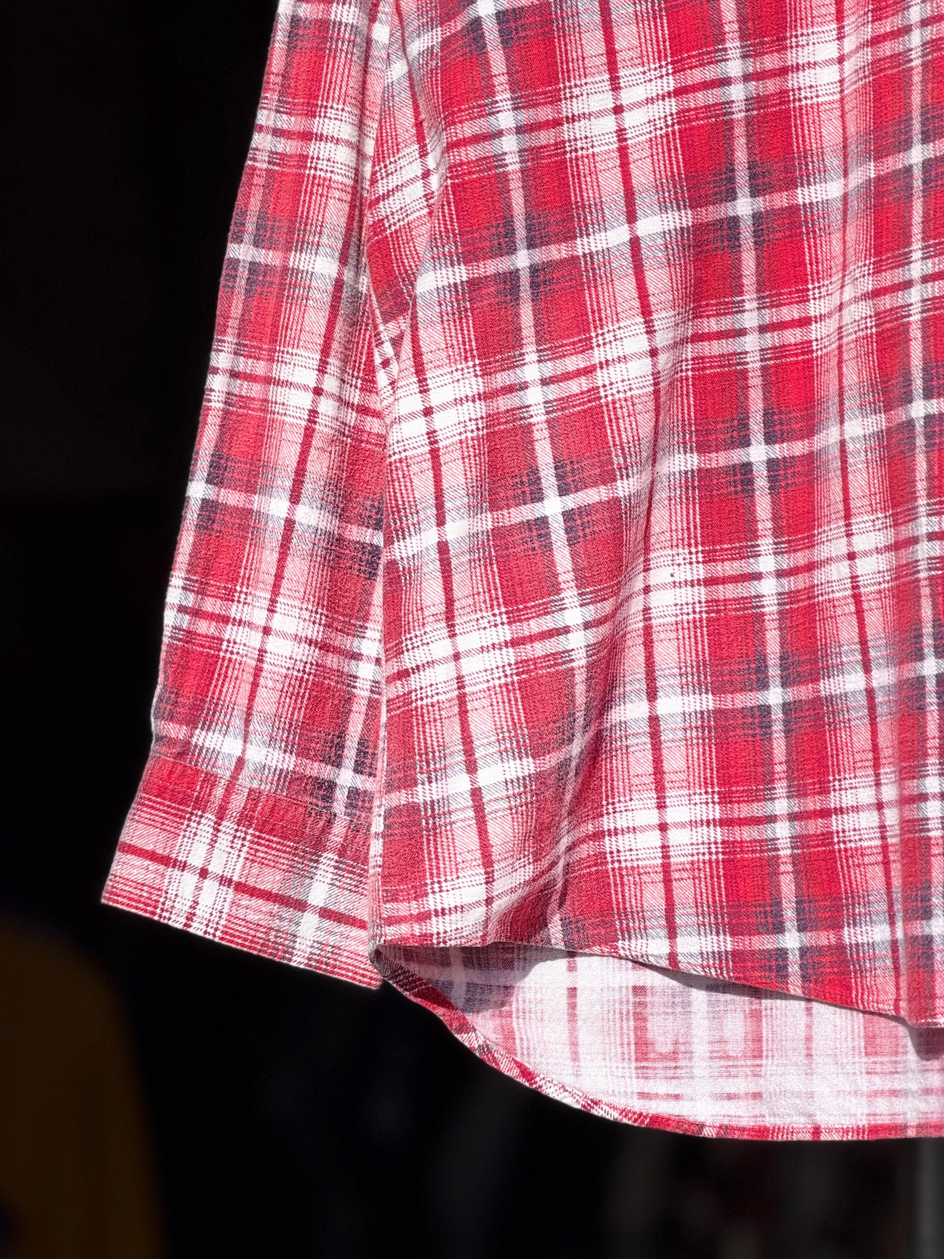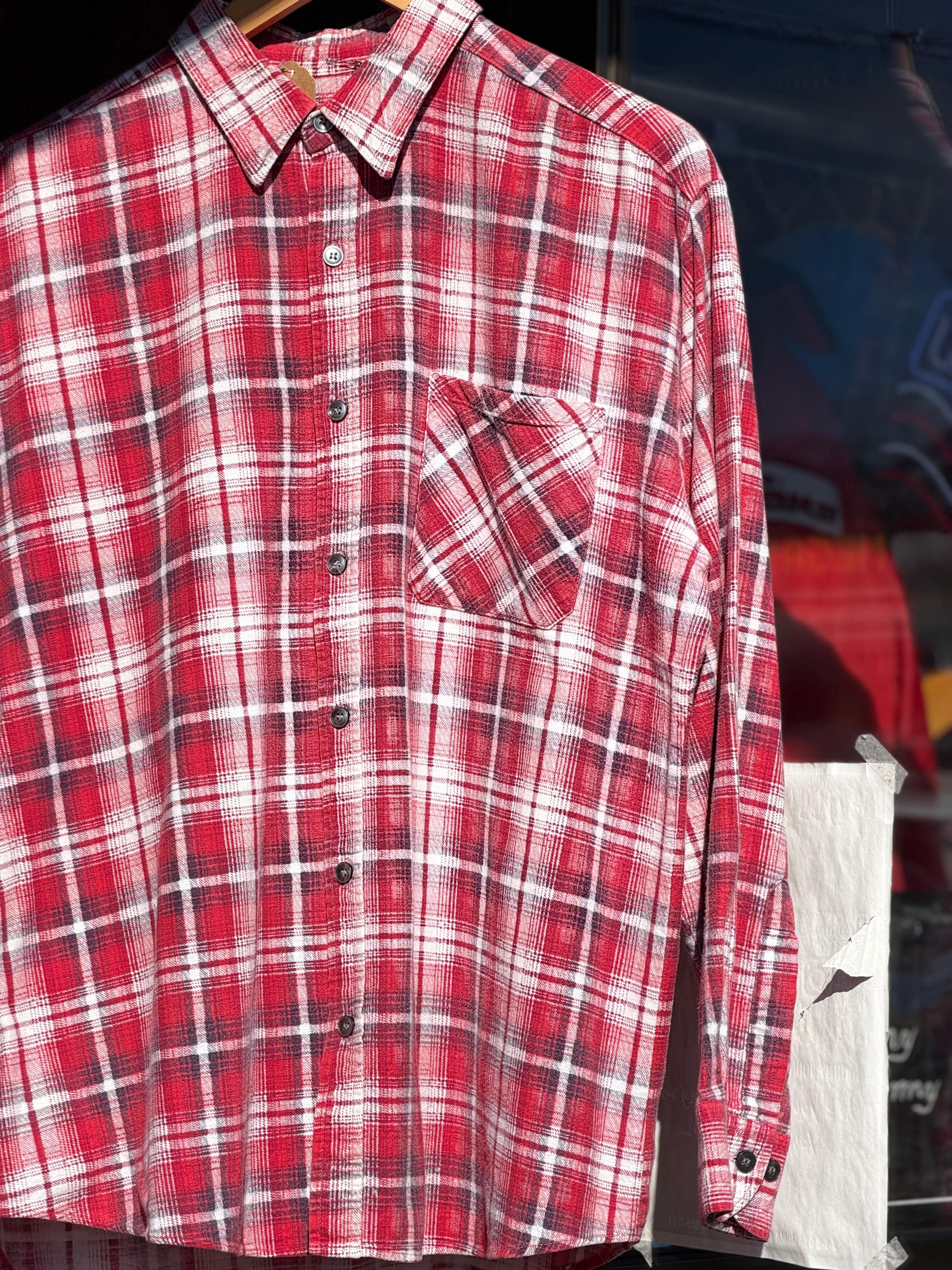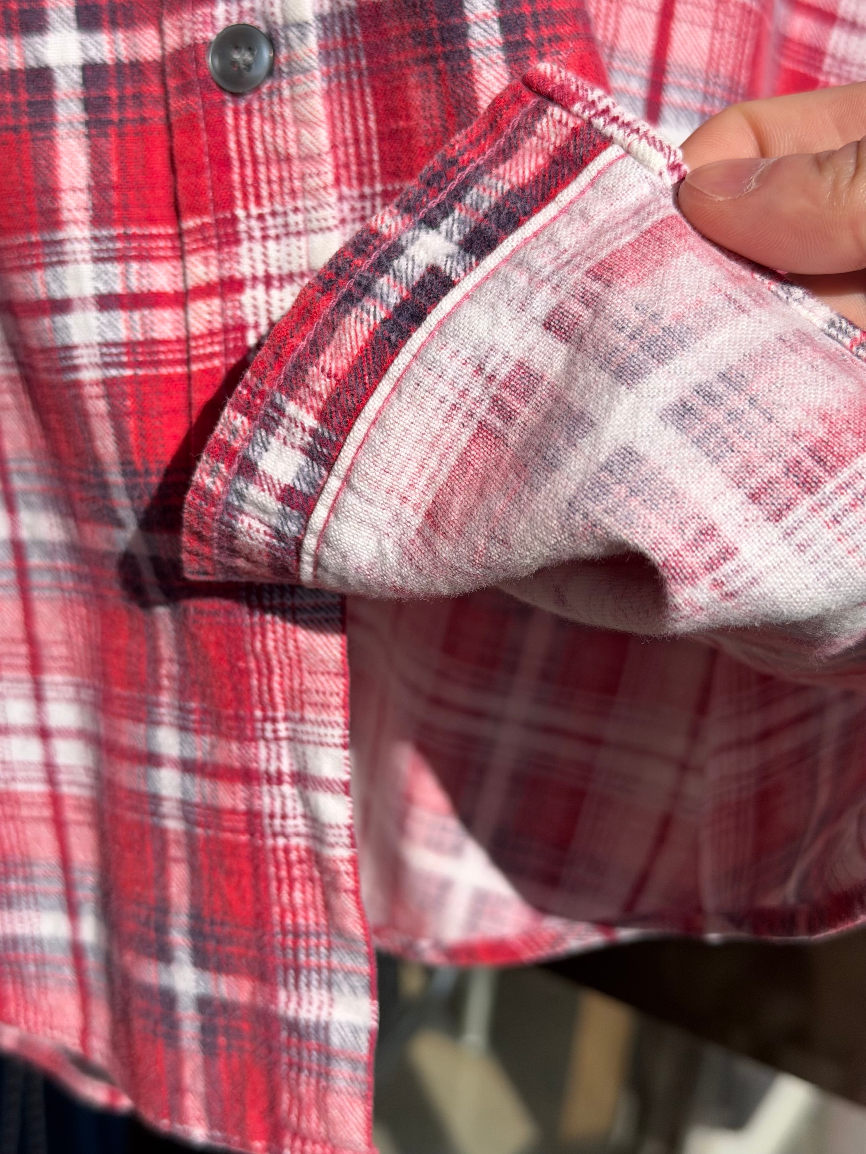 unknown オンブレチェックプリントネルシャツ 実寸L〜XLサイズ程 赤白 チェックシャツ オンブレチェックシャツ プリネル シャドウチェック アメカジ 古着 ヴィンテージネル ビンテージネル 長袖シャツ