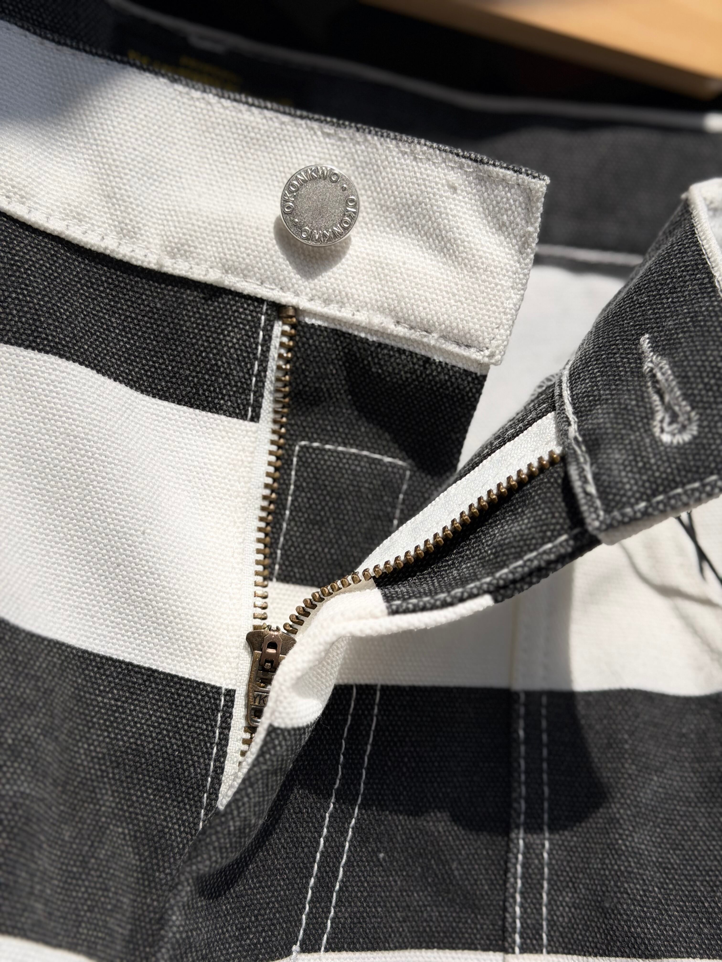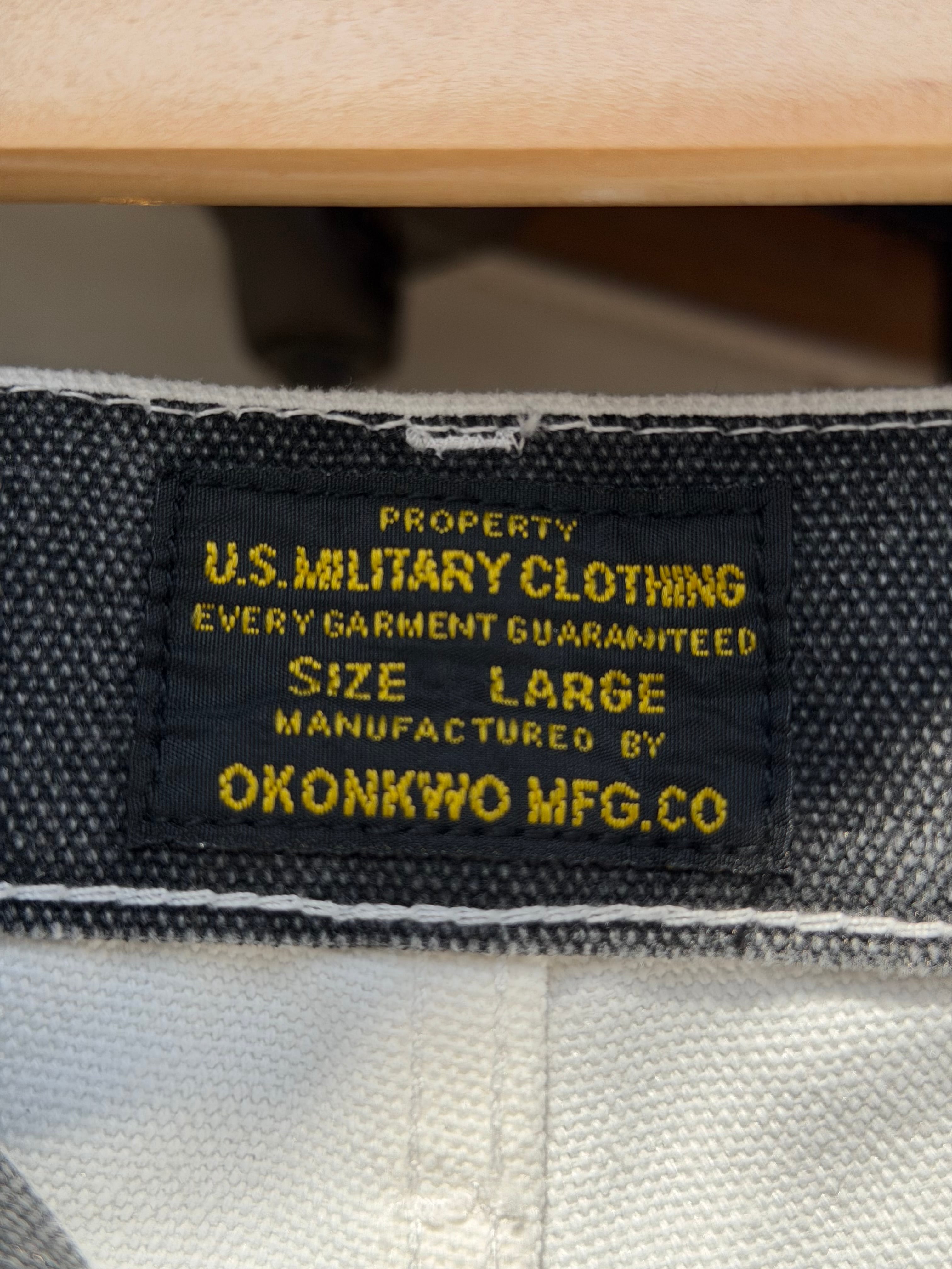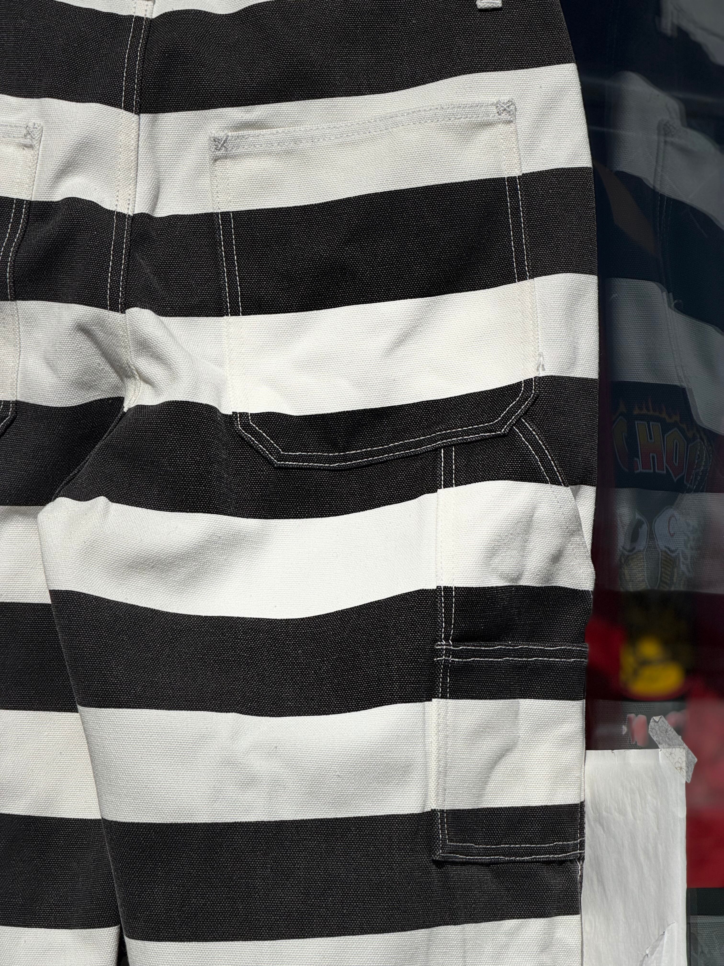 OKONKWO MFG.COM 16ozキャンバスダックボーダーパンツ 3サイズ プリズナーパンツ アメカジ バイカー 囚人 プリズナー ヘビーウェイト 黒白 白黒 横縞 バイク ハーレー乗り ペインターパンツ ワークパンツ 厚手 16オンス ヘビーウェイト コットン100%