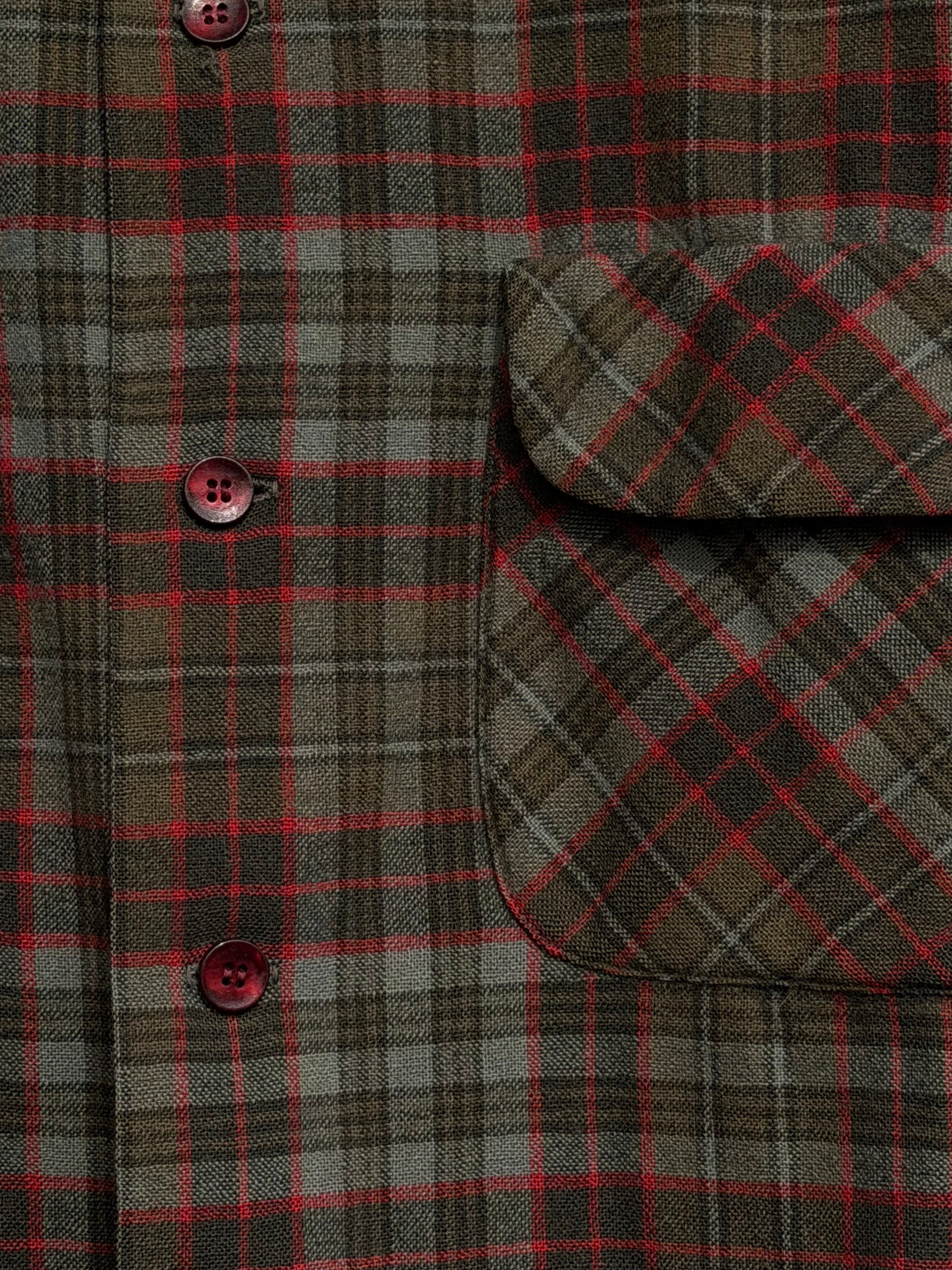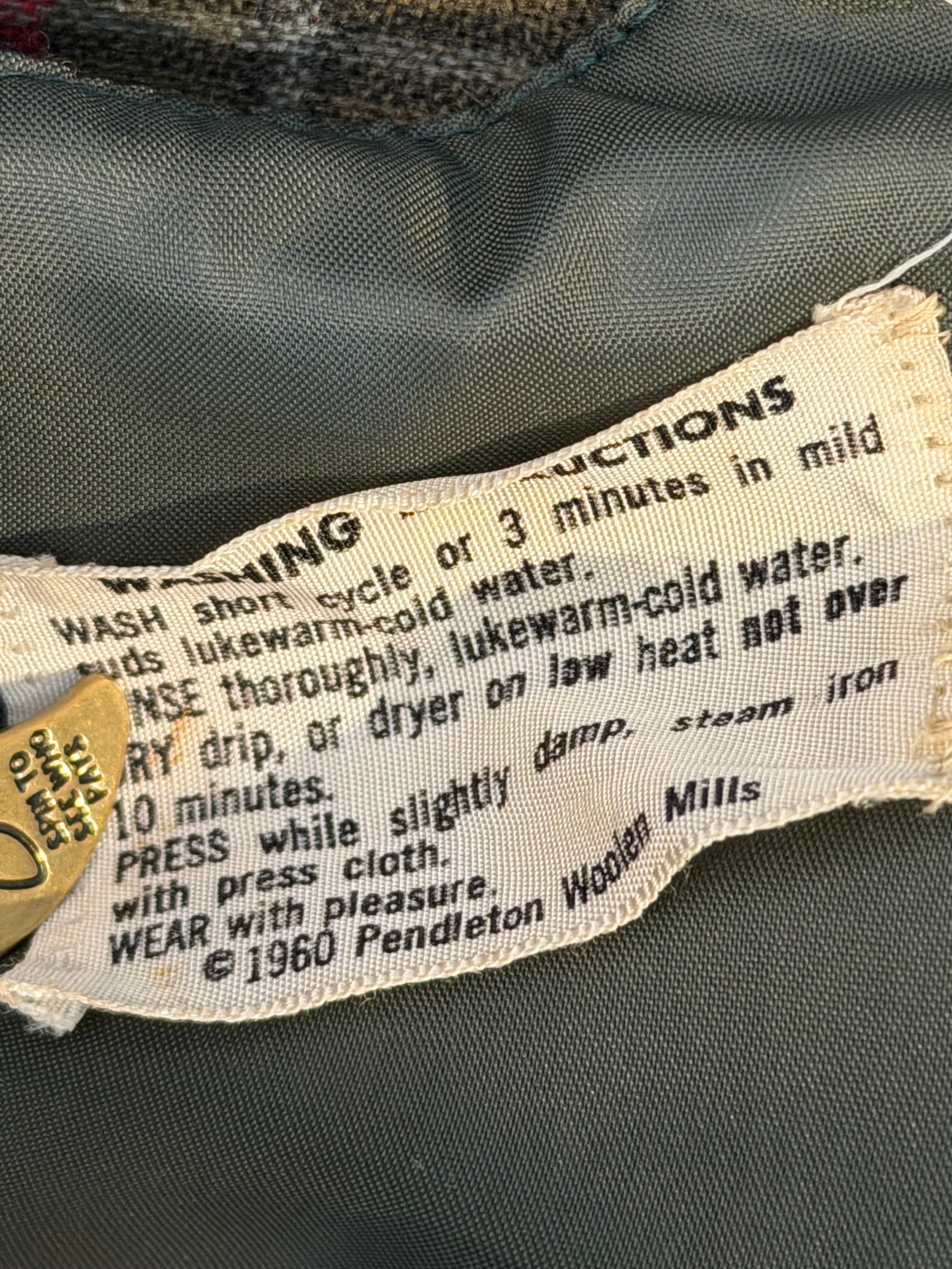 オープンカラー、フラップ付きポケット、デカめの襟、ボックスシルエットと、ディティールは50年代頃のモノですが右肩内側に付く洗濯表示には1960年のコピーライトが入ります。