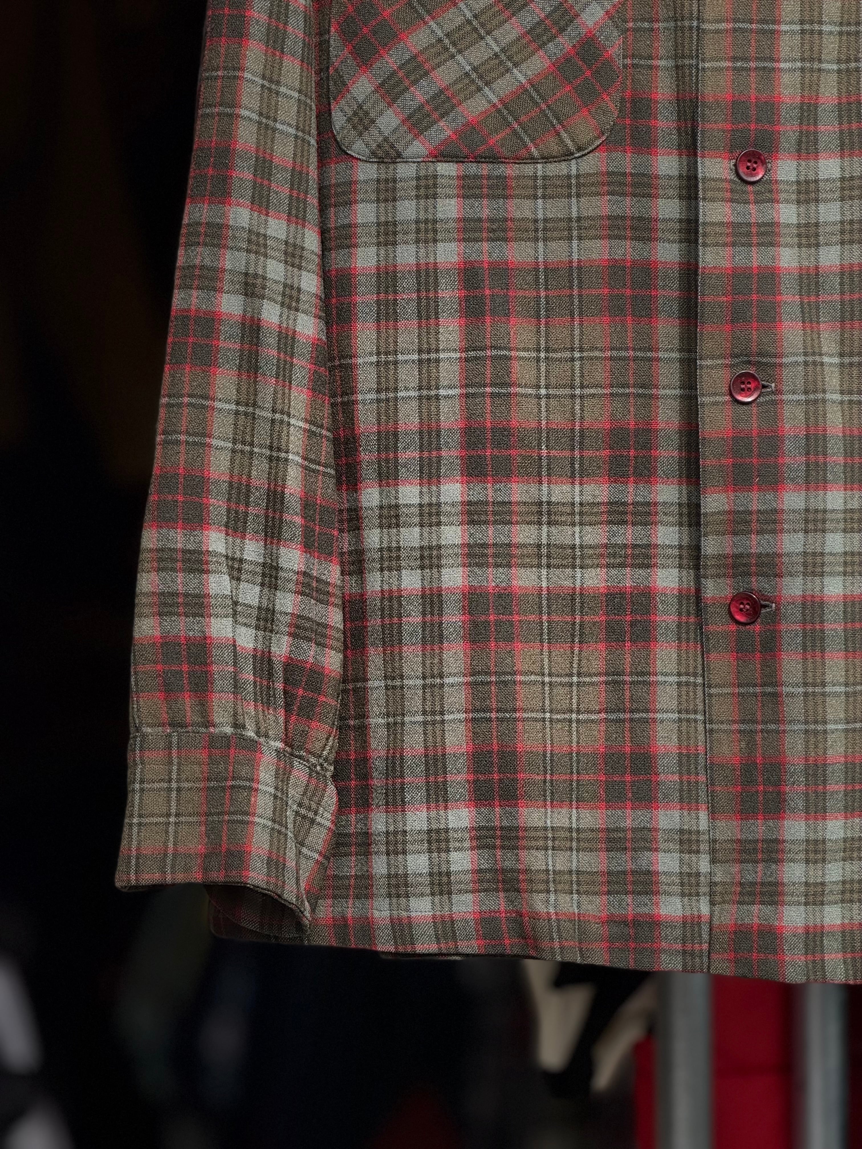 50~60's Vintage PENDLETON ボードシャツ Mサイズ 美品 board shirt ペンドルトン ウールシャツ ボックスシルエット オープンカラーシャツ 開襟シャツ 50's フラップポケット グレー グリーン チェック ビンテージ ヴィンテージ