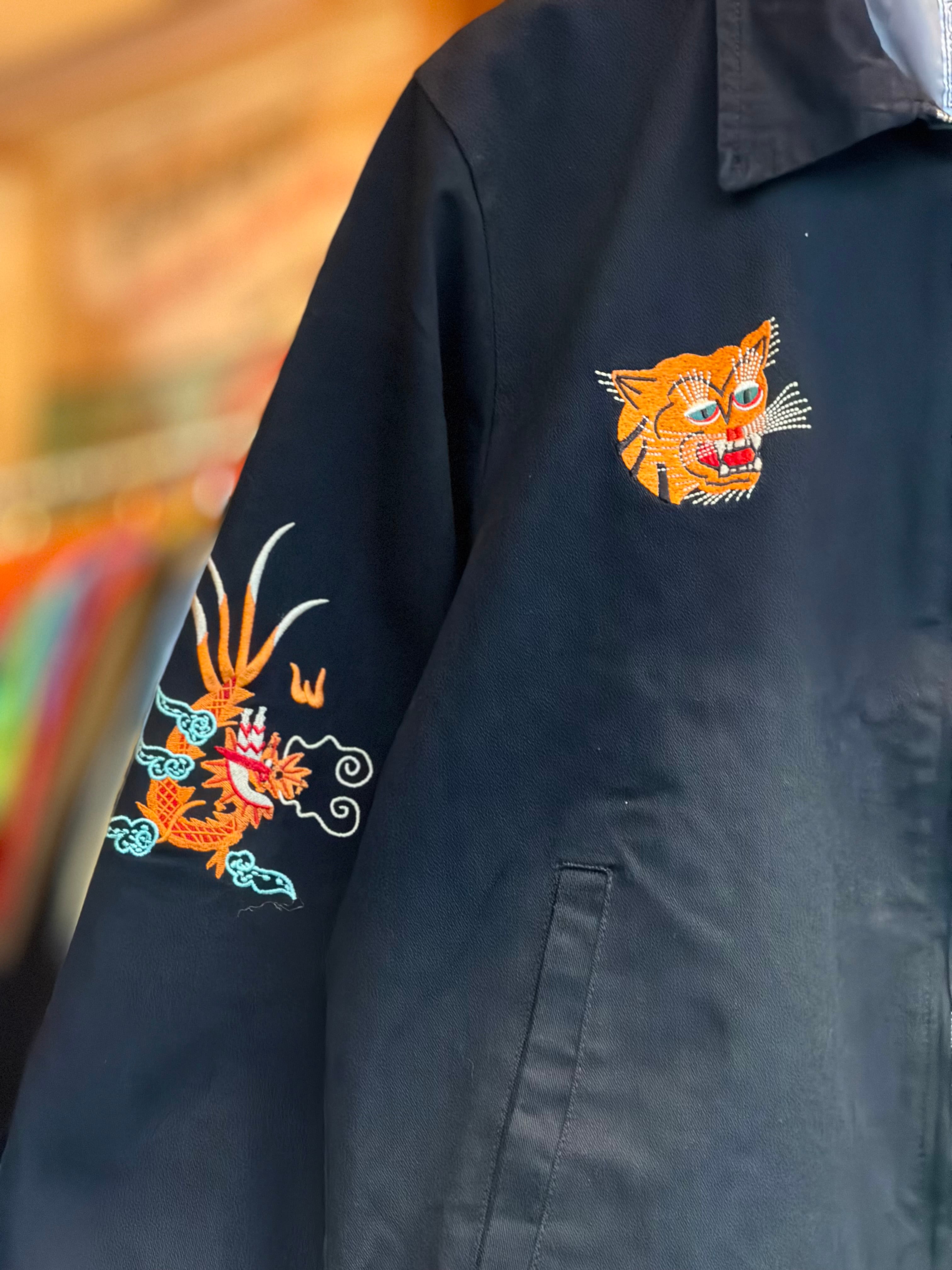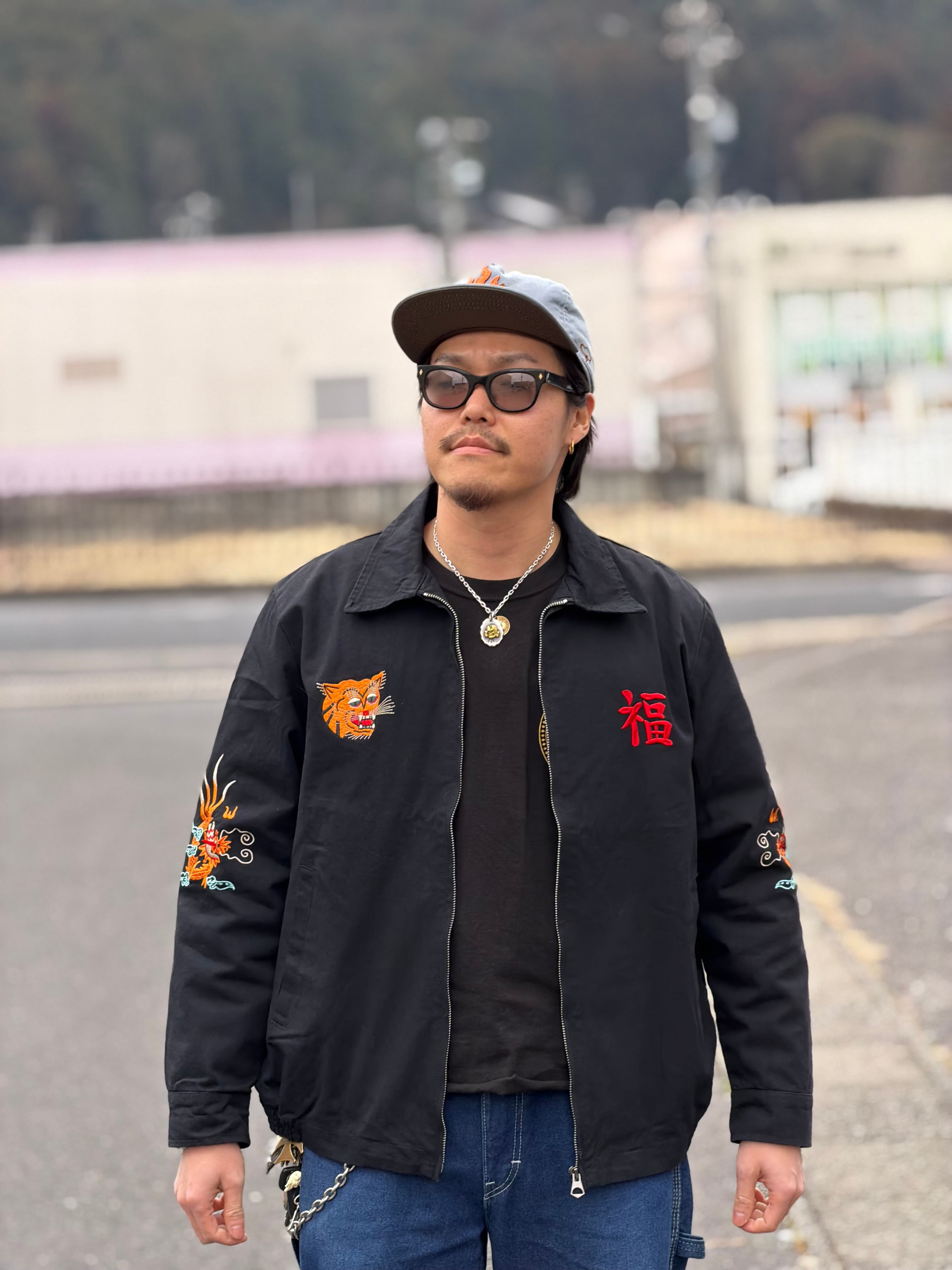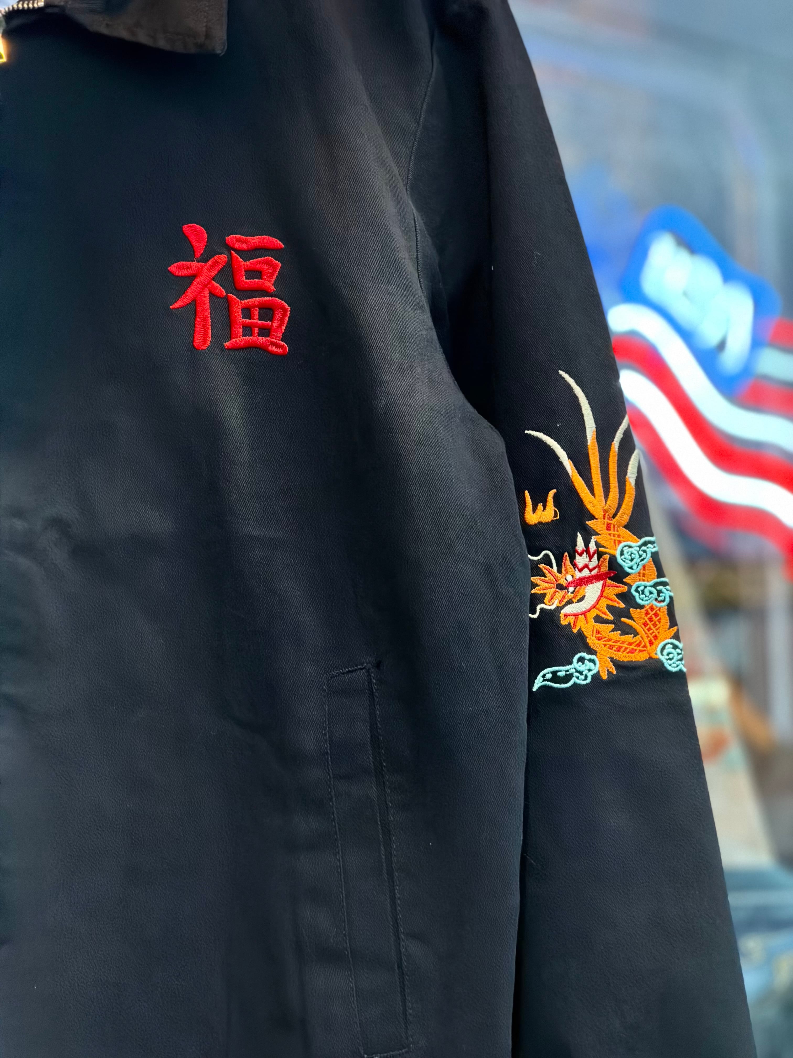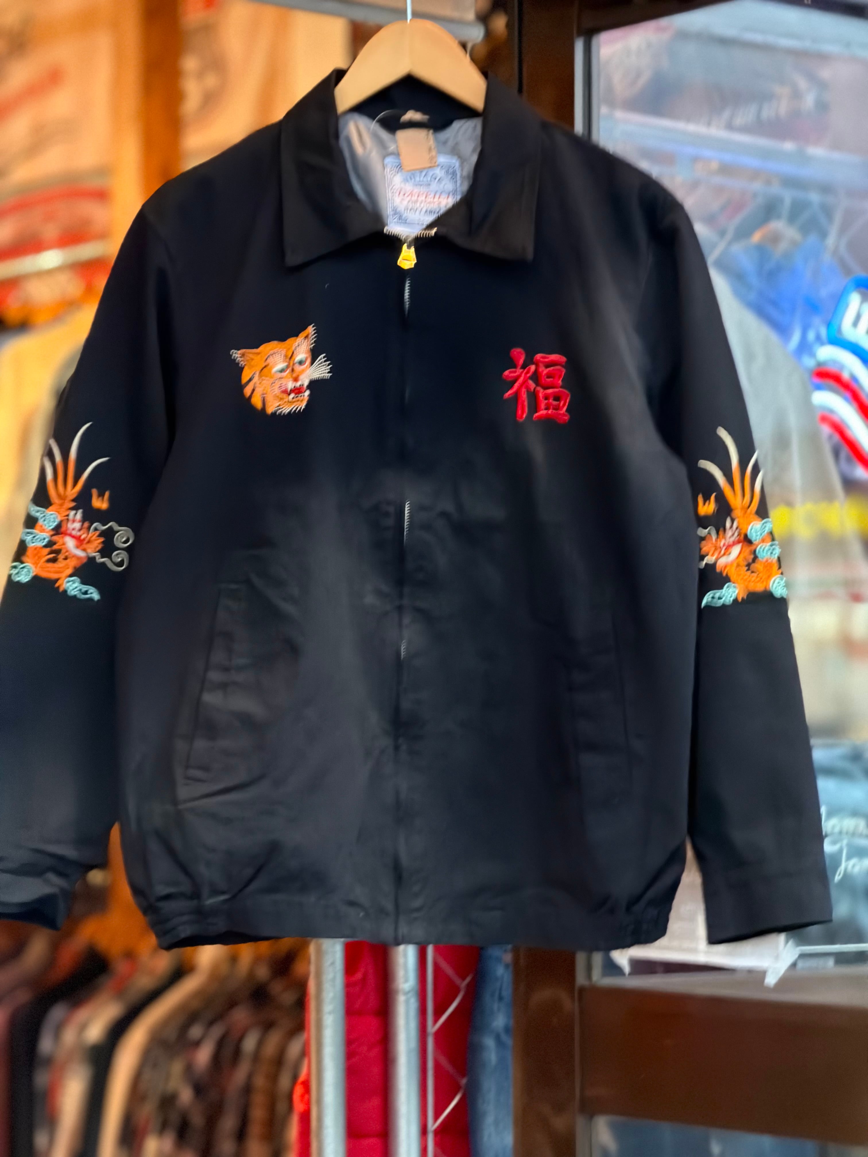 ベトジャン ブラック M L XL 2XL XXL 福 虎 ベトナムジャケット スーベニアジャケット 刺繍 DAFEILI Vintage スカジャン アメカジ コットンツイル バイカーファッション フリース 新品 復刻 短丈 60s 60's 60年代