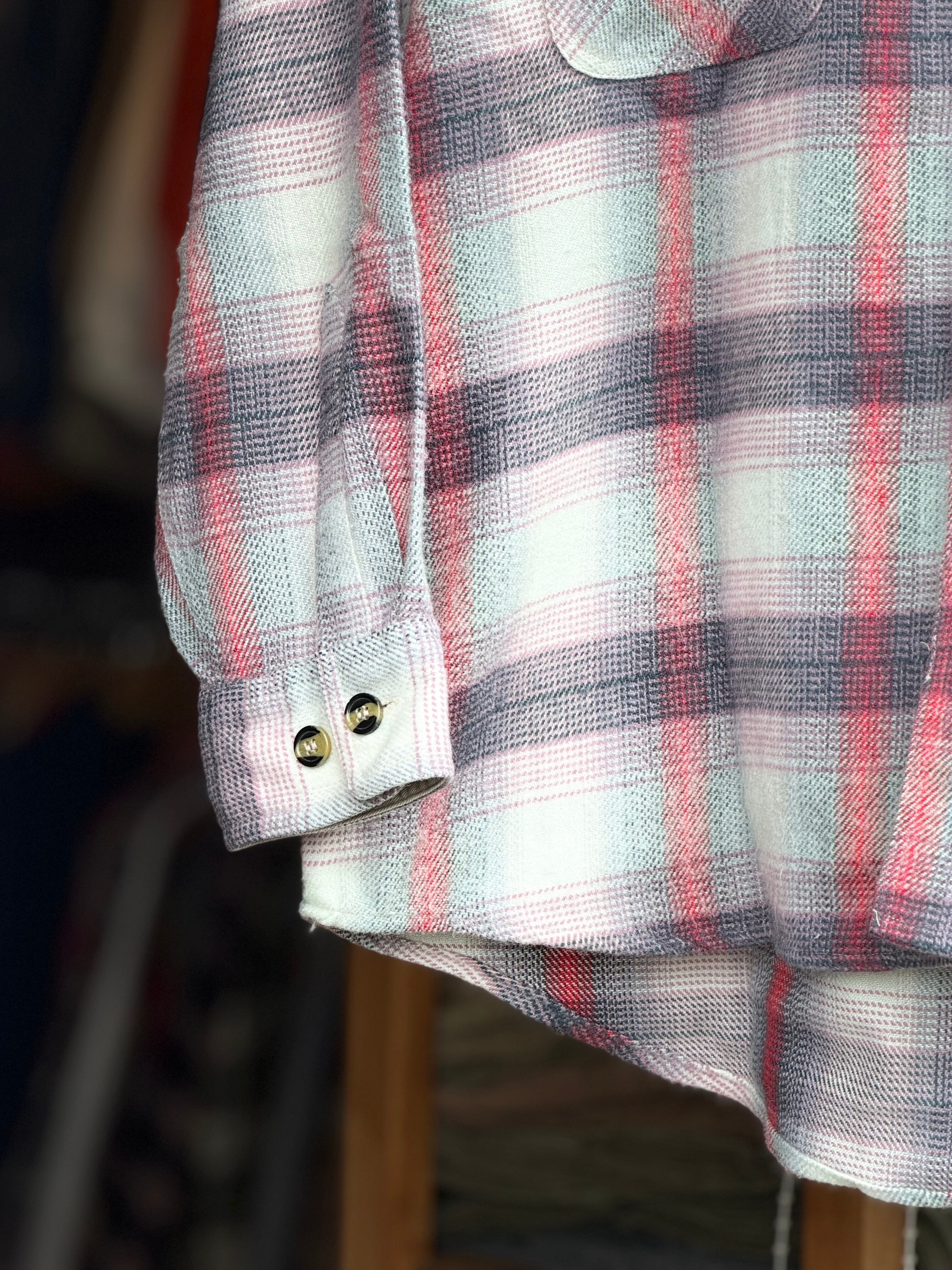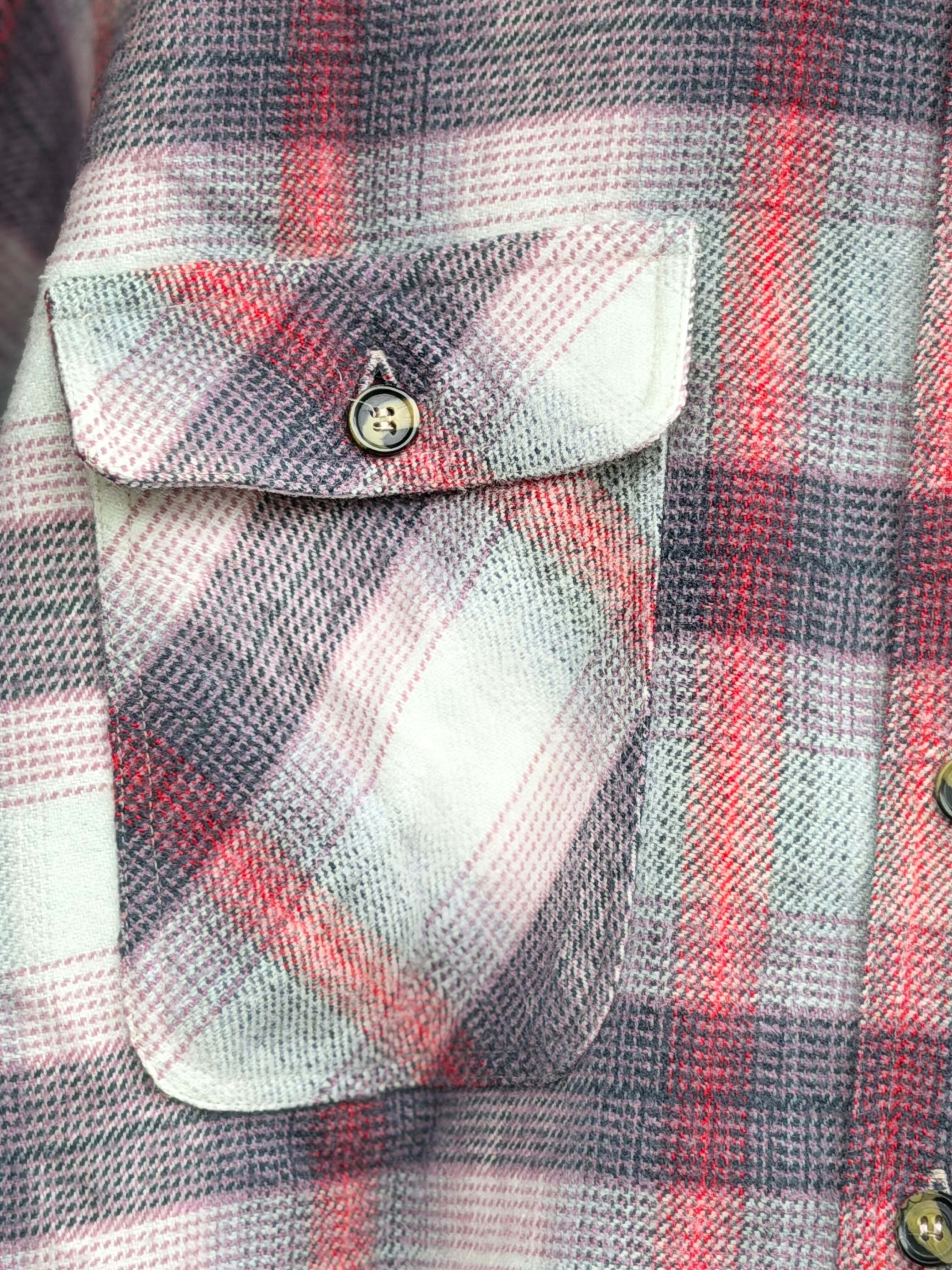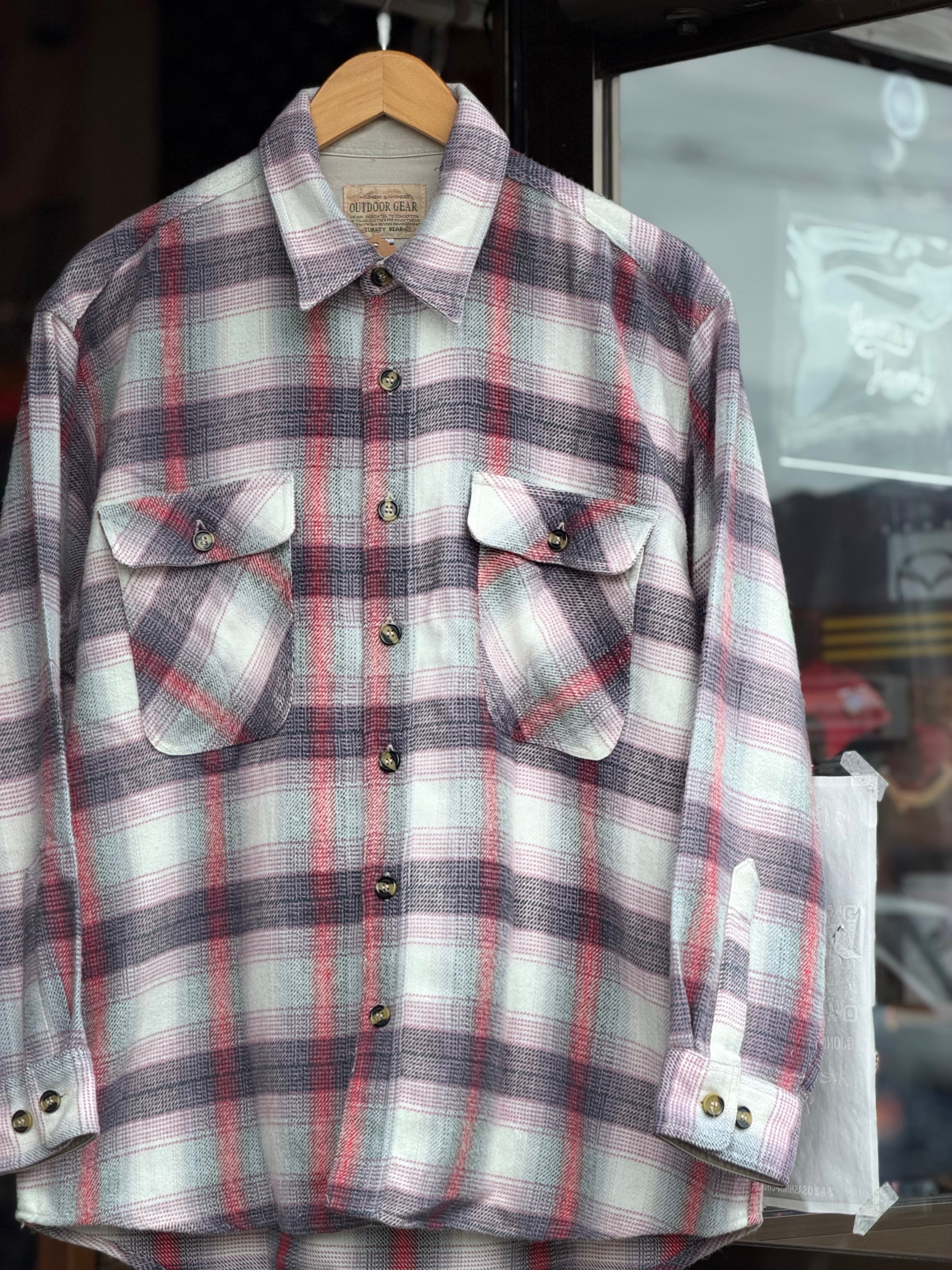 90's TURKEY BEAR "OUTDOOR GEAR" オンブレチェックアクリルシャツ 2L XLサイズ ピンク ヘビーフランネル ヘビネル 長袖シャツ ネルシャツ 短丈 アメカジ アウトドア 古着 ストリート シャドウチェック 90年代 y2k