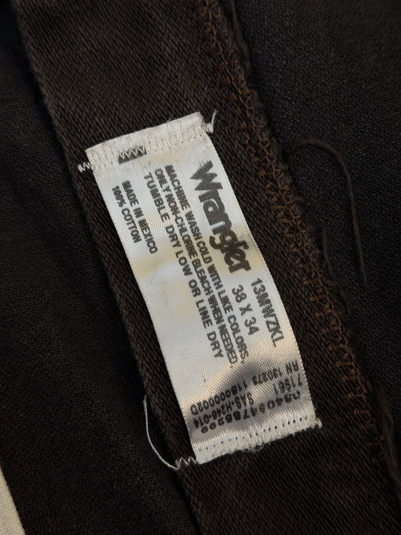 Wrangler 13MWZKL "COWBOY CUT" ストレートフィットカラーデニムパンツ ダークブラウン W39×L31 濃茶 メキシコ製 ラングラー ジッパーフライ カウボーイカット ジーンズ ブロークンデニム 13WMZ ウエスタン アメカジ 古着 カラージーンズ カラーパンツ ブラックチョコレート