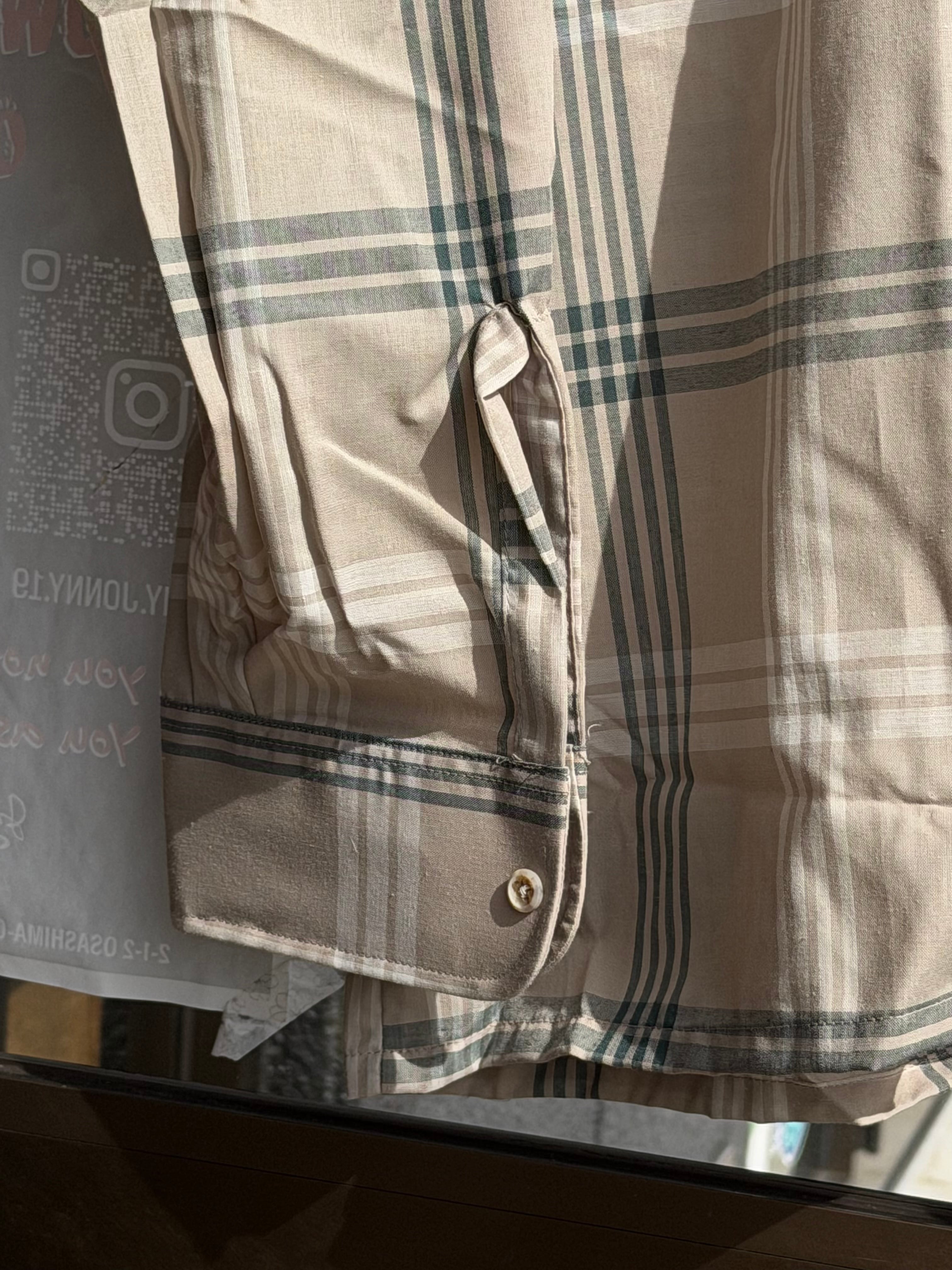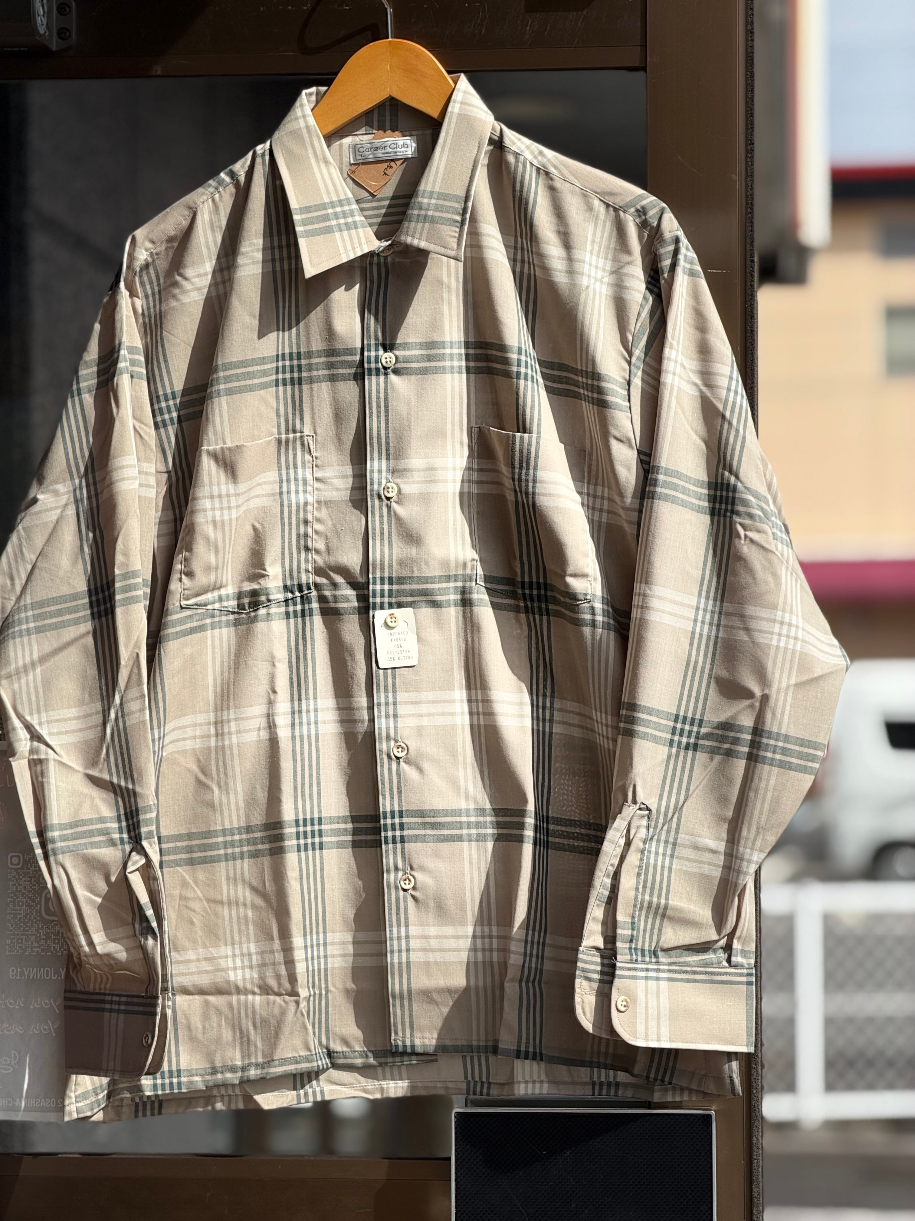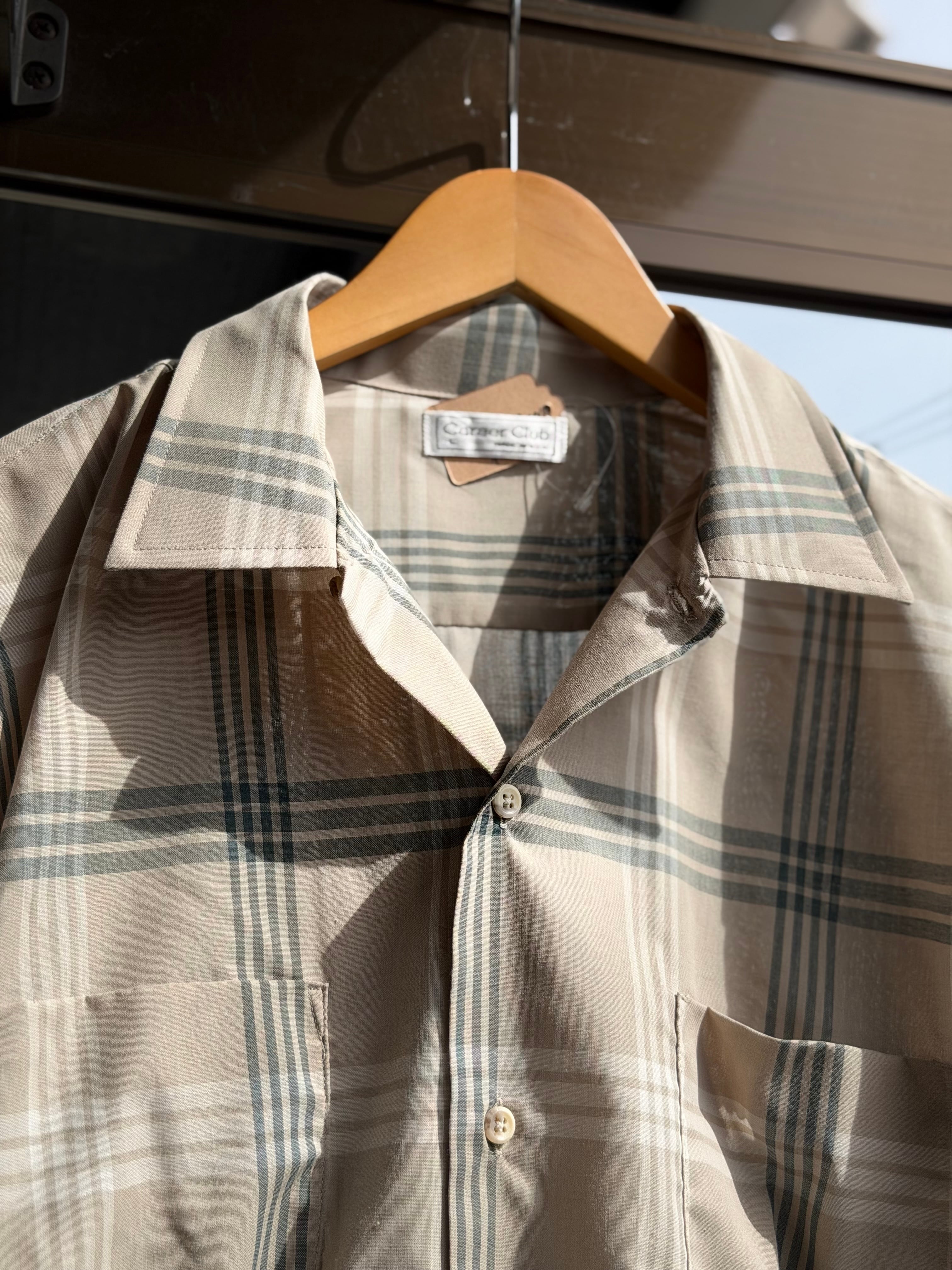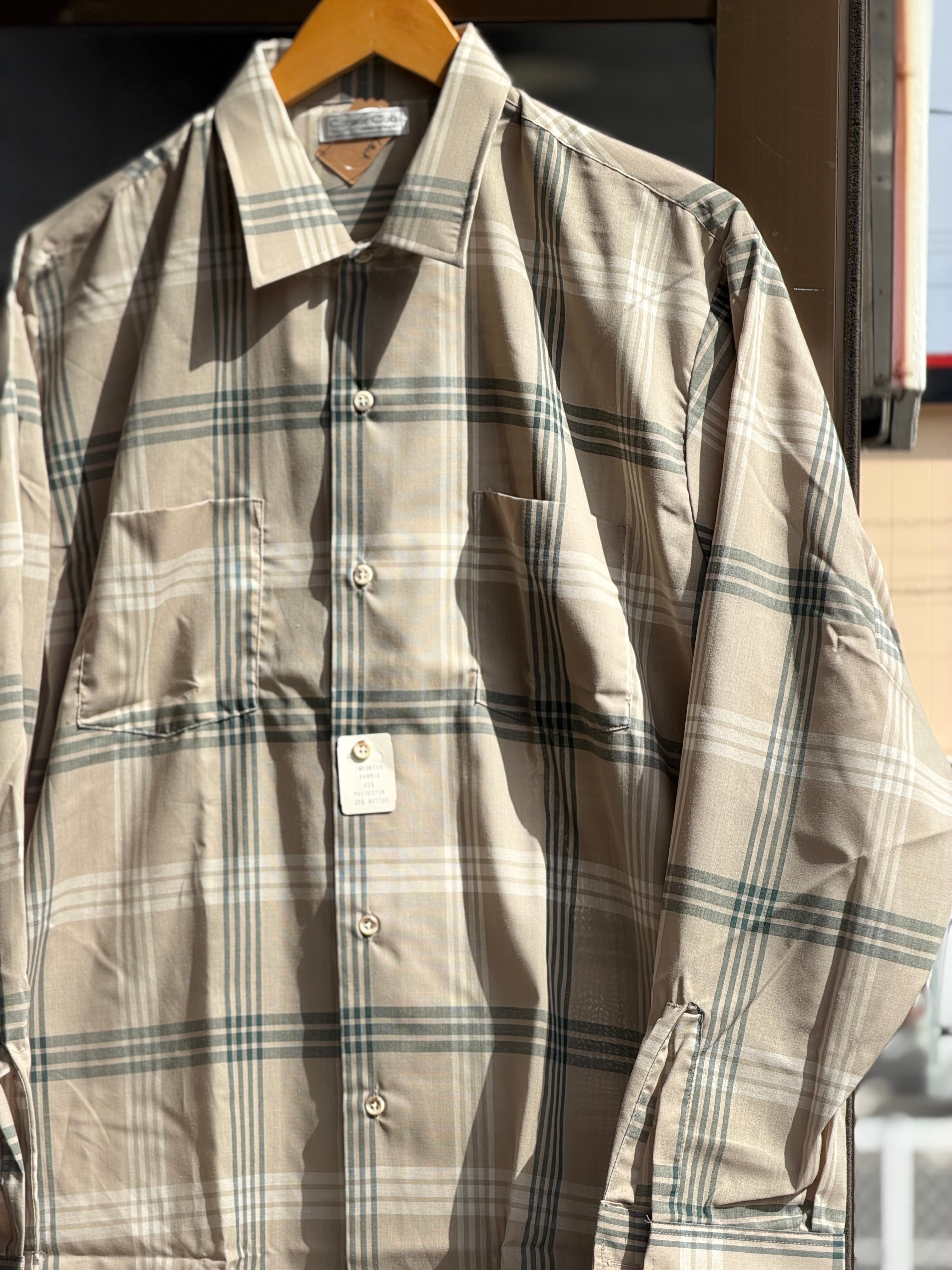 70~80's Career Club "Deadstock" 長袖オープンカラーチェックシャツ MADE IN U.S.A. Lサイズ ベージュ ウィンドウペン ウインドウペン シンプル デッドストック アメリカ製 開襟シャツ ボックスシルエット フラッシャー付き