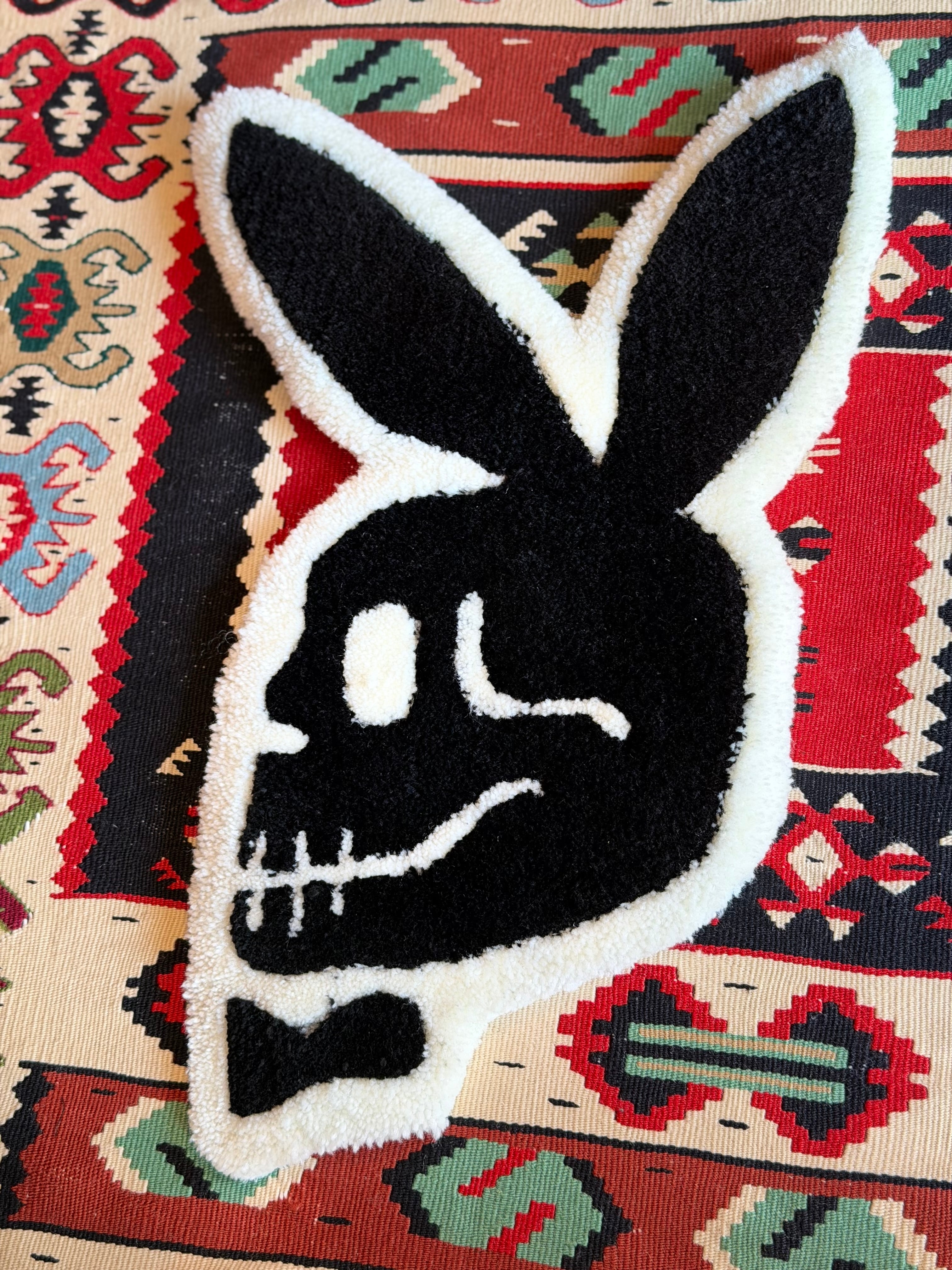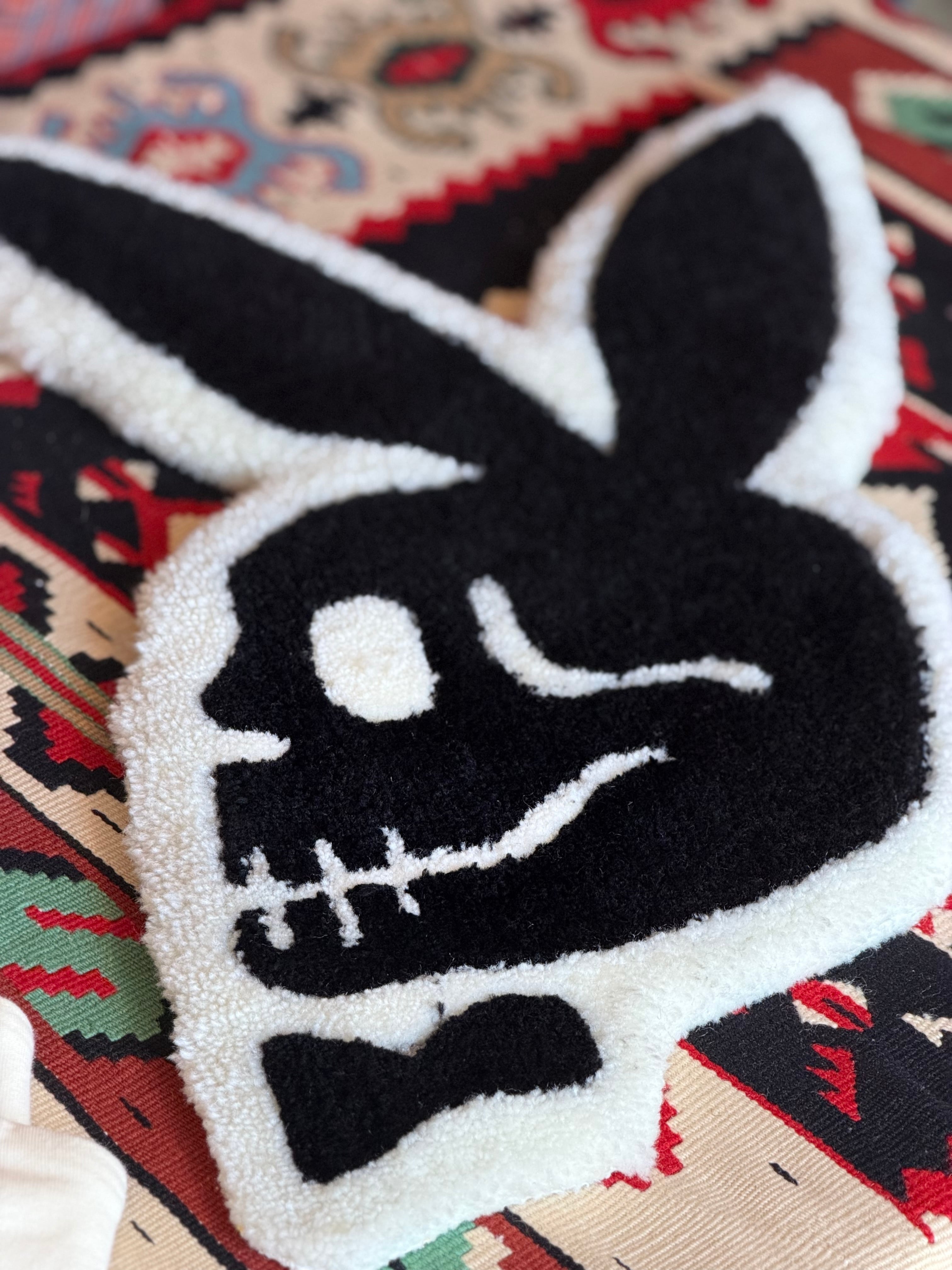 GRINWEAR タフティングラグ "PLAYBOY BUNNY SKULL" タフティングマット ラグマット スカルバニー プレイボーイスカル バニースカル モノトーン インテリア ウサギ 雑貨 ガレージ アメカジ バイカー 部屋