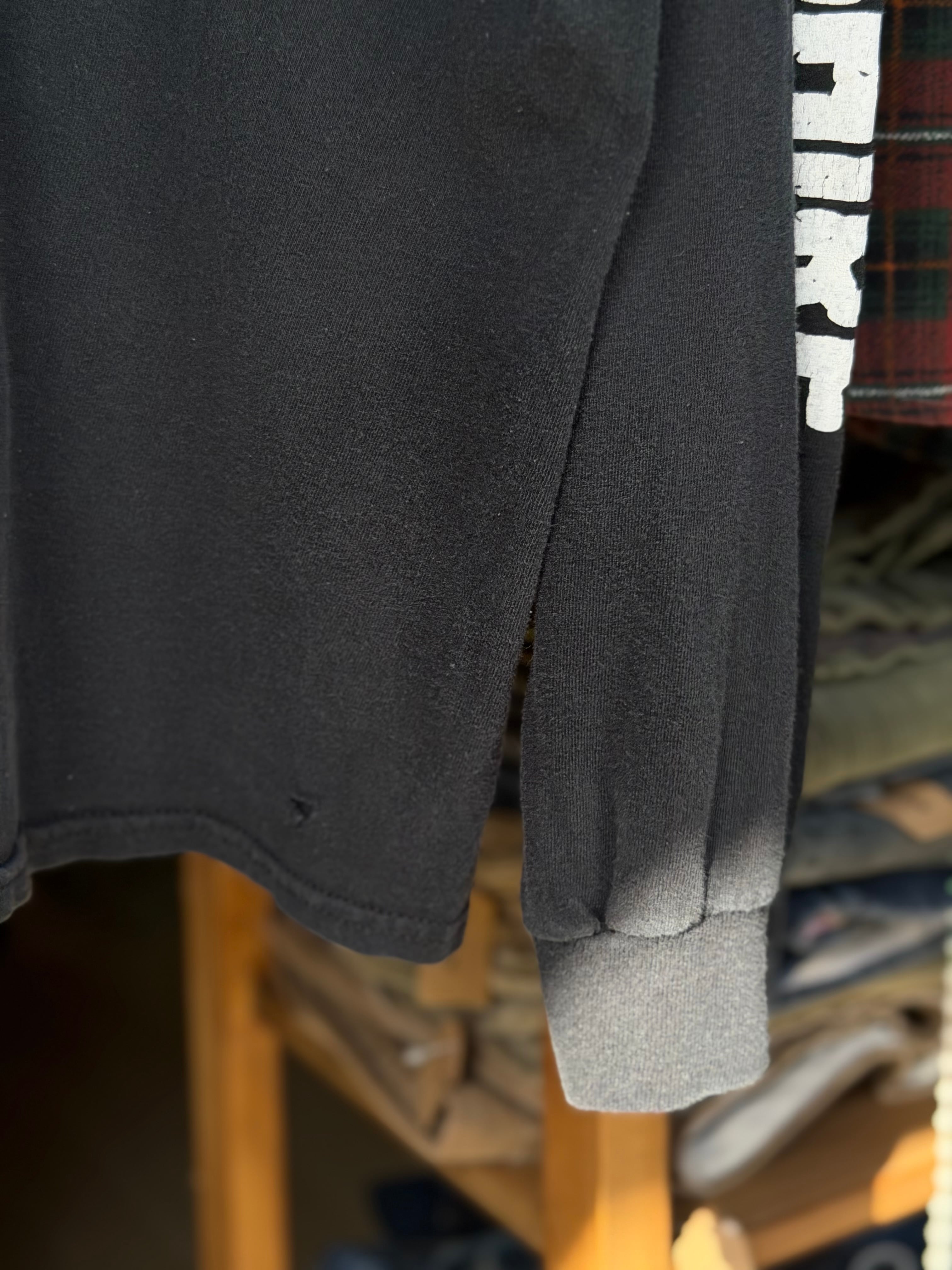 2020年と、割と最近結成されたはずですが元の持ち主がかなり気に入って着ていたようで、ボディは若干褪色が始まり、各所プリントはバキバキにヒビ割れて雰囲気抜群です。