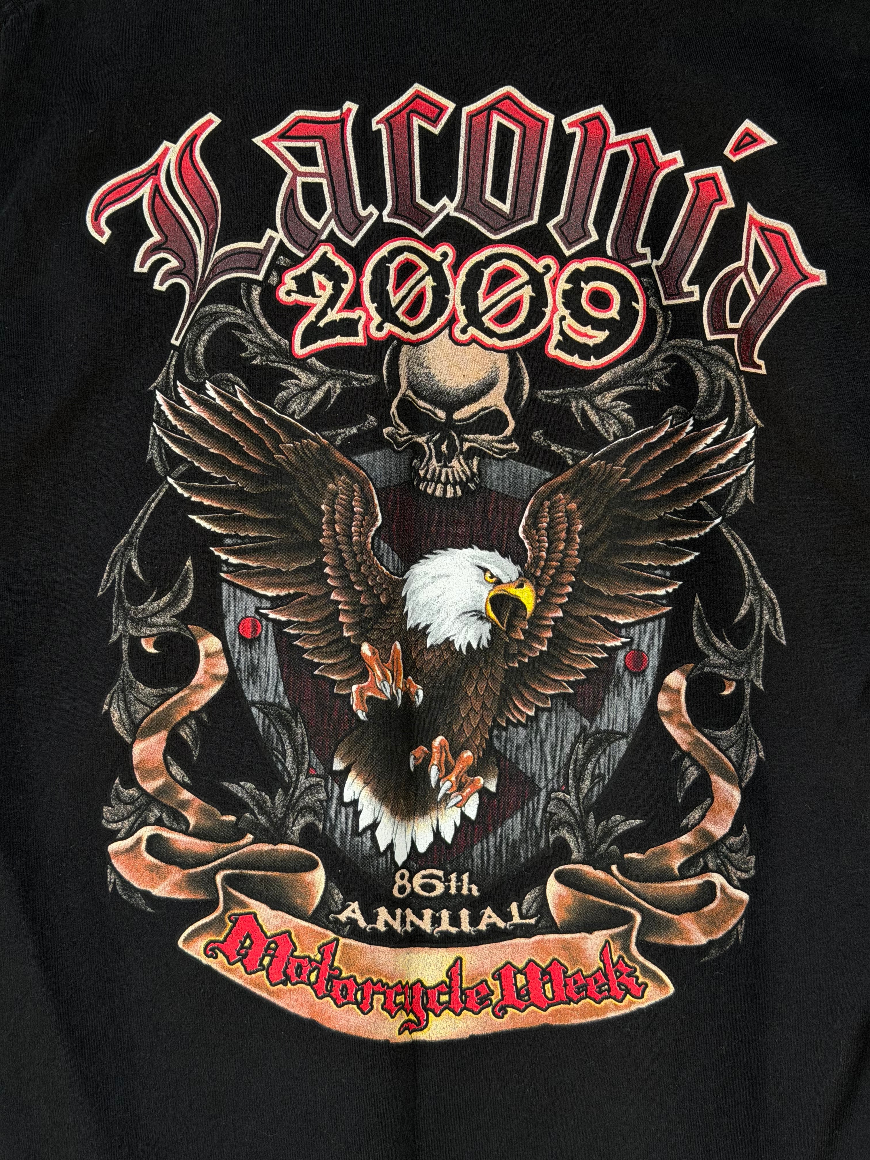 00's 86th LACONIA MOTORCYCLE WEEK 2009 長袖Tシャツ Lサイズ ブラック 黒 ロンT バイク バイカー アメカジ ラコニアバイクモーターサイクルウィーク バイクイベント 古着 イーグル スカル H-D HARLEY DAVIDSON
