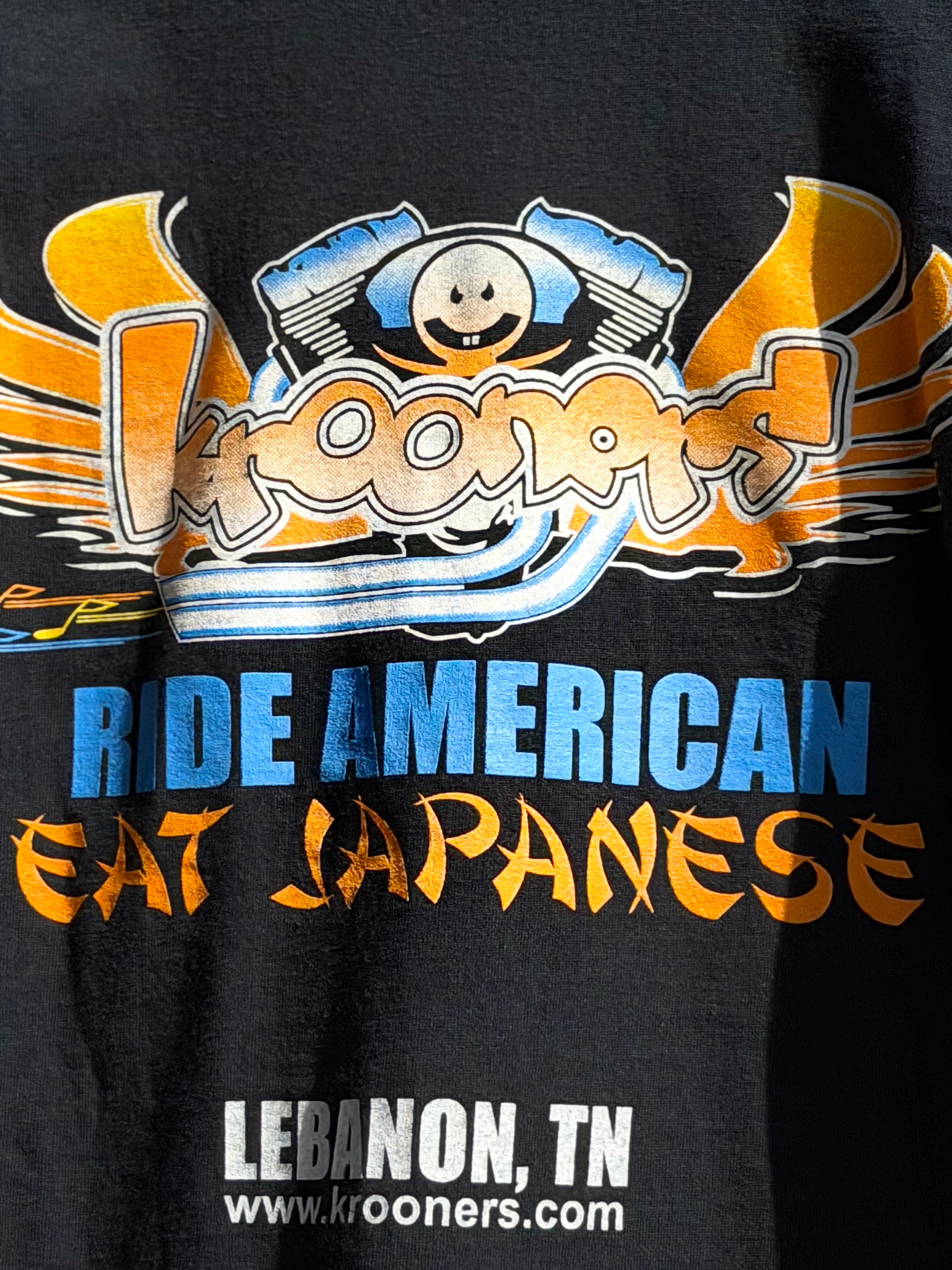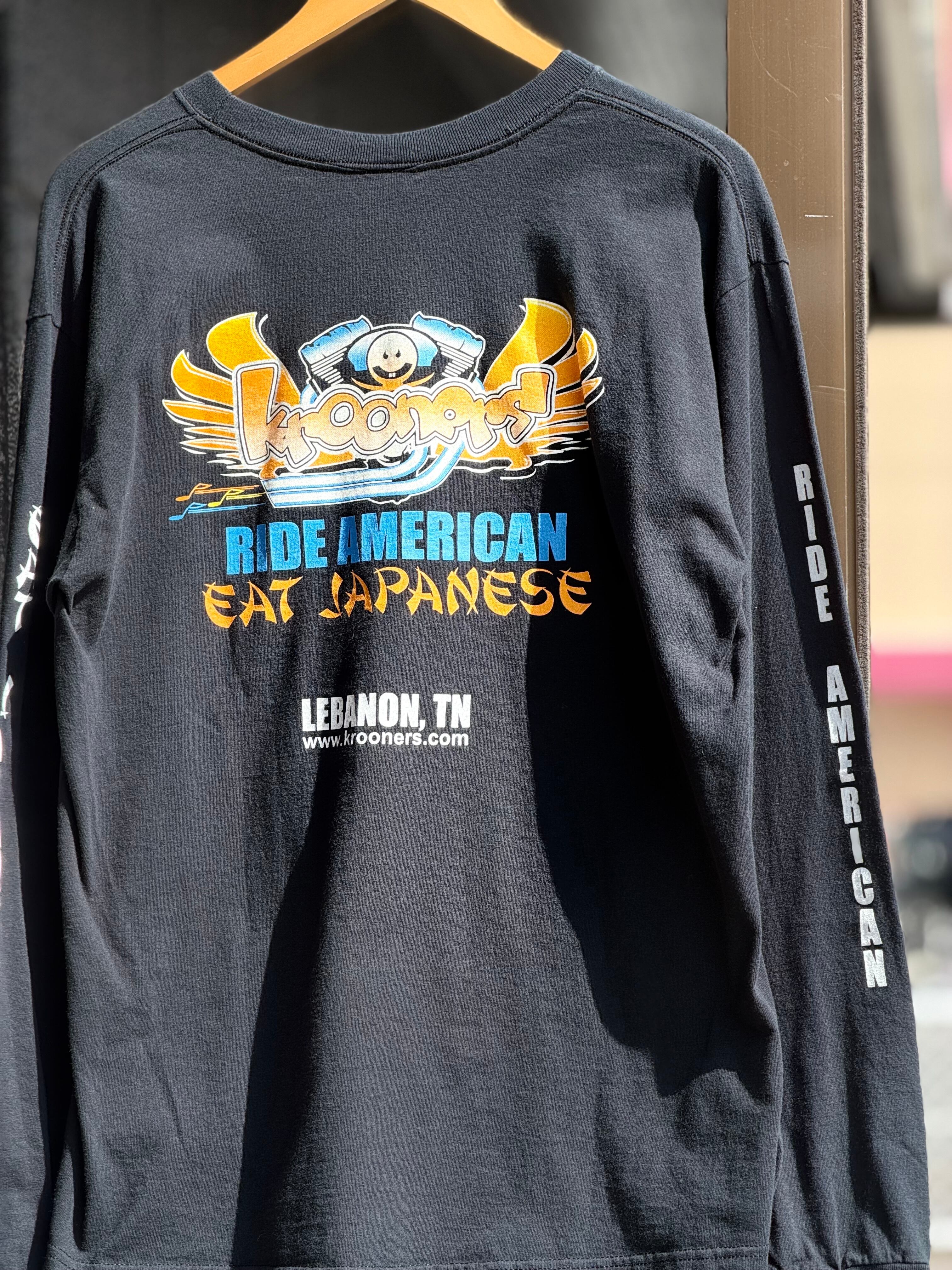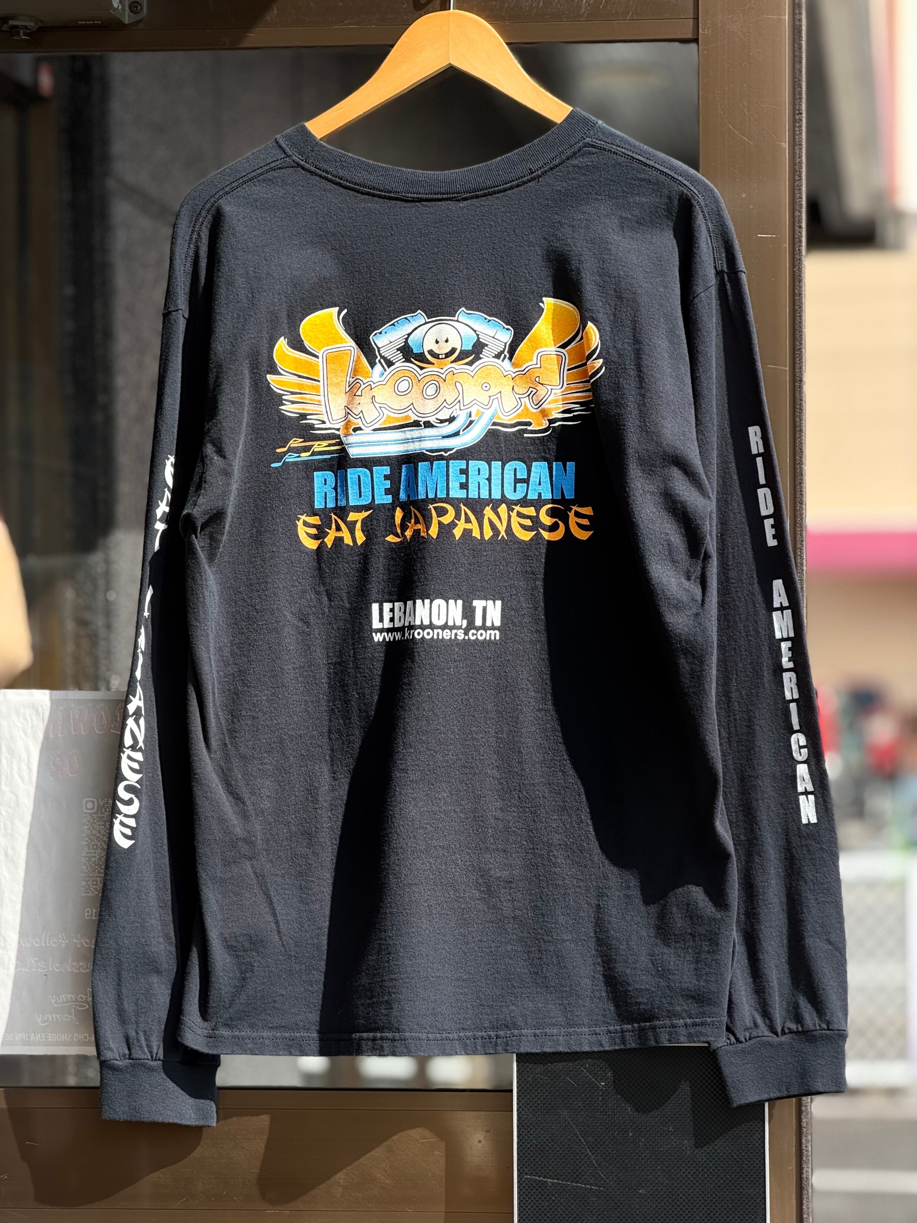 00's KROONERS "RIDE AMERICAN EAT JAPANESE" 長袖Tシャツ Lサイズ ブラック ロンT ツインカム HARLEY DAVIDSON ハーレーダビッドソン カスタムショップ バイク バイカー エンジン