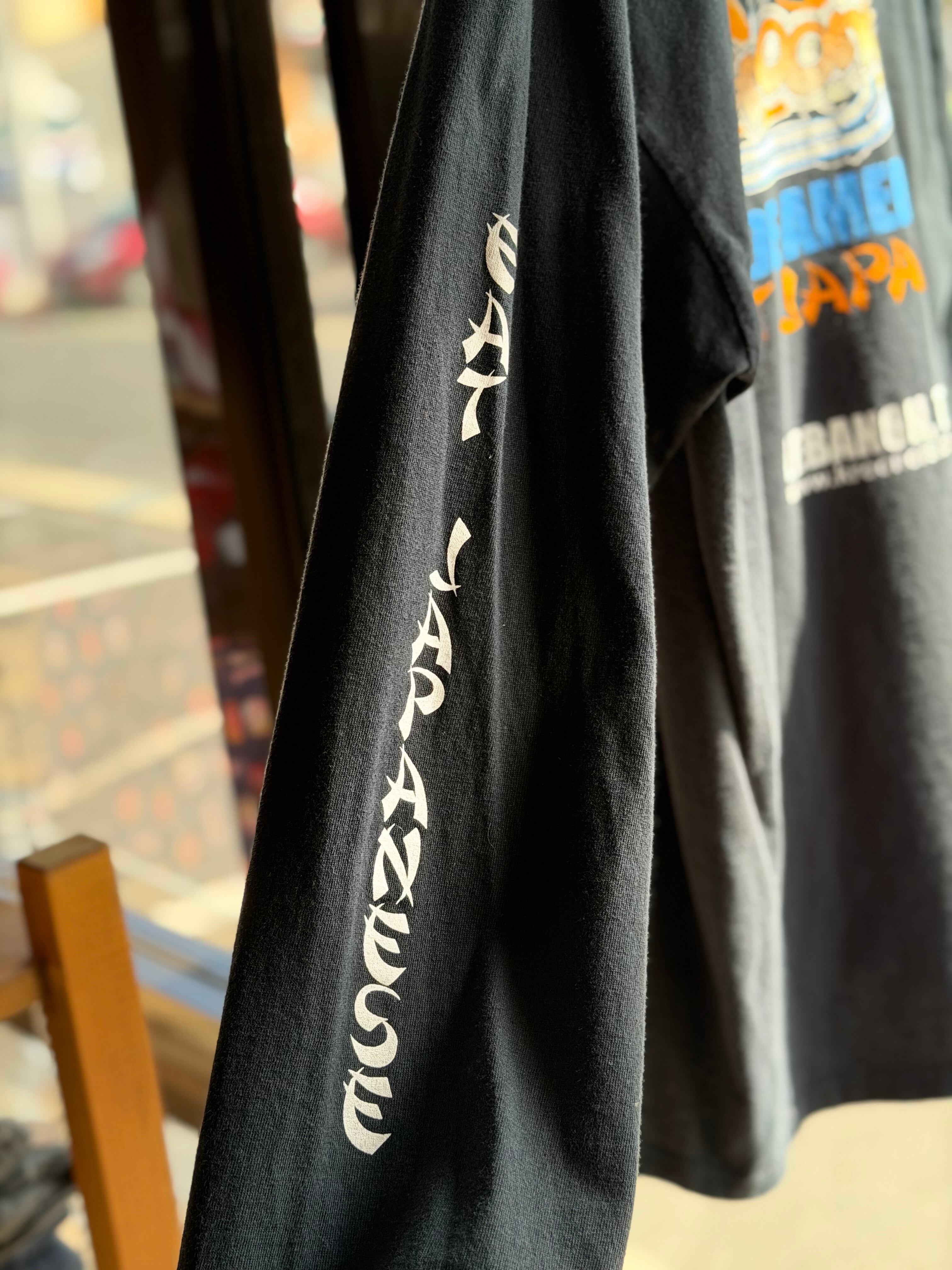 両袖にもそれぞれ"RIDE AMERICAN"と"EAT JAPANESE"が刻まれ、ロンT選ぶ上でかなり嬉しい袖プリも入ります。
