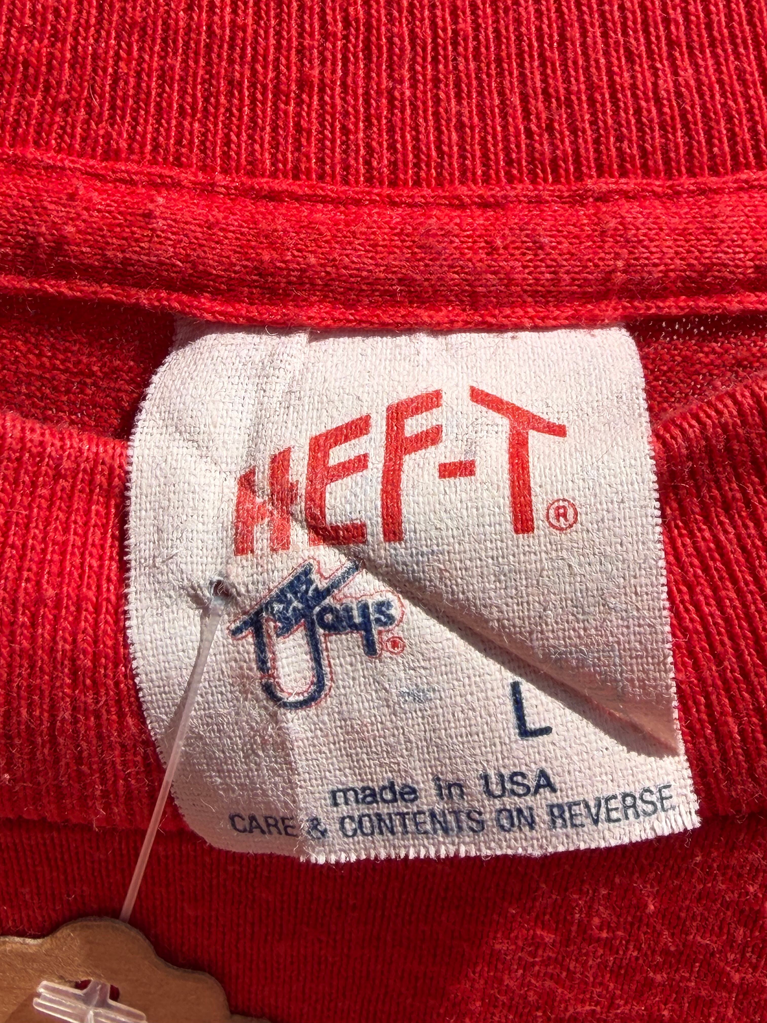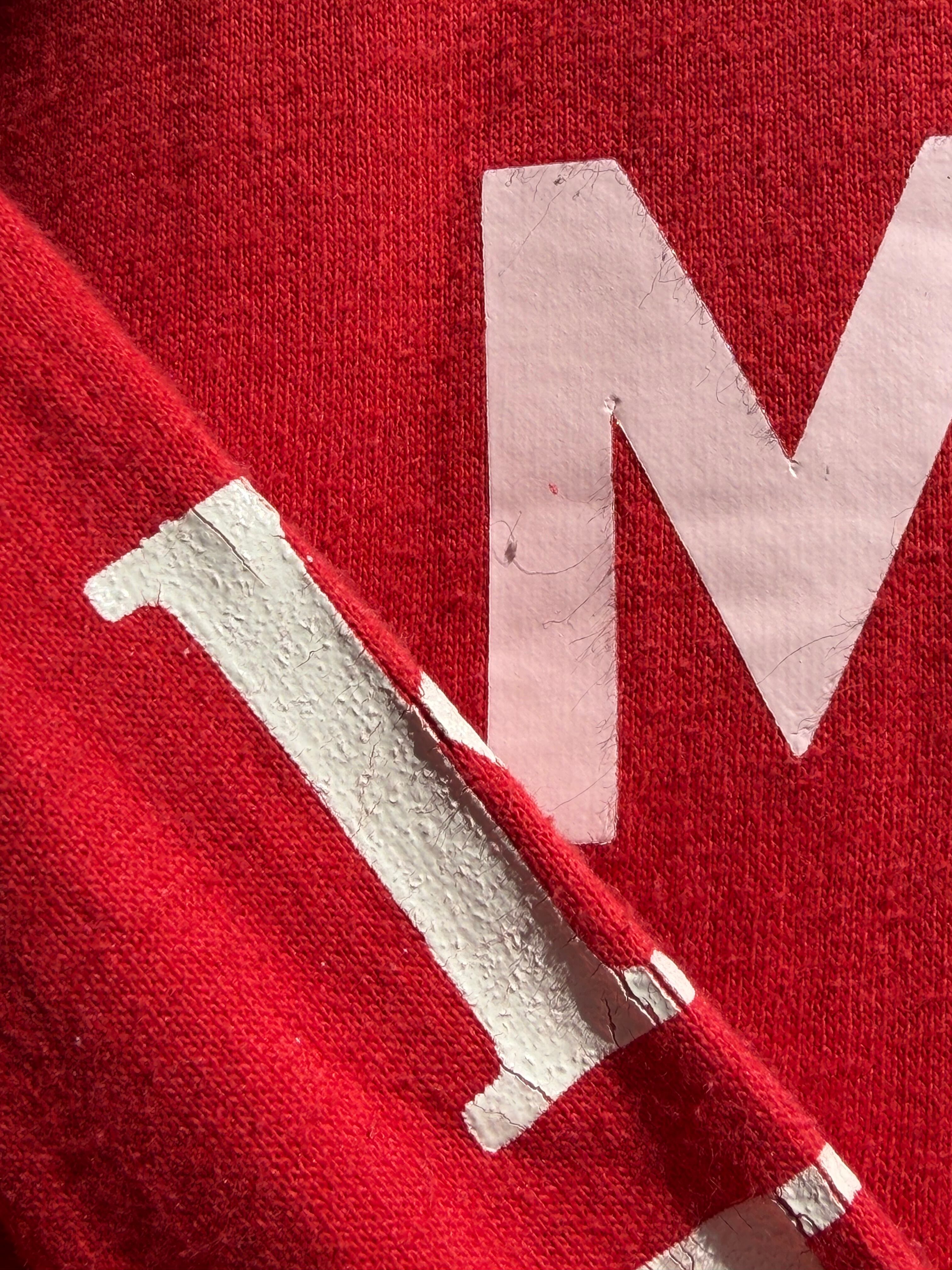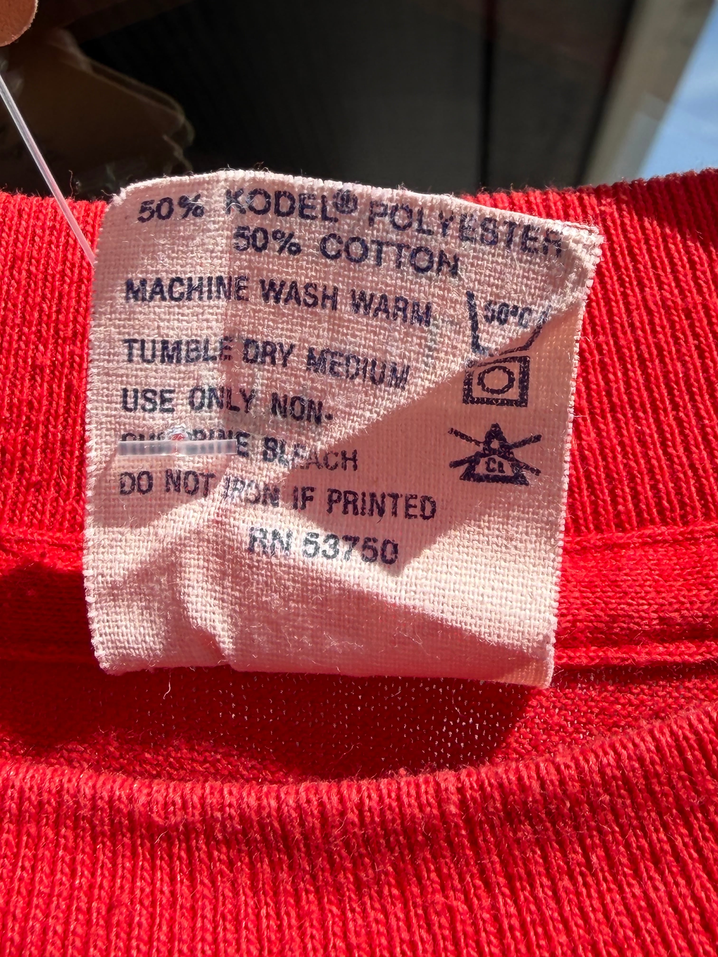 80年代らしくコットン/ポリの50/50ボディが若干フェードしたイイ赤してます。