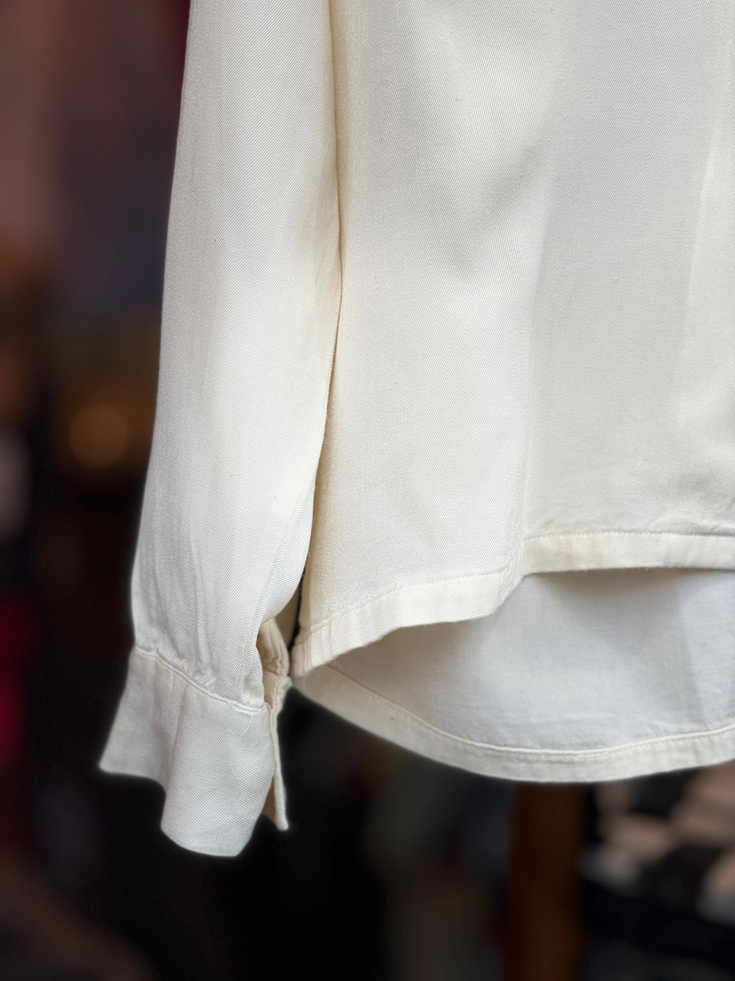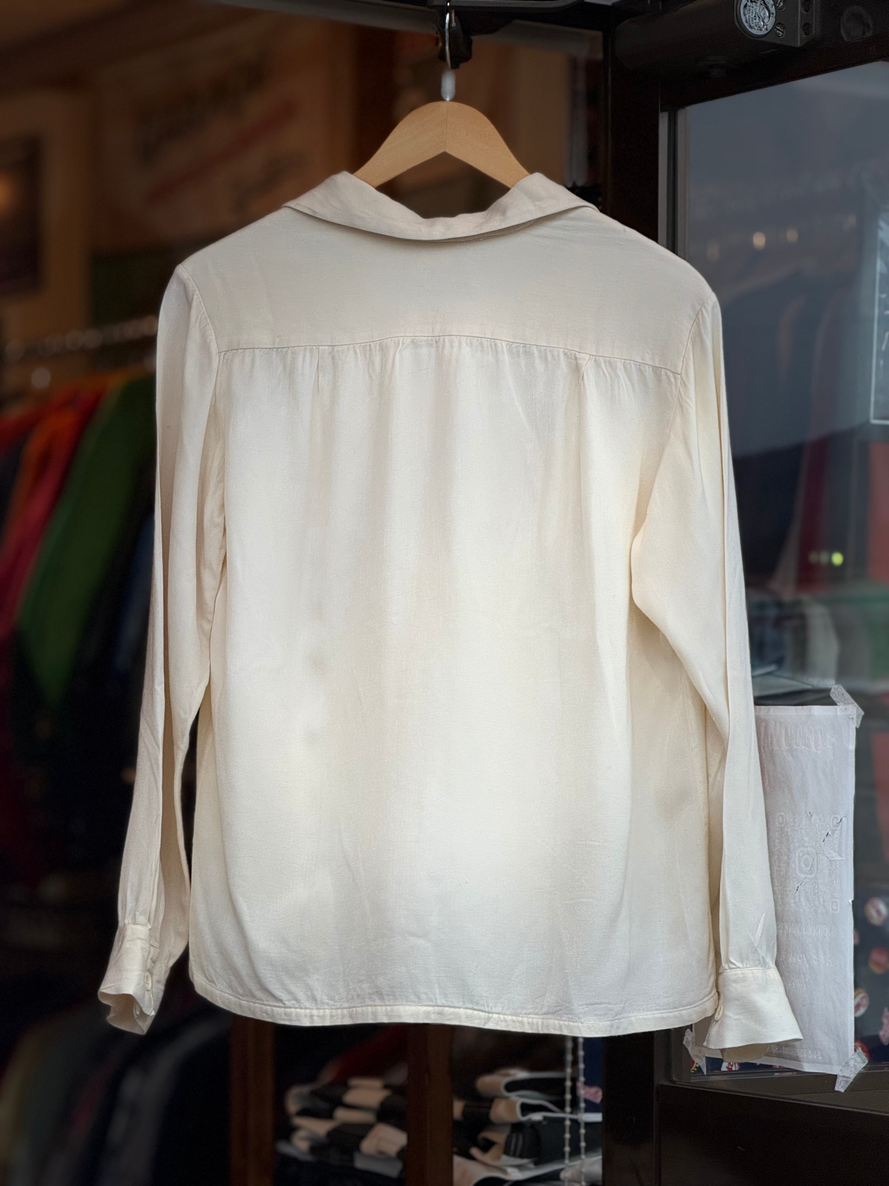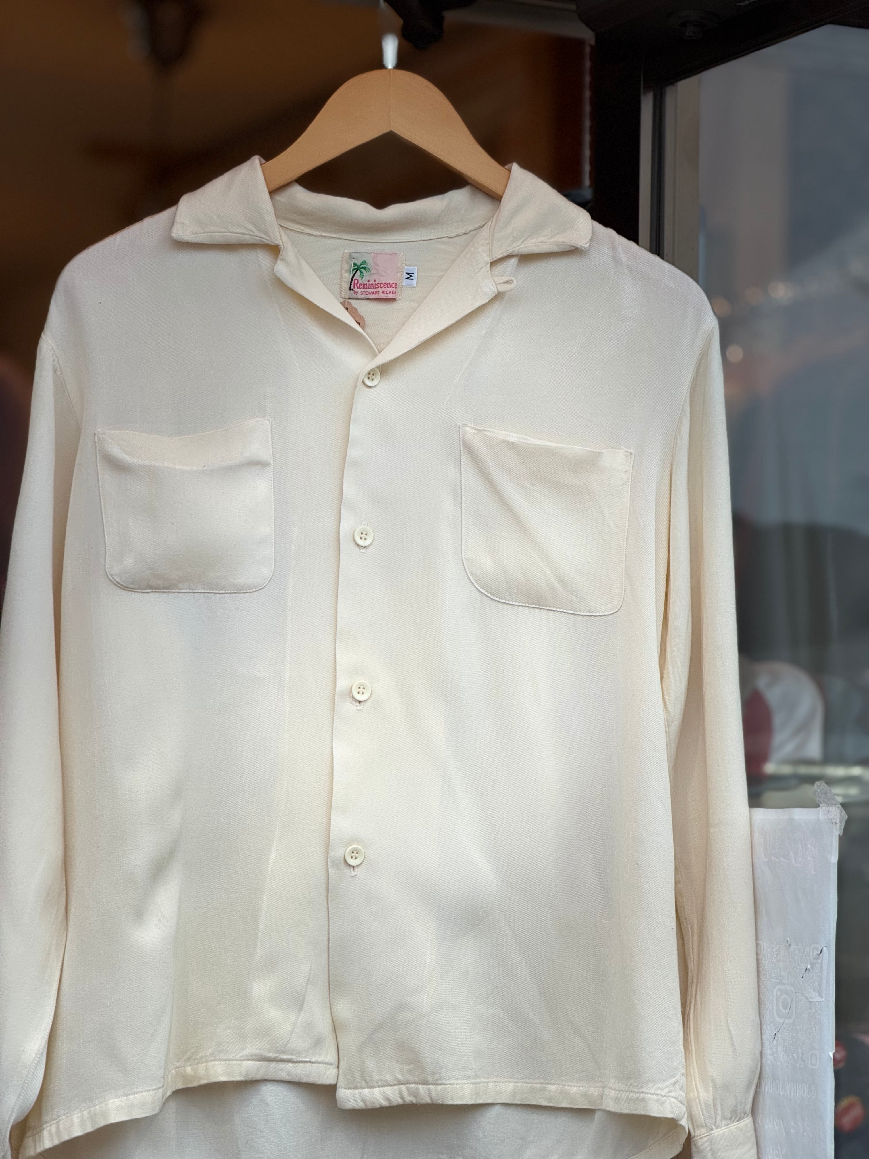 80~90's Reminiscence by STEWART RICHER レーヨンギャバジンオープンカラーシャツ Mサイズ レーヨンシャツ ギャバシャツ 開襟シャツ 長袖シャツ ロカビリー レミニッセンス ヴィンテージシャツ vintage rayon gabardine