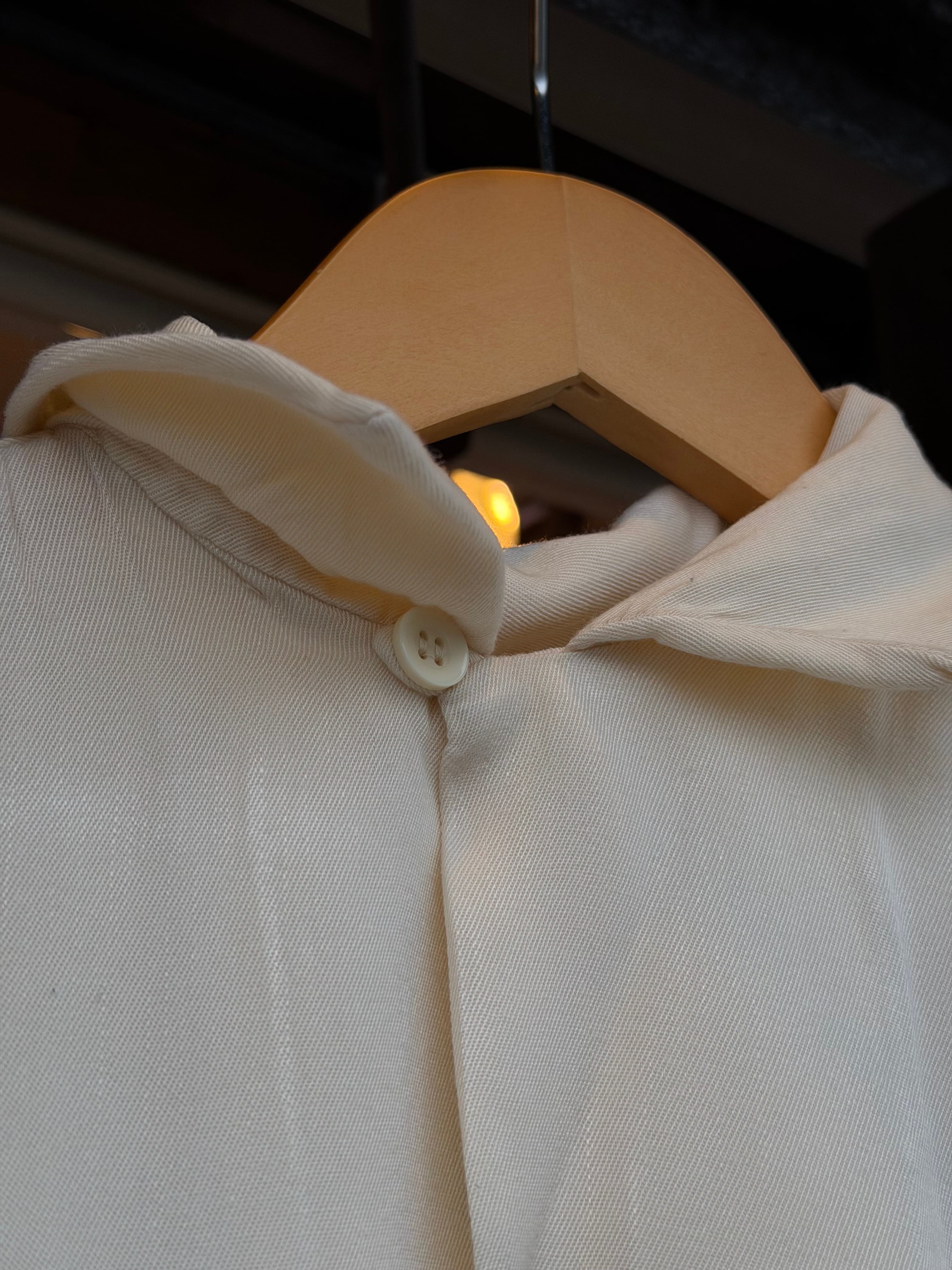 オープンカラーでボックスシルエット、白ではなく生成りです。