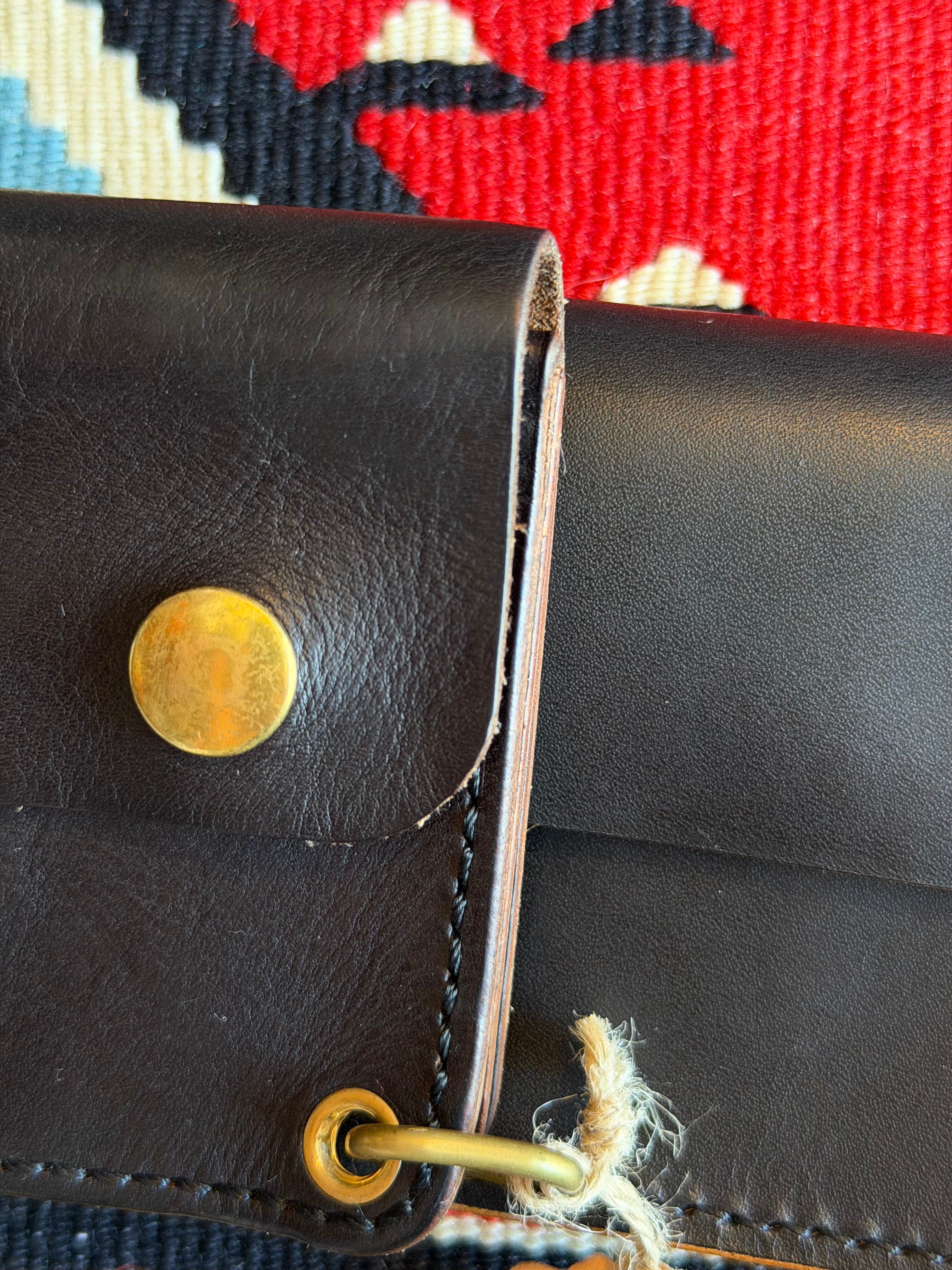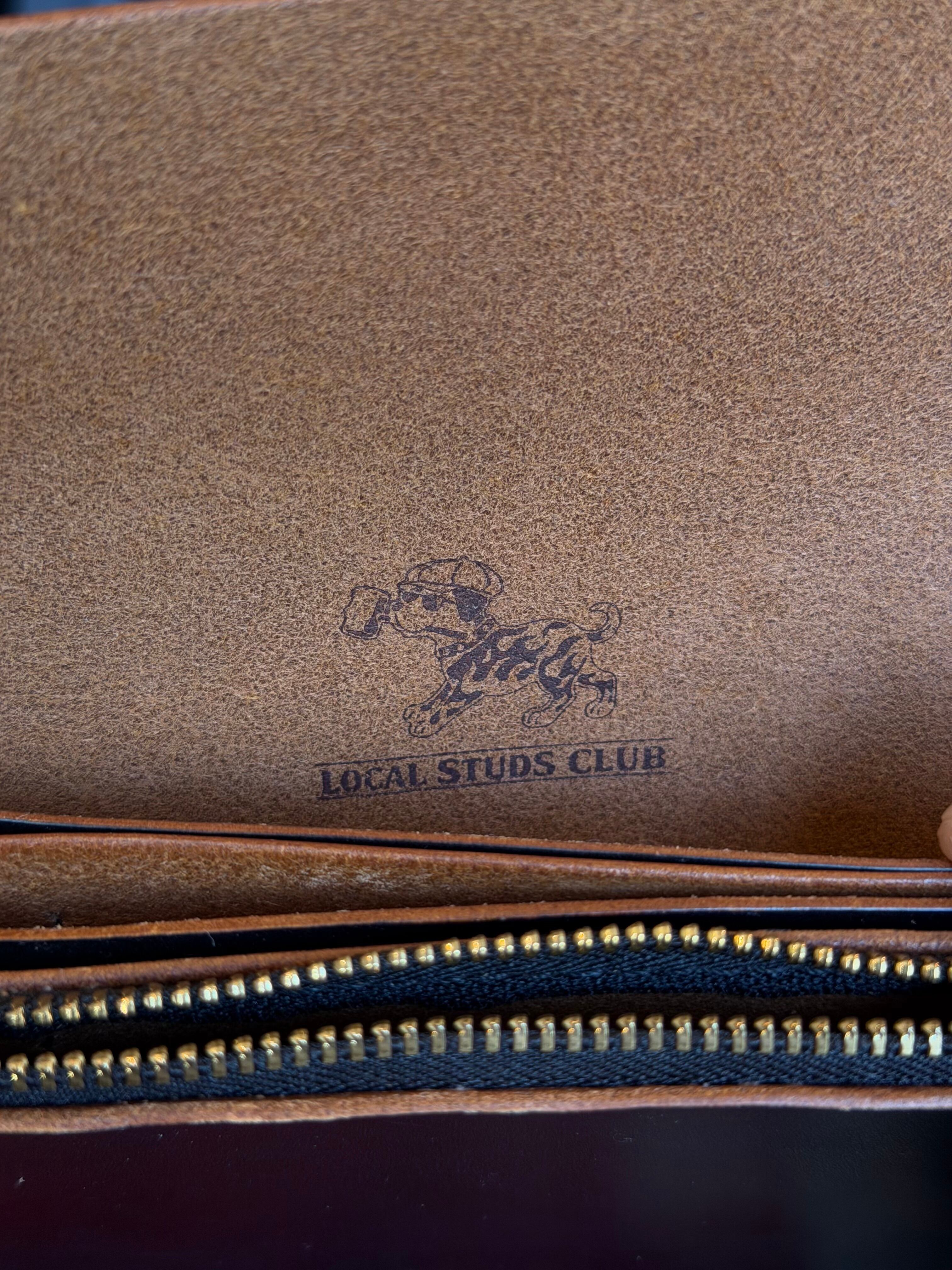 LOCAL STUDS CLUB "たつのハンドワックスレザー"茶芯ロングトラッカーウォレット MADE IN JAPAN ブラック 革財布 牛革 ミヤツグ 本革 42TALON ハンドメイド 経年変化 アメカジ バイカーウォレット long trucker wallet 真鍮