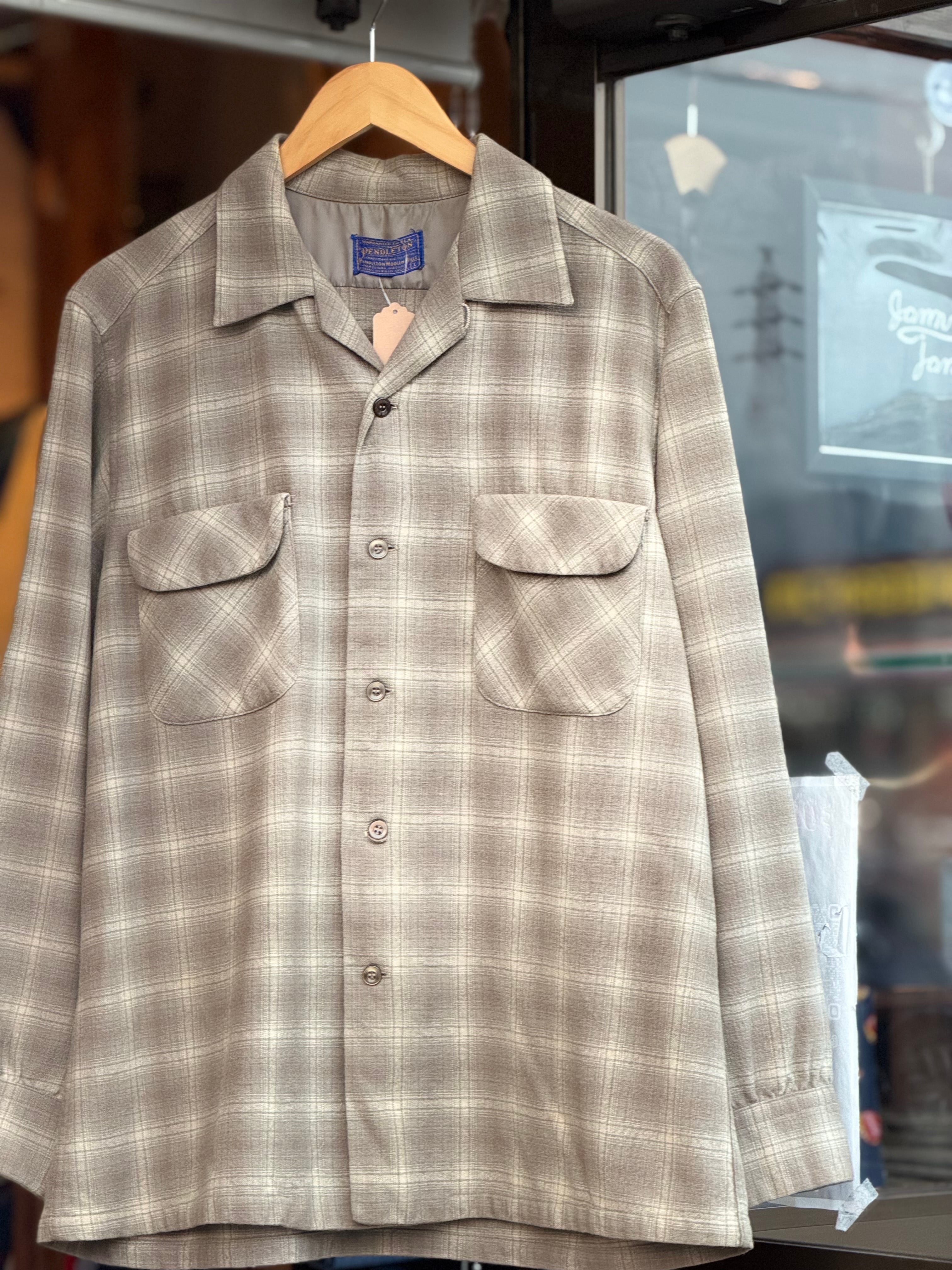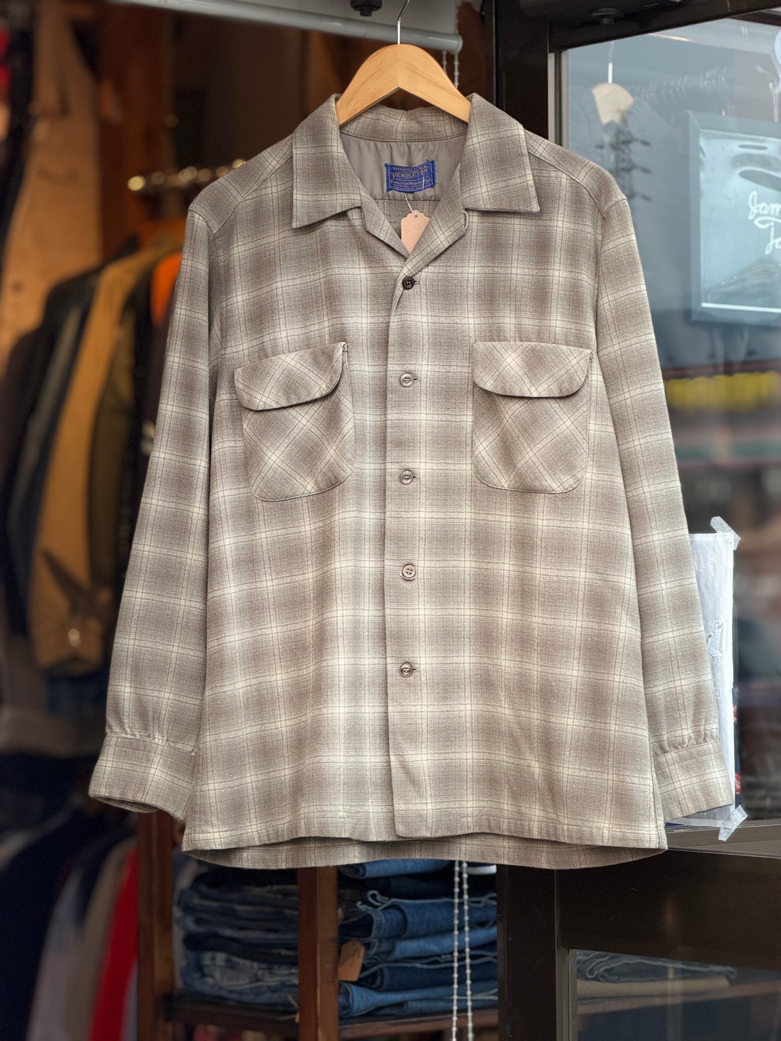 60's Vintage PENDLETON "オンブレチェック"ボードシャツ Lサイズ ブラウン ベージュ HOMBRE plaid 開襟 board shirt 不良 60年代 ヴィンテージ ペンドルトン ウールシャツ アメカジ バイカー グランジ 古着