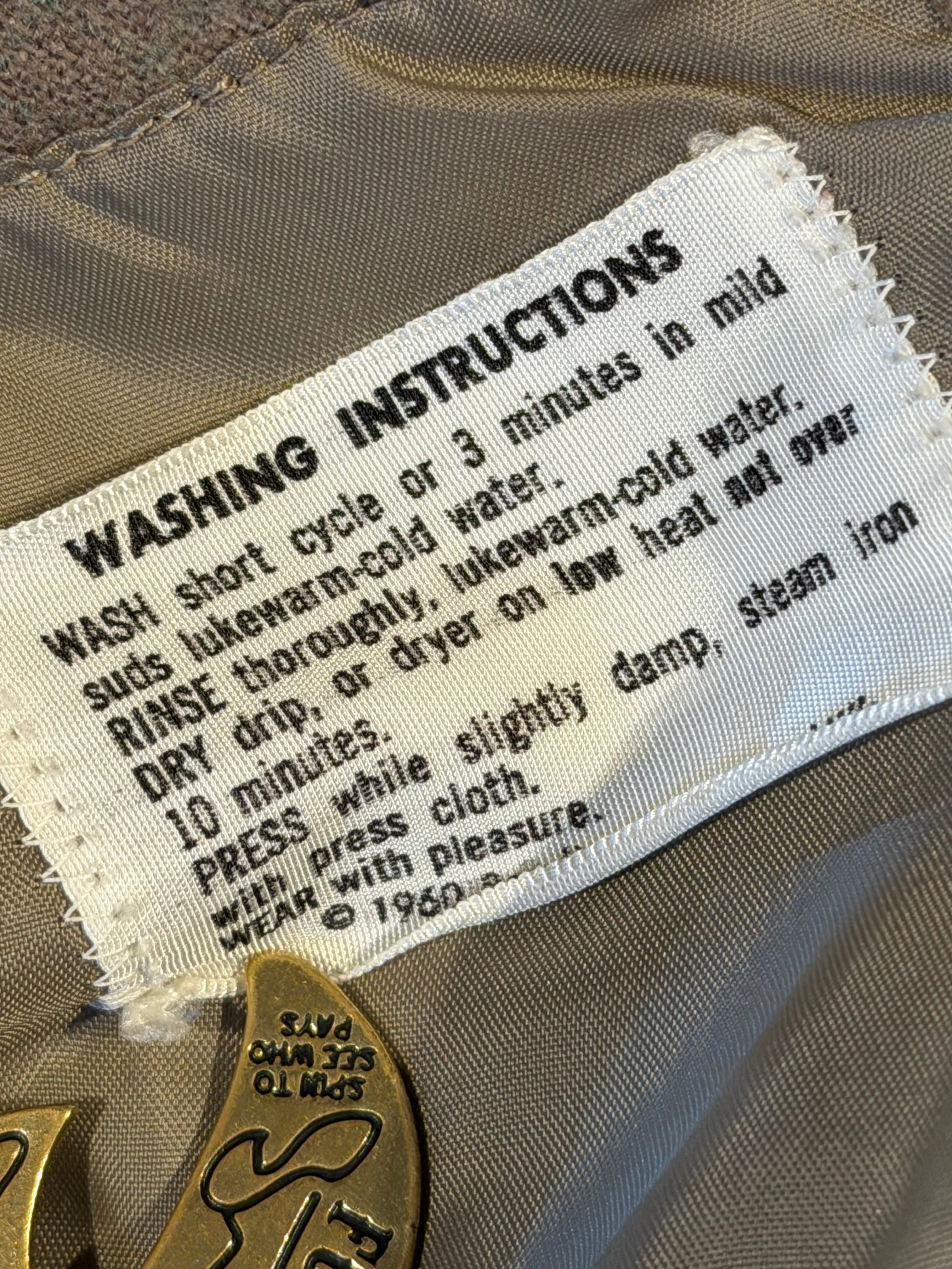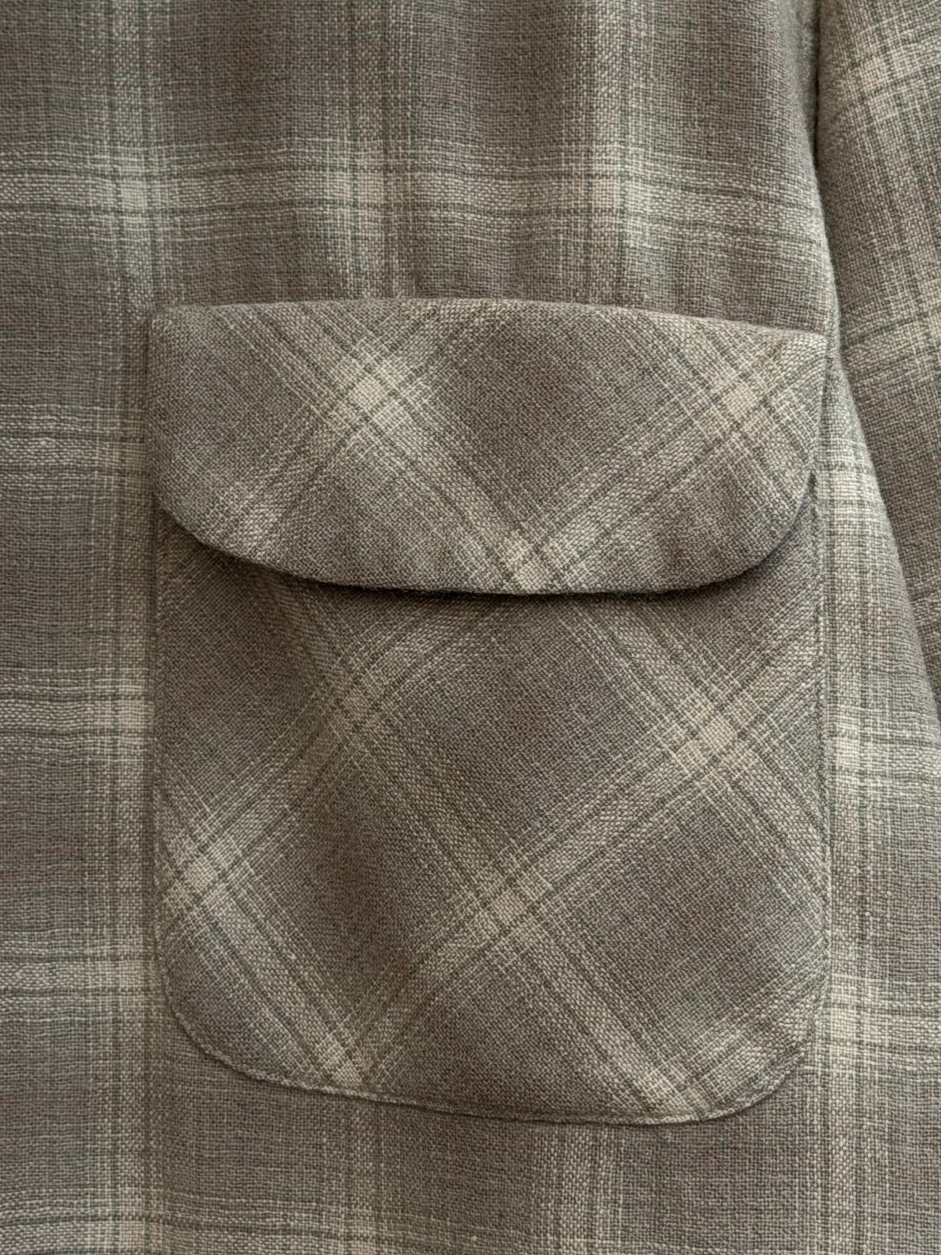 オープンカラー、フラップ付きポケット、デカめの襟、ボックスシルエットと、ディティールは50年代頃のモノですが、右肩内側に付く洗濯表示には1960年のコピーライトが入ります。