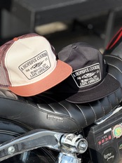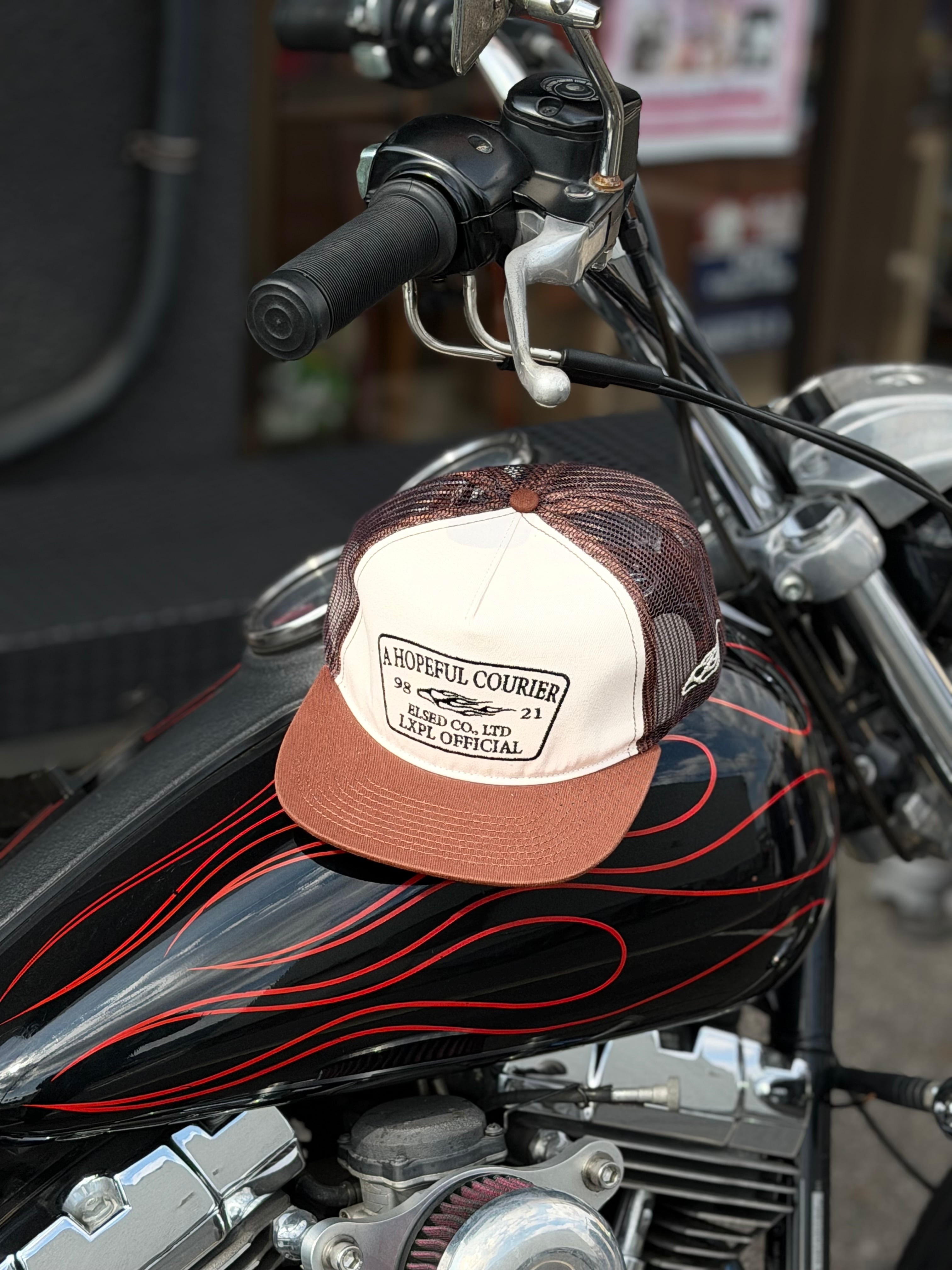 ここ最近のアメカジ、バイカー界隈を騒がせているブランド"LXPL"のメッシュトラッカーキャップです。