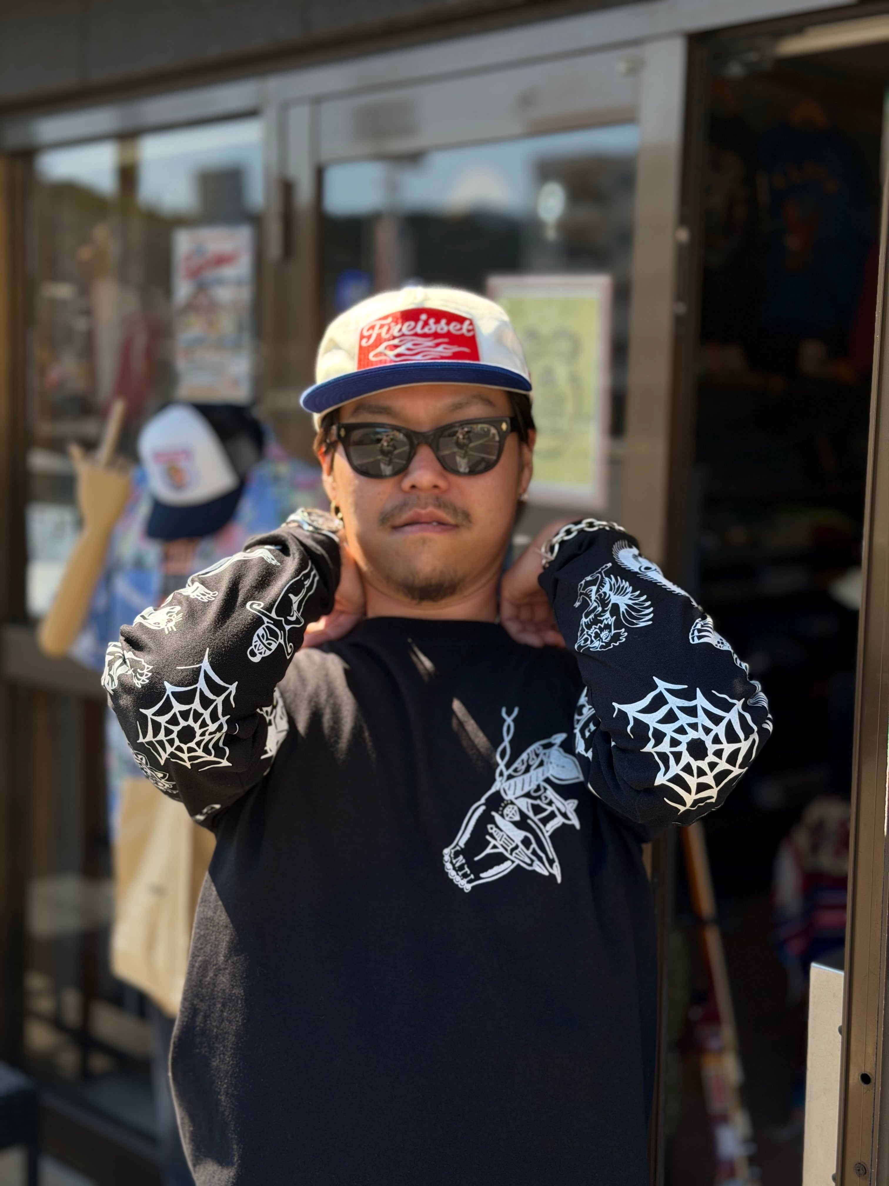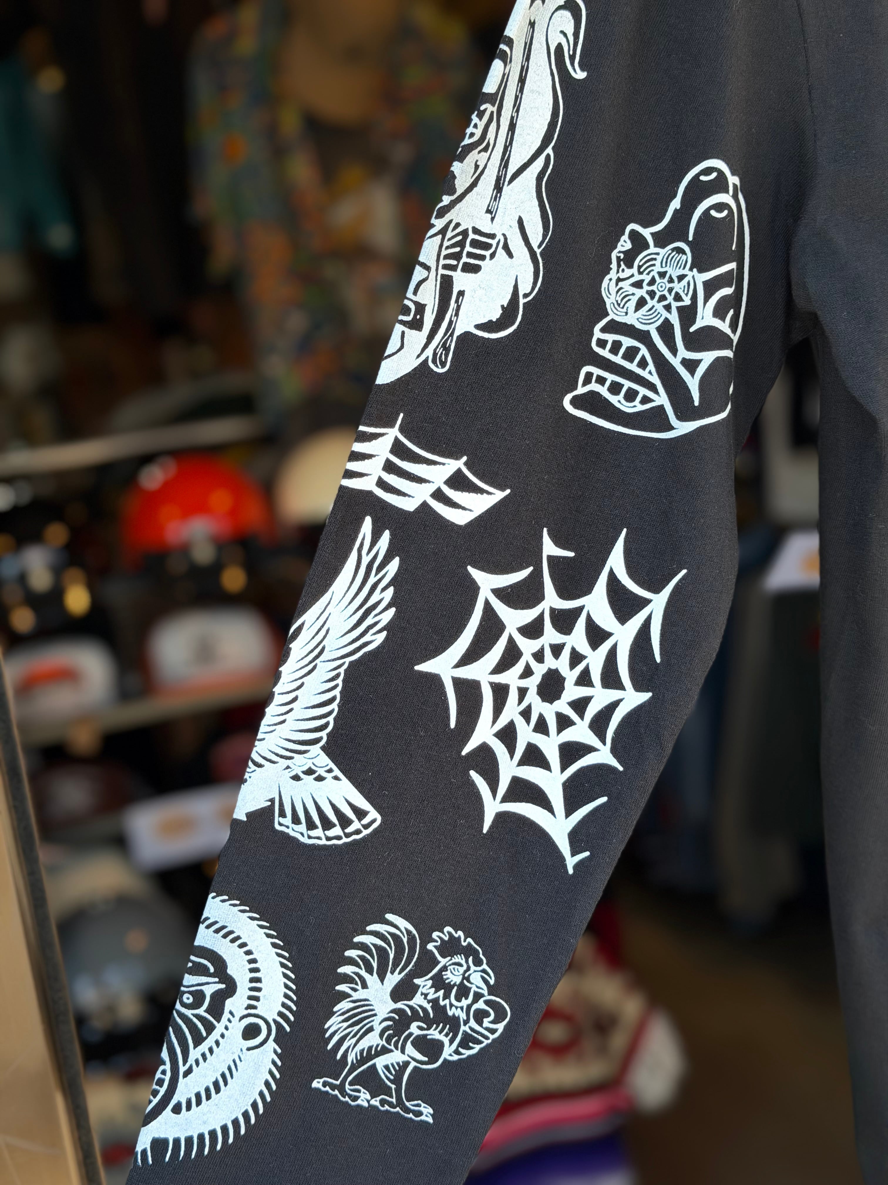 タトゥースリーブプリント、その名の通り両袖にガッツリ"アメリカントラディショナルタトゥー"のデザインが施された、スペシャルな仕様となっております!