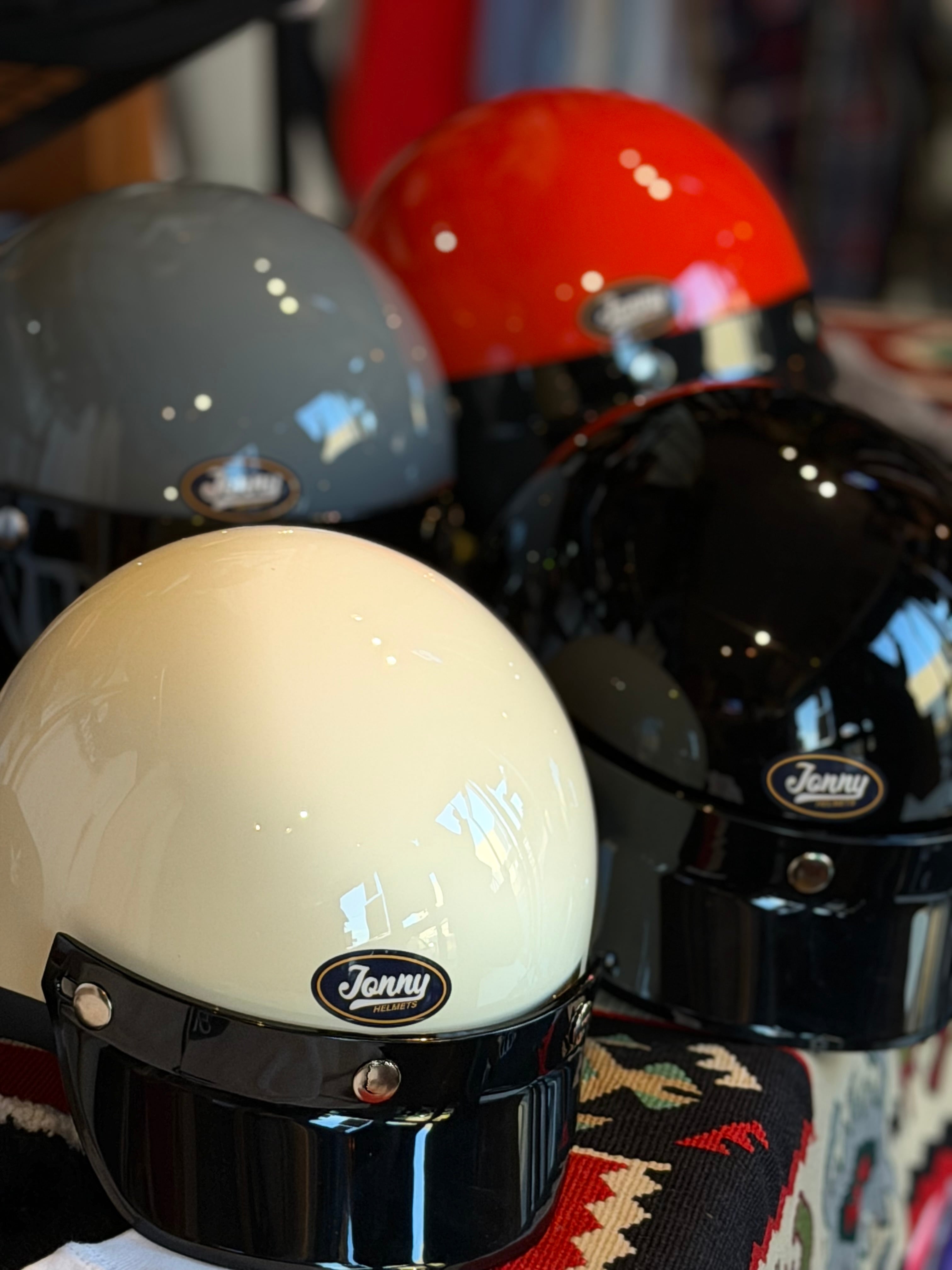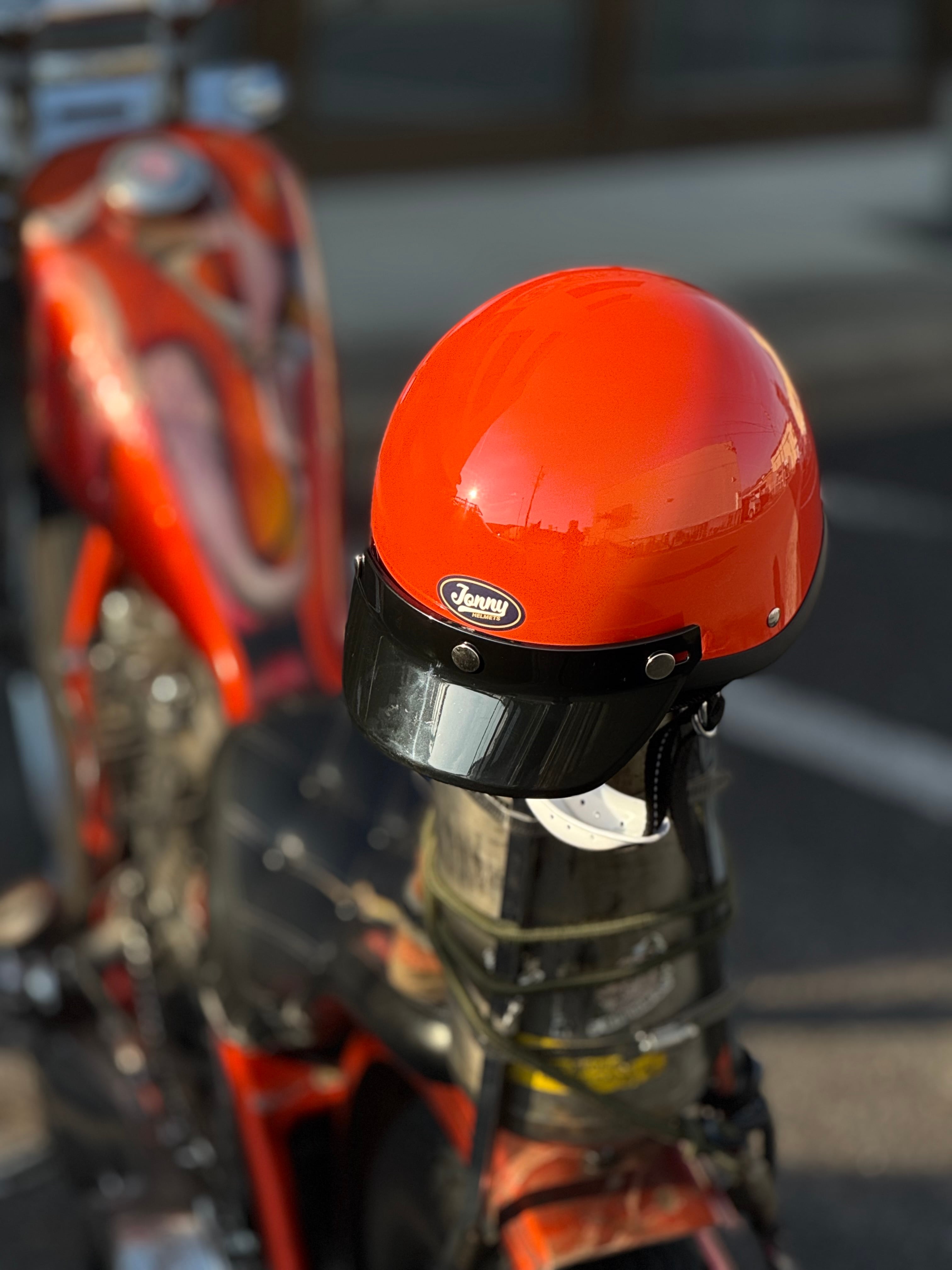 古着屋 jonny jonny オリジナルヘルメット "Jonny HELMETS" SHORTYタイプ 半キャップ FRP グラスファイバー バイクヘルメット 装飾品 半ヘル バイカーファッション バイクギア ショーティ 目深 チョッパー ハーレー ポリスヘルメット