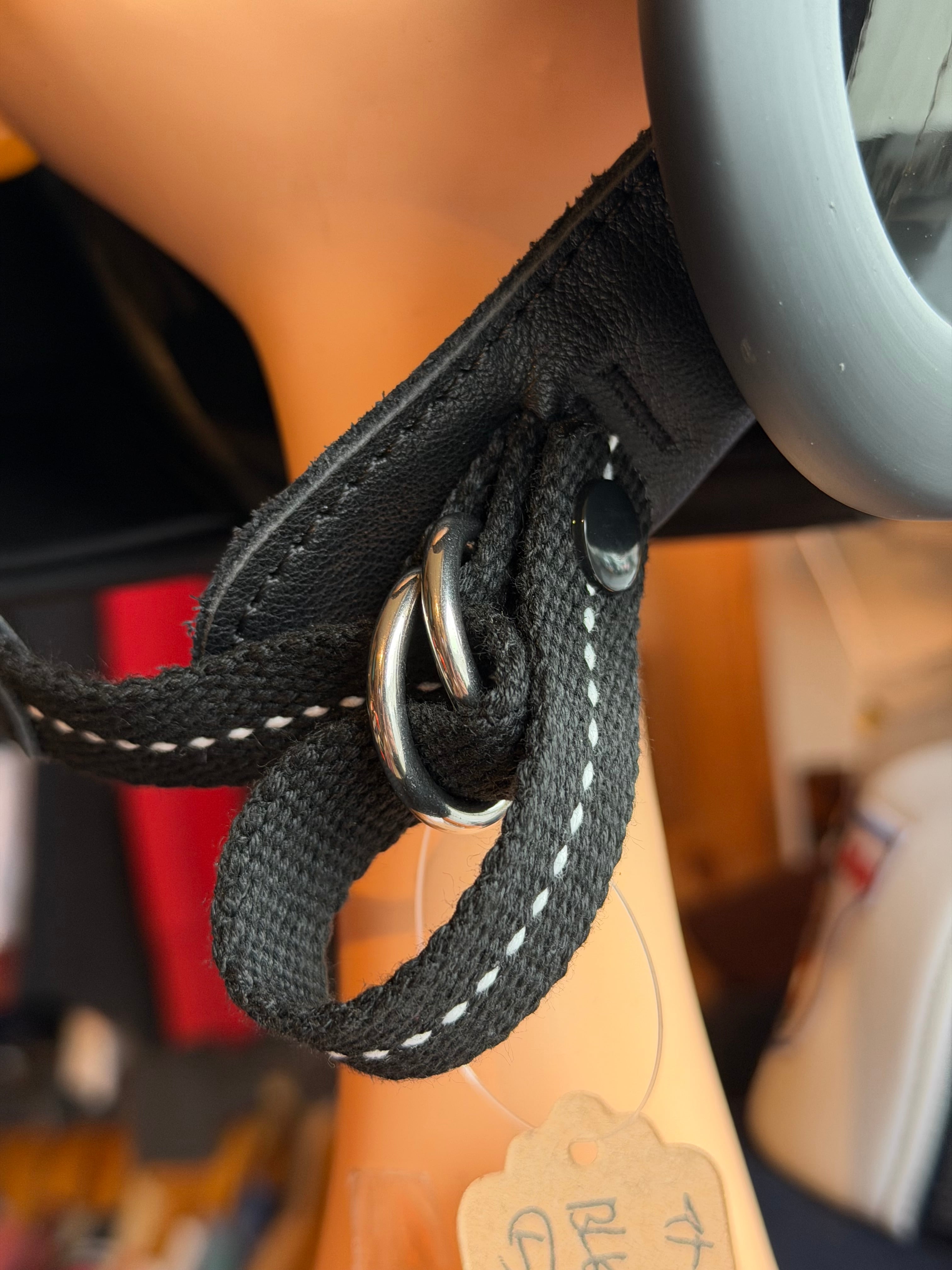 ストラップの先にスナップボタンが設けられ、留めておく事で走行時のバタつき、ミニビンタが気になりません。