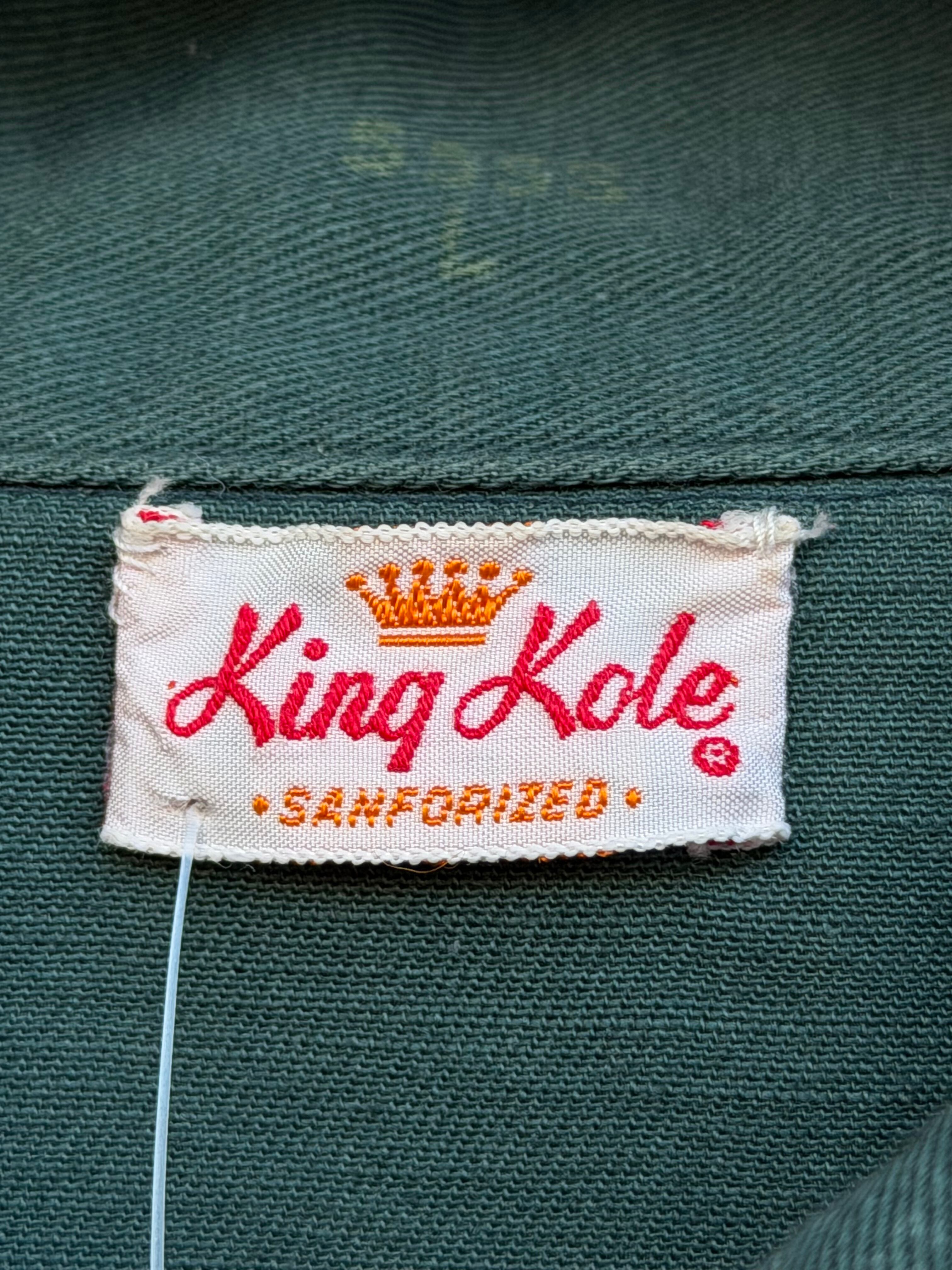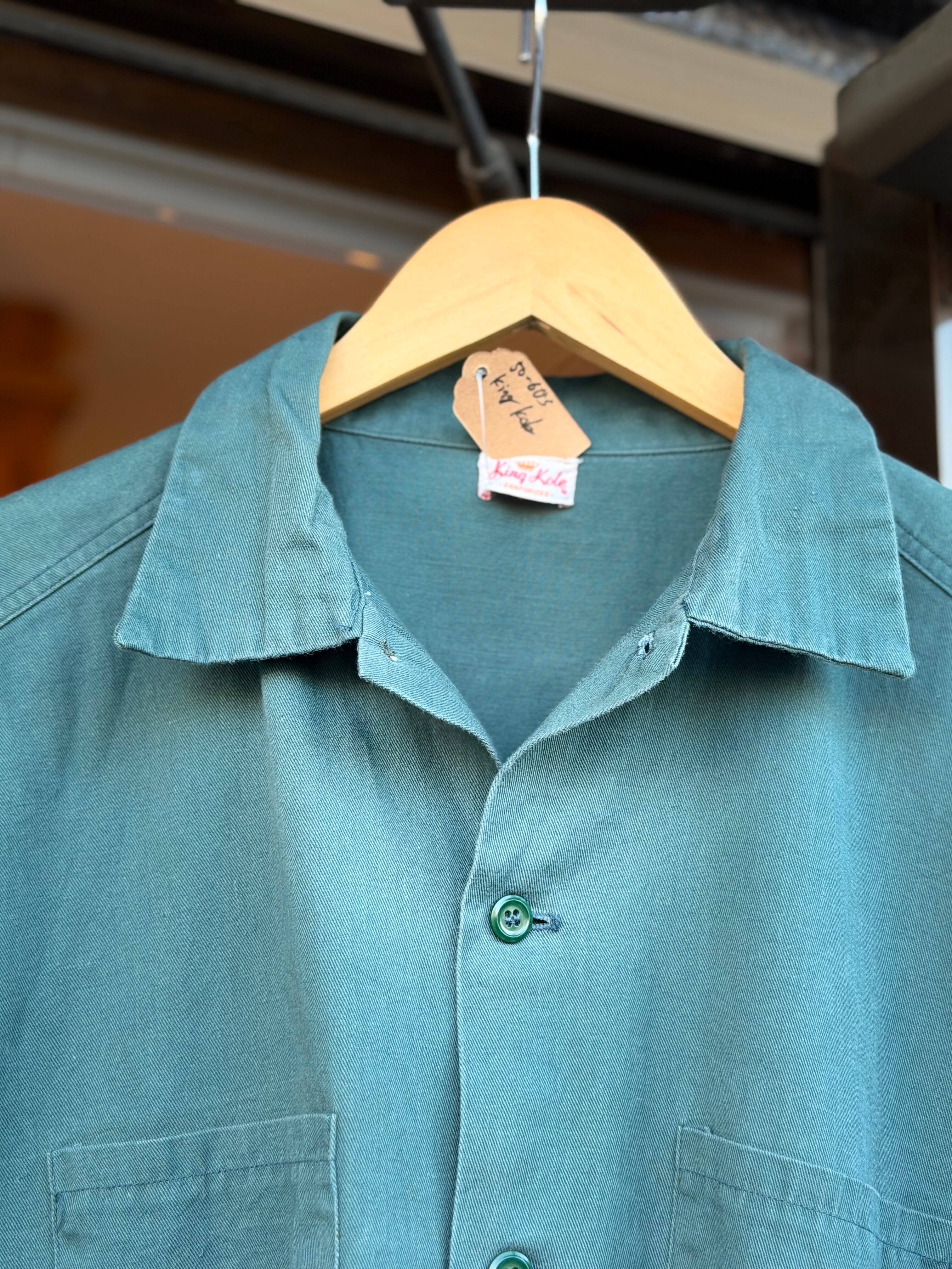 50~60's Vintage King Kole 半袖ワークシャツ Lサイズ程 ダークグリーン 深緑 半袖シャツ オープンカラー 開襟シャツ ヴィンテージシャツ ビンテージシャツ ボックスシルエット ロカビリー