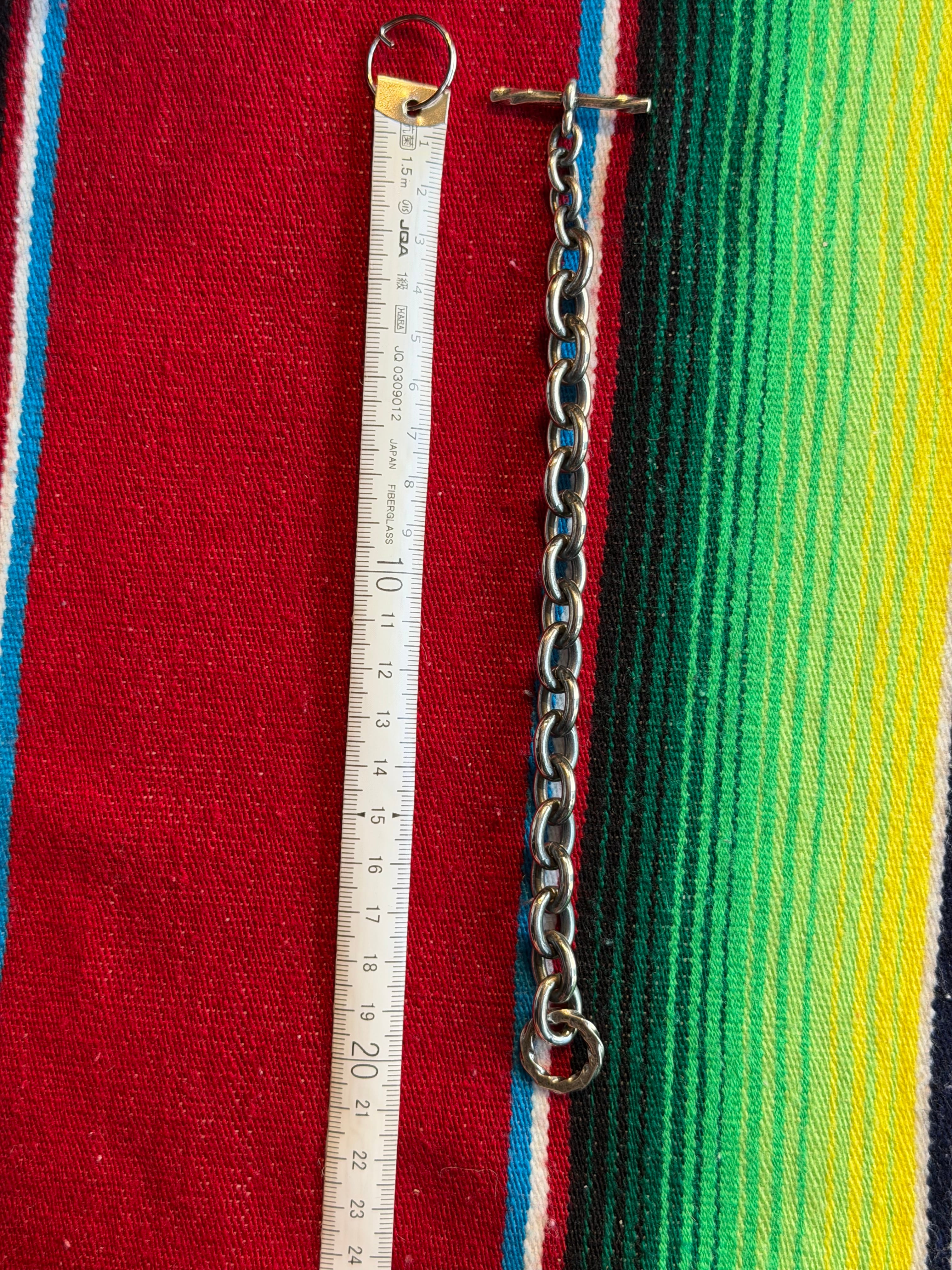 ウォレットチェーンと同じく、真鍮のチェーンにシルバーメッキを施しています。