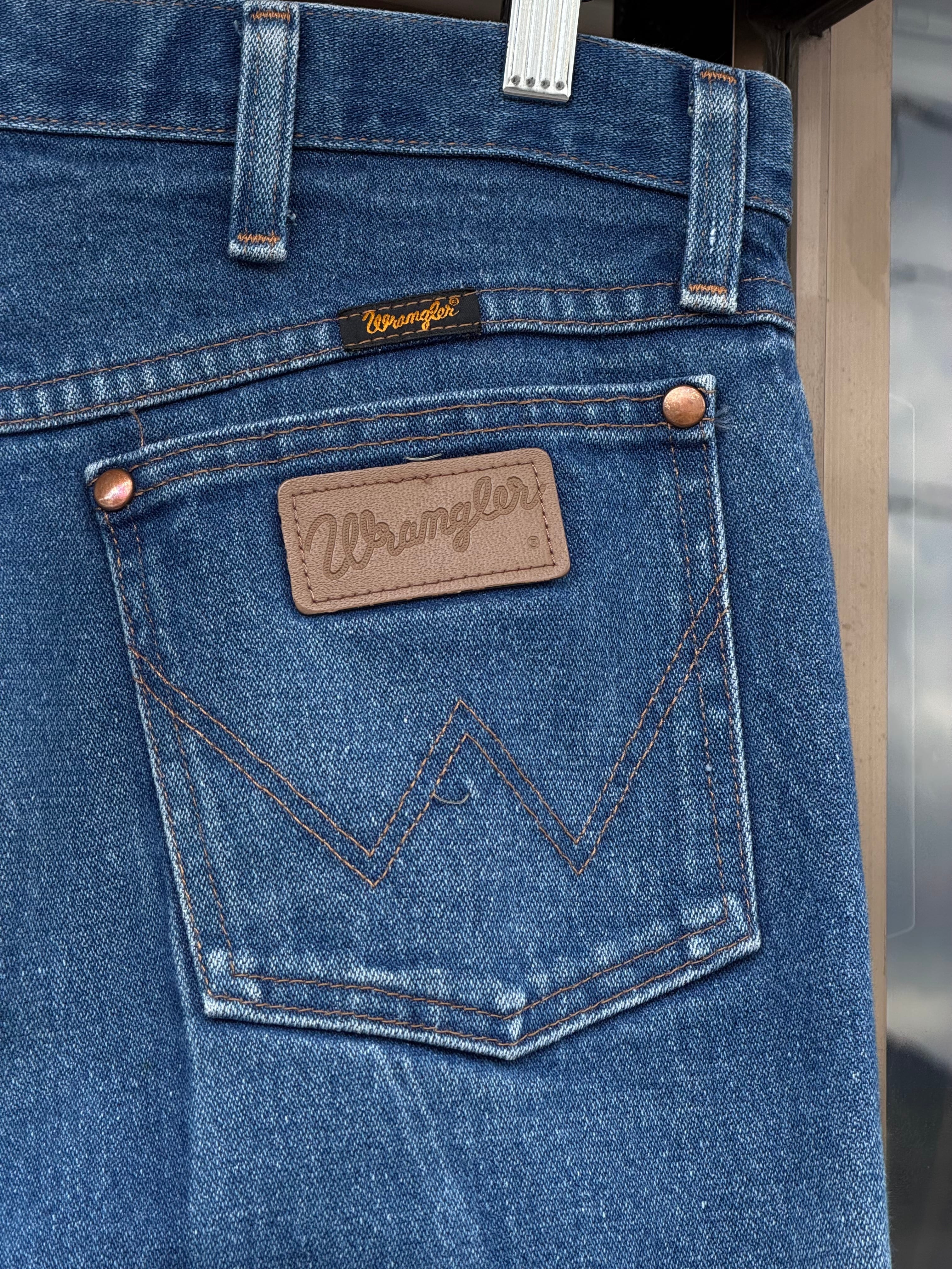 Wrangler 13MWZ A001 "COWBOY CUT" ストレートフィットデニムパンツ W33×L32 ラングラー メキシコ製 インディゴブルー 色落ちバキバキ 13oz ブロークンデニム ジーンズ ジーパン カウボーイカット アメカジ 古着 鬼ヒゲ ヴィンテージジーンズ