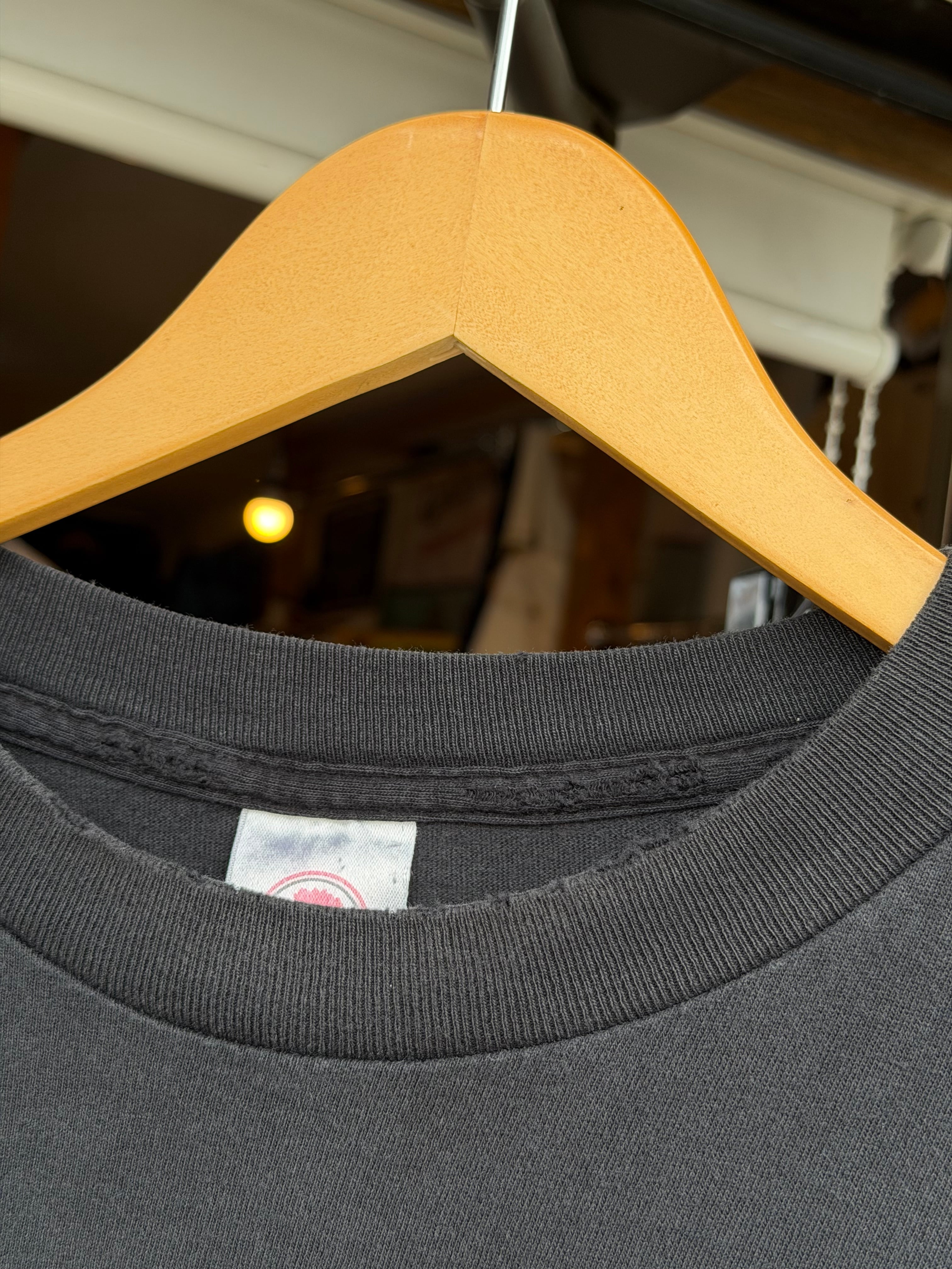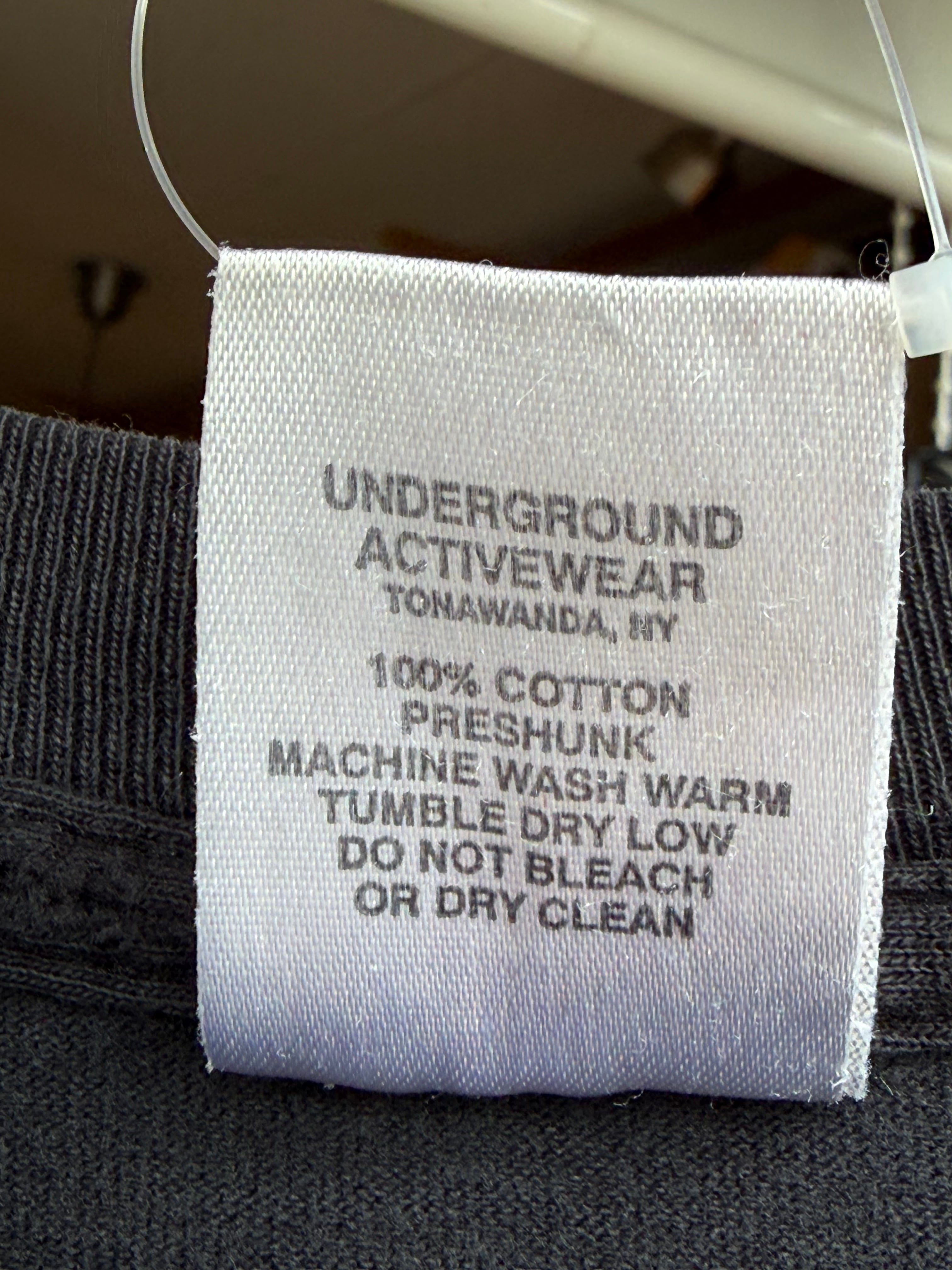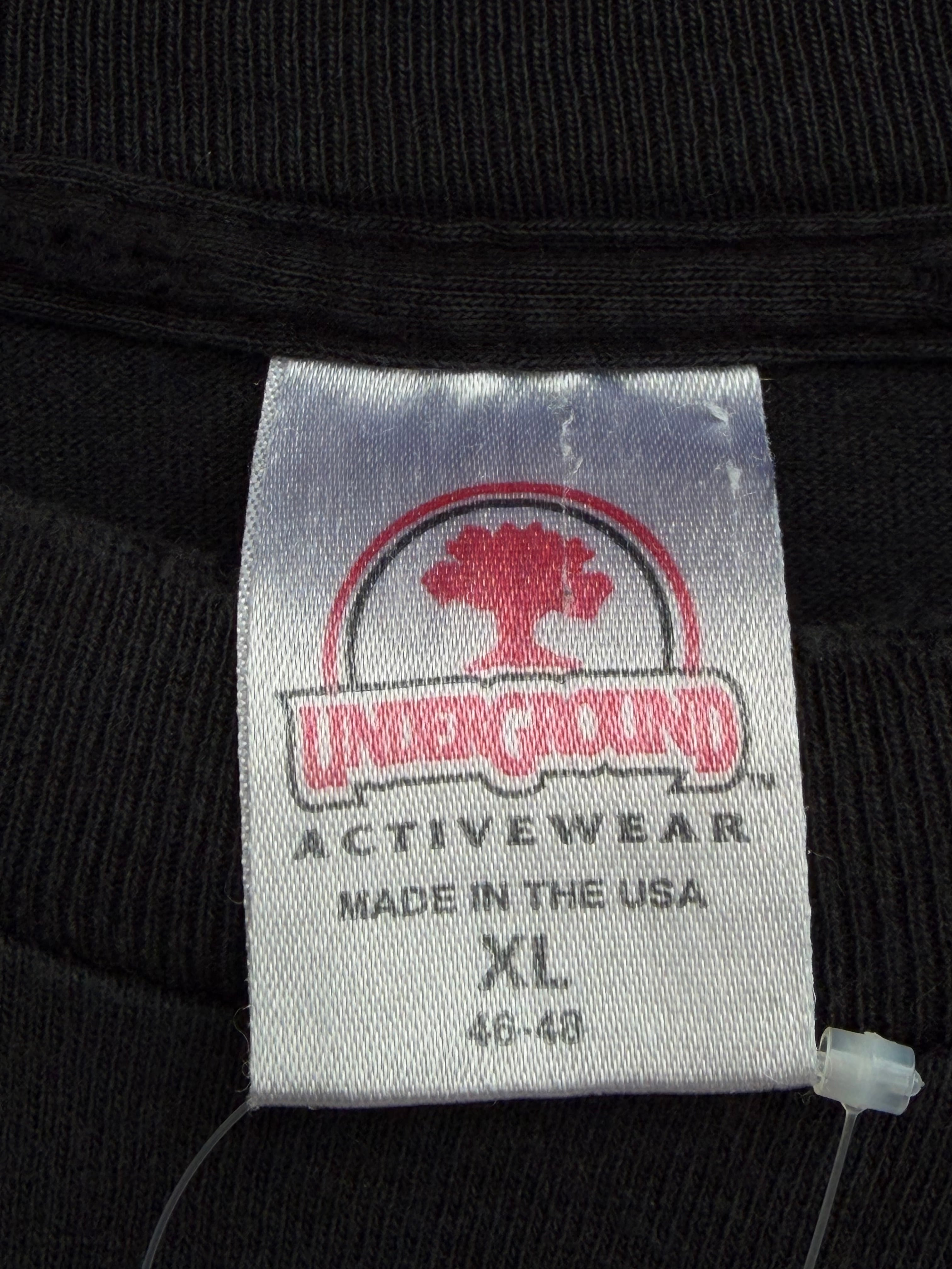 "UNDERGROUND ACTIVE WEAR"というメーカーのボディを使用し、かなり着られていたようで褪色、プリントのワレ、ちょいボロ加減が最高です。