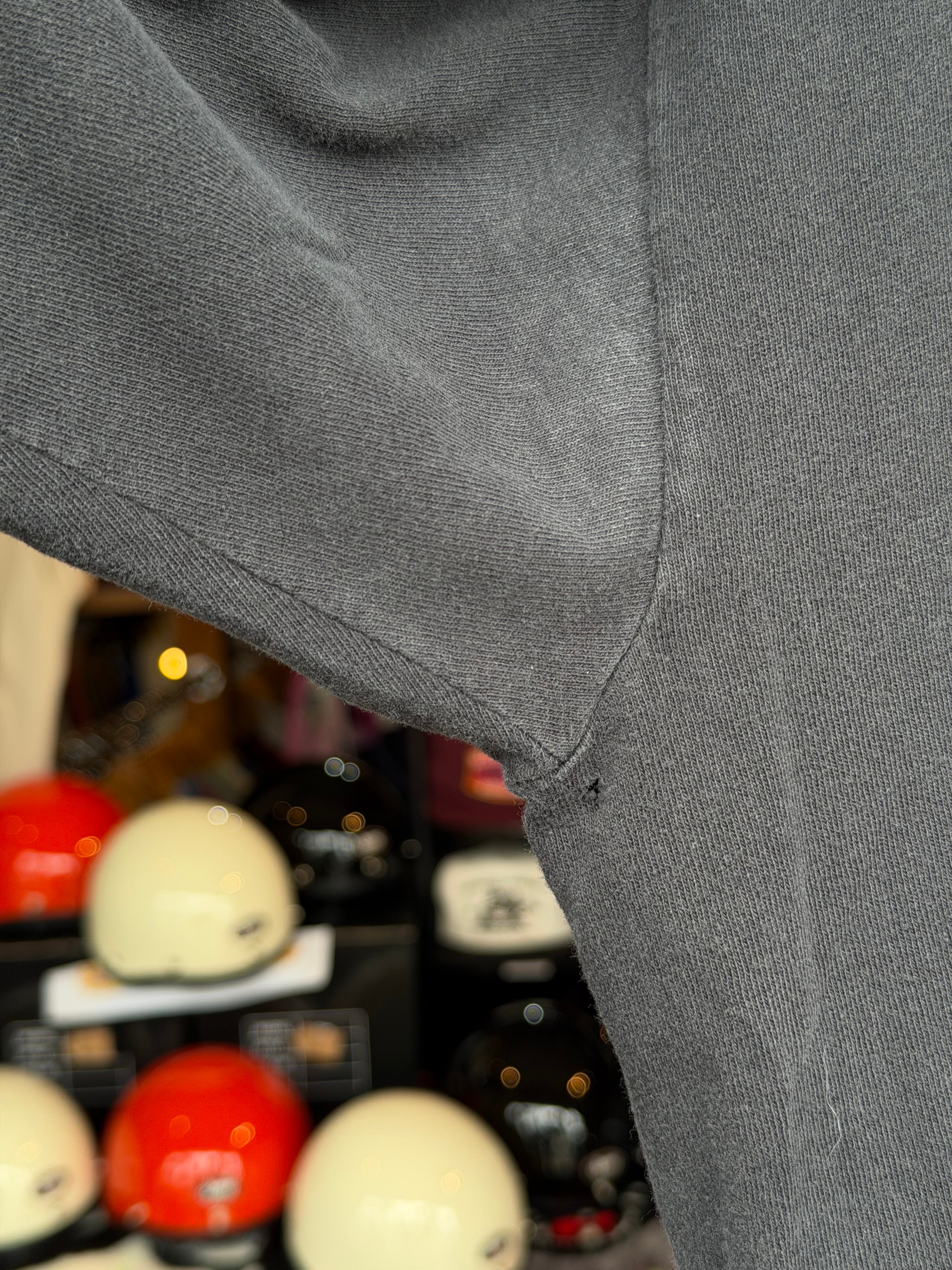 全体的に使用感、褪色、首元のダメージ、左下腹部にインクのような汚れ、右脇下に小さなダメージがありますが、全てアジと捉えられるレベルで、着用には支障ありません。