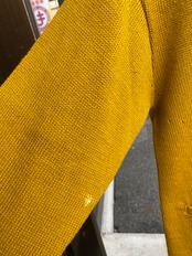 着用に支障の出る大きなダメージこそありませんが、全体的に小さな穴、ダメージ、数箇所にリペア跡が見られます。