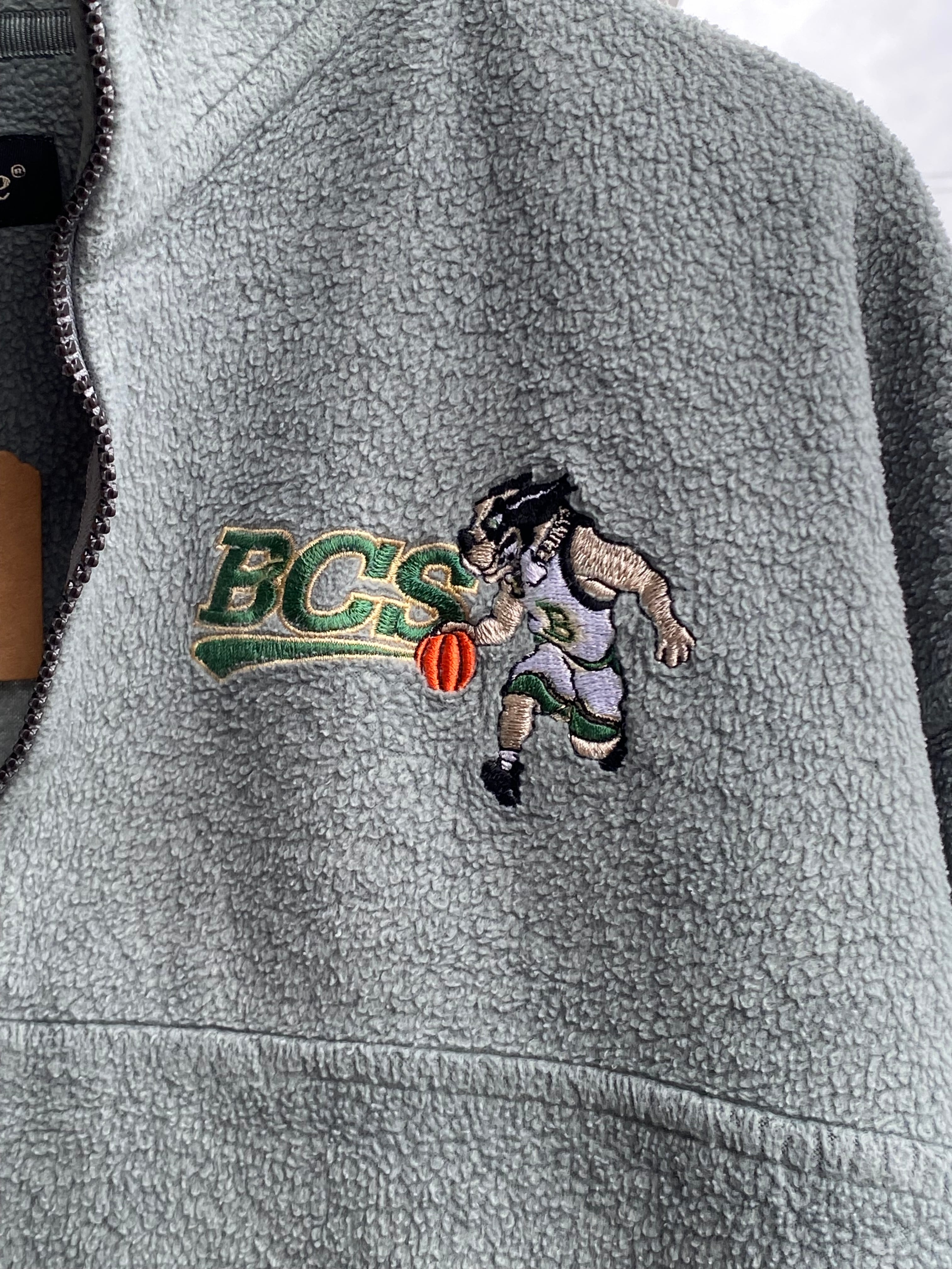 Dunbrooke ハーフジップフリースプルオーバー Mサイズ ライトグリーン BCS ワンポイント刺繍 バスケ 犬