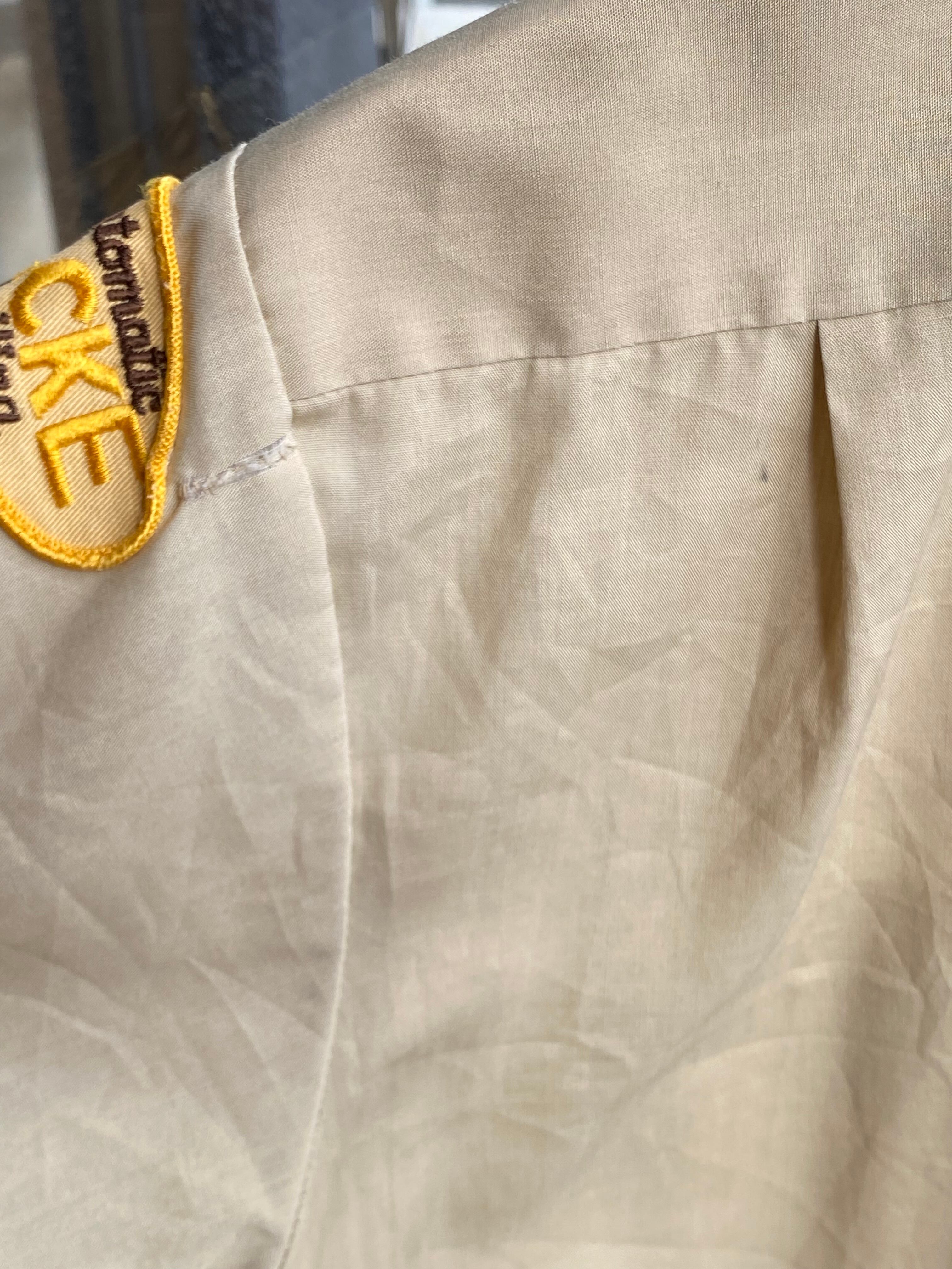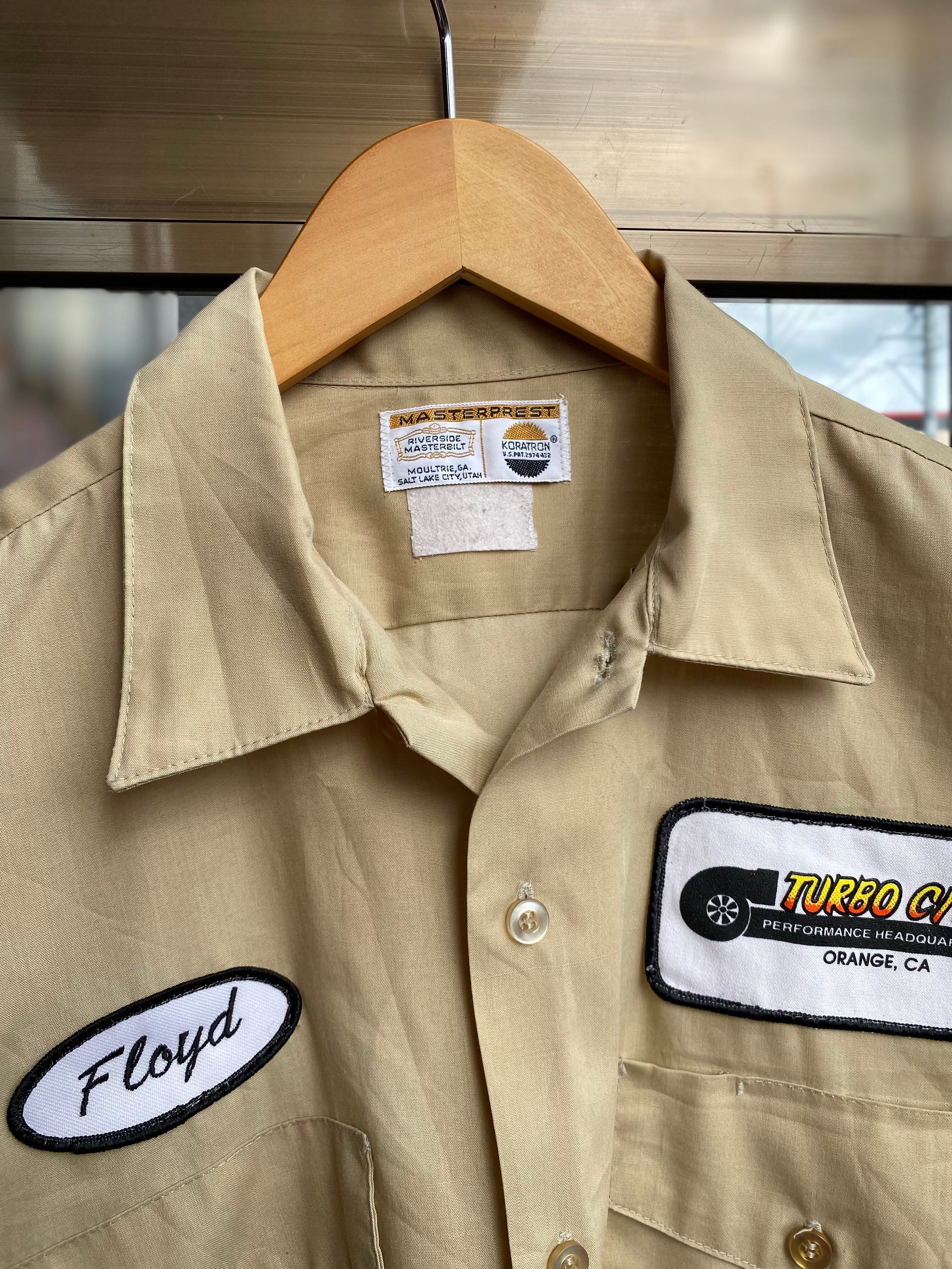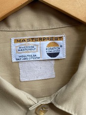 70's Vintage RIVERSIDE MASTERBILT "KORATRON" 半袖ワークシャツ Mサイズ ベージュ カーキ オープンカラーシャツ 開襟シャツ ポリコットン カスタムショップ
