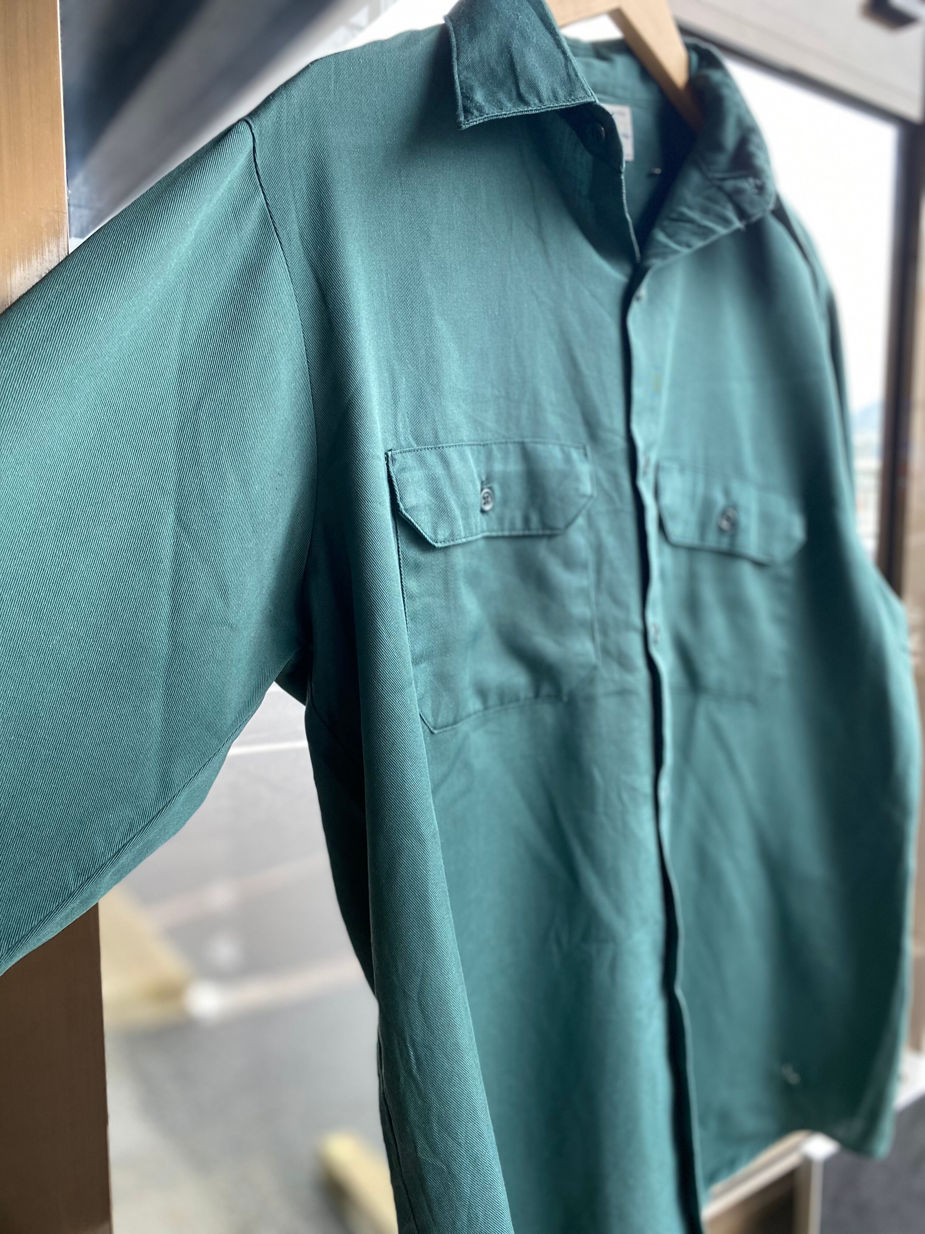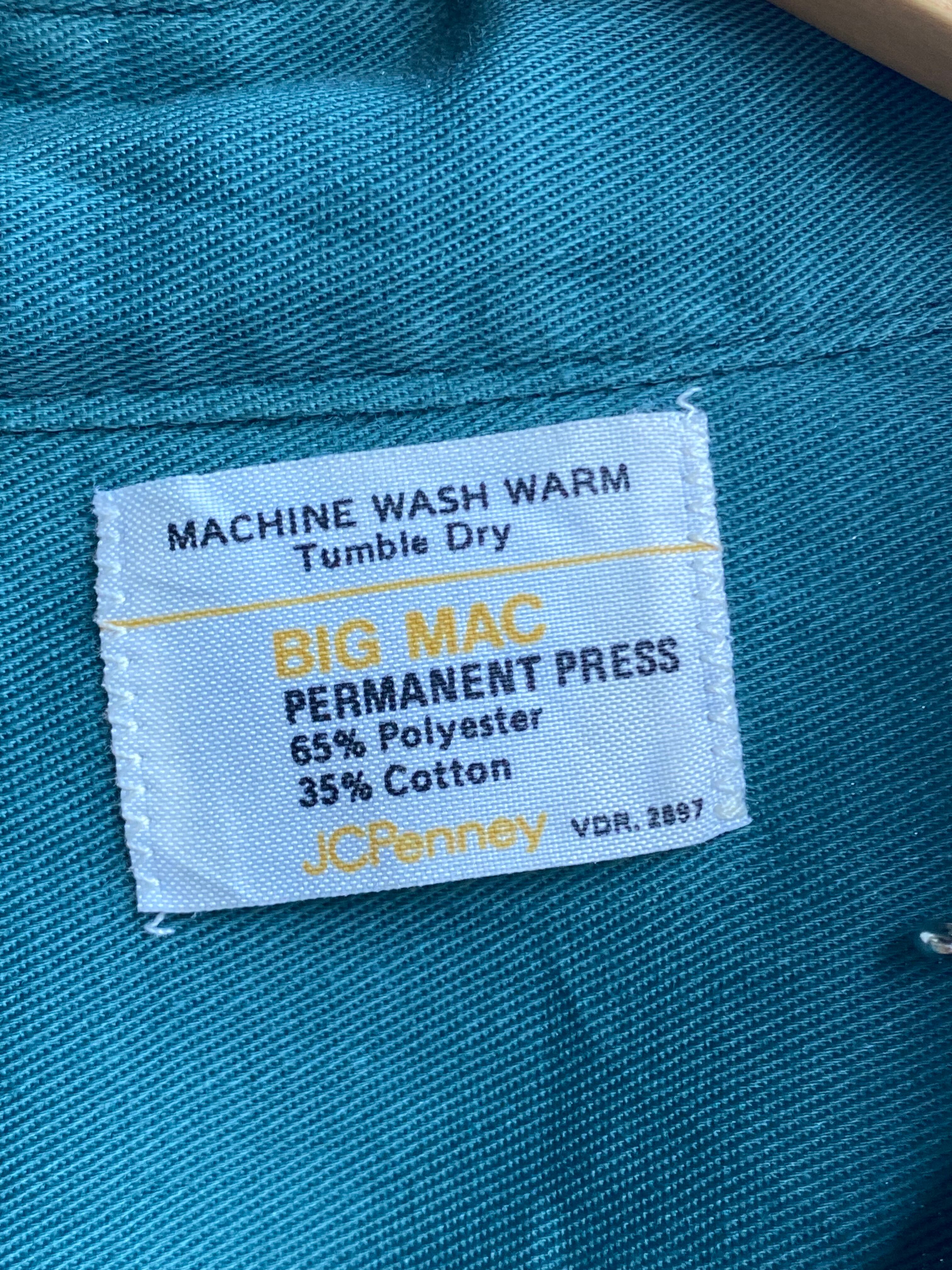 70's BIG MAC 長袖ワークシャツ Lサイズ ピーコックグリーン J.C.Penney PERMANENT PRESS