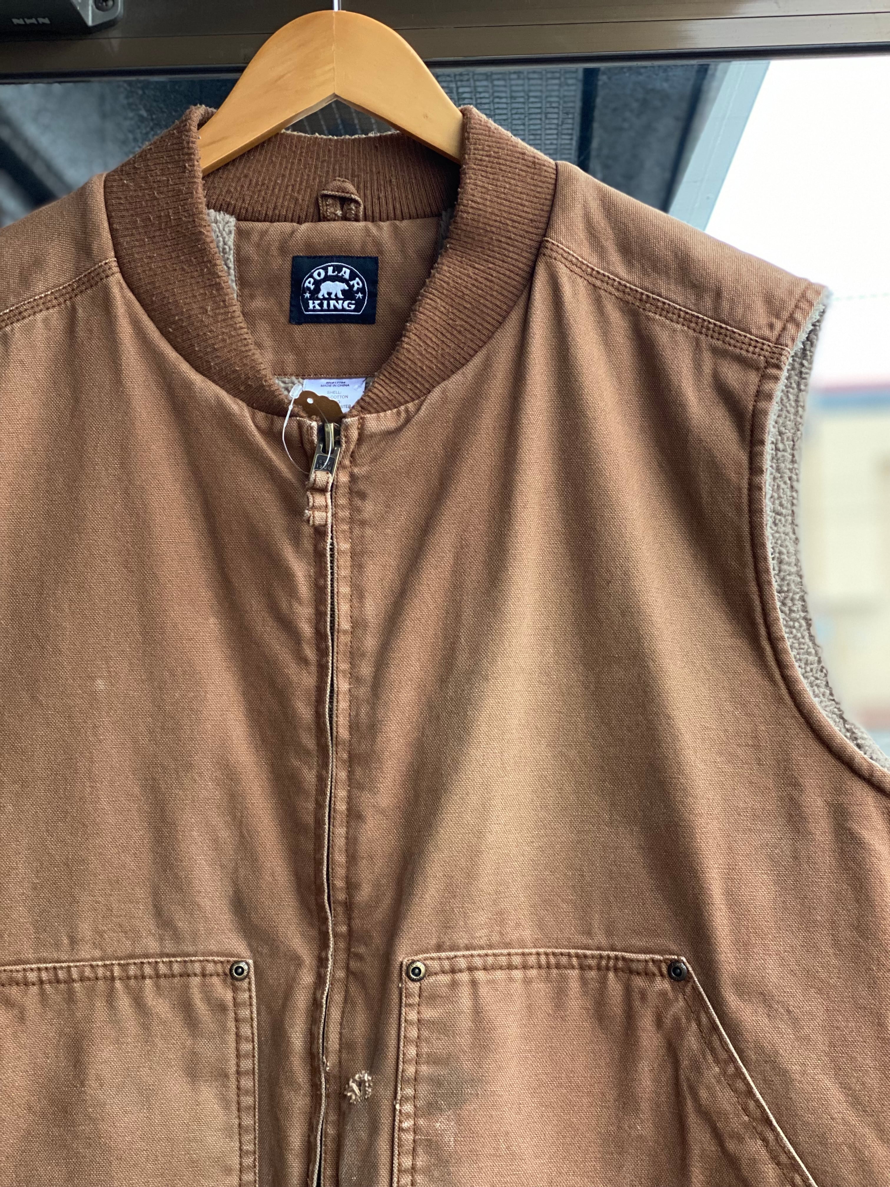 00's POLAR KING ダックベスト XL キャンバスダック ワークベスト ブラウンダック ボアベスト 裏ボア