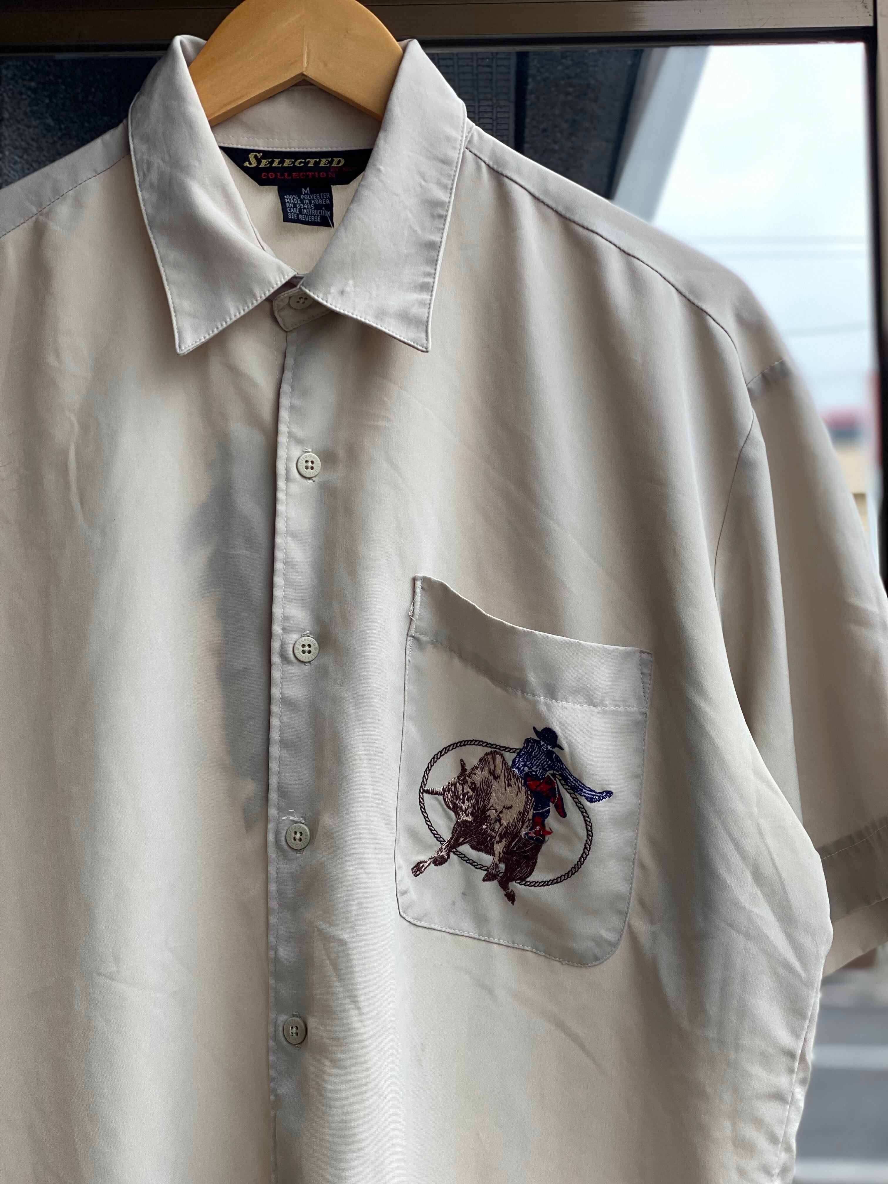 SELECTED BY KELINの刺繍入り半袖ポリエステルシャツになります。