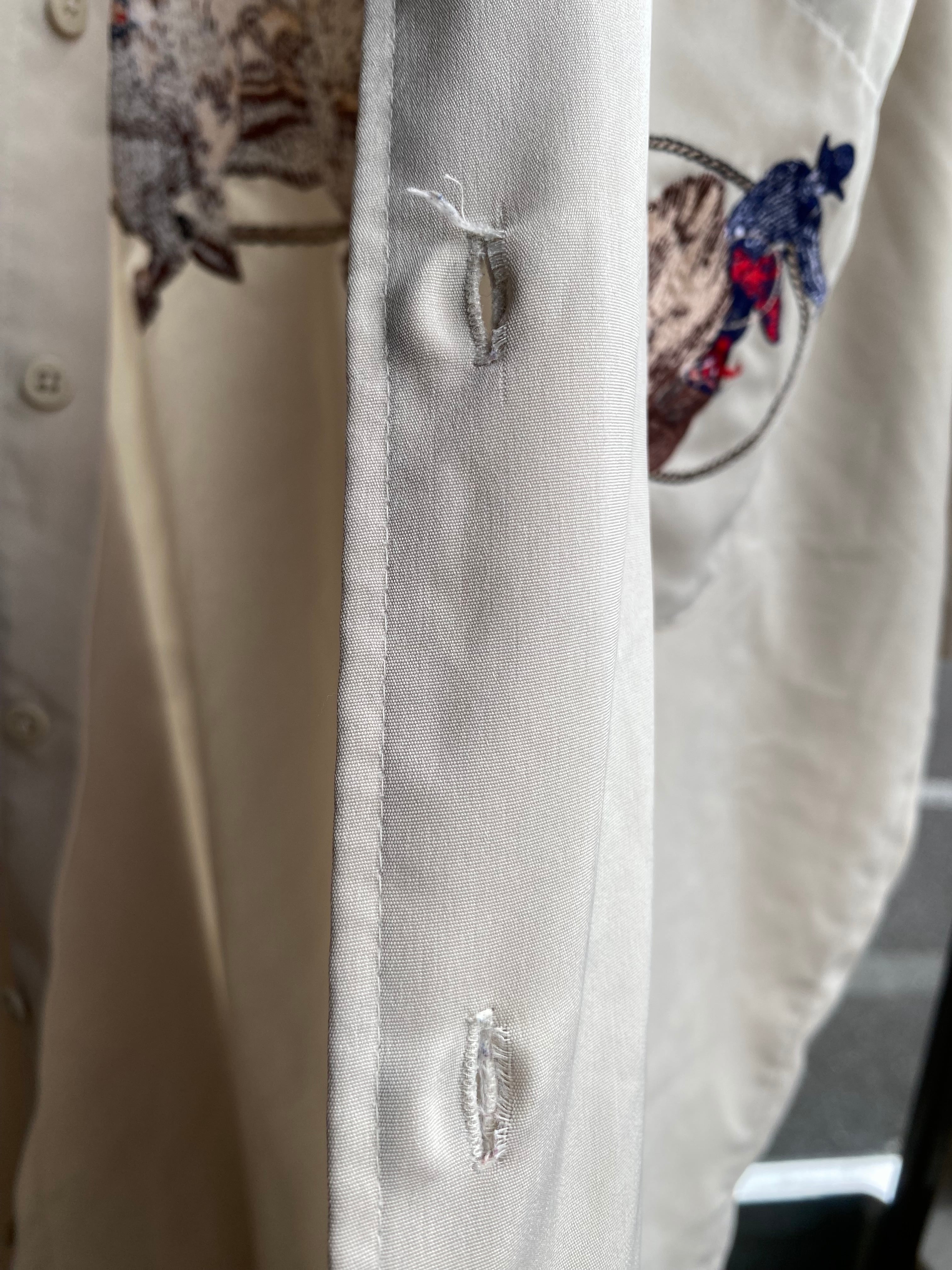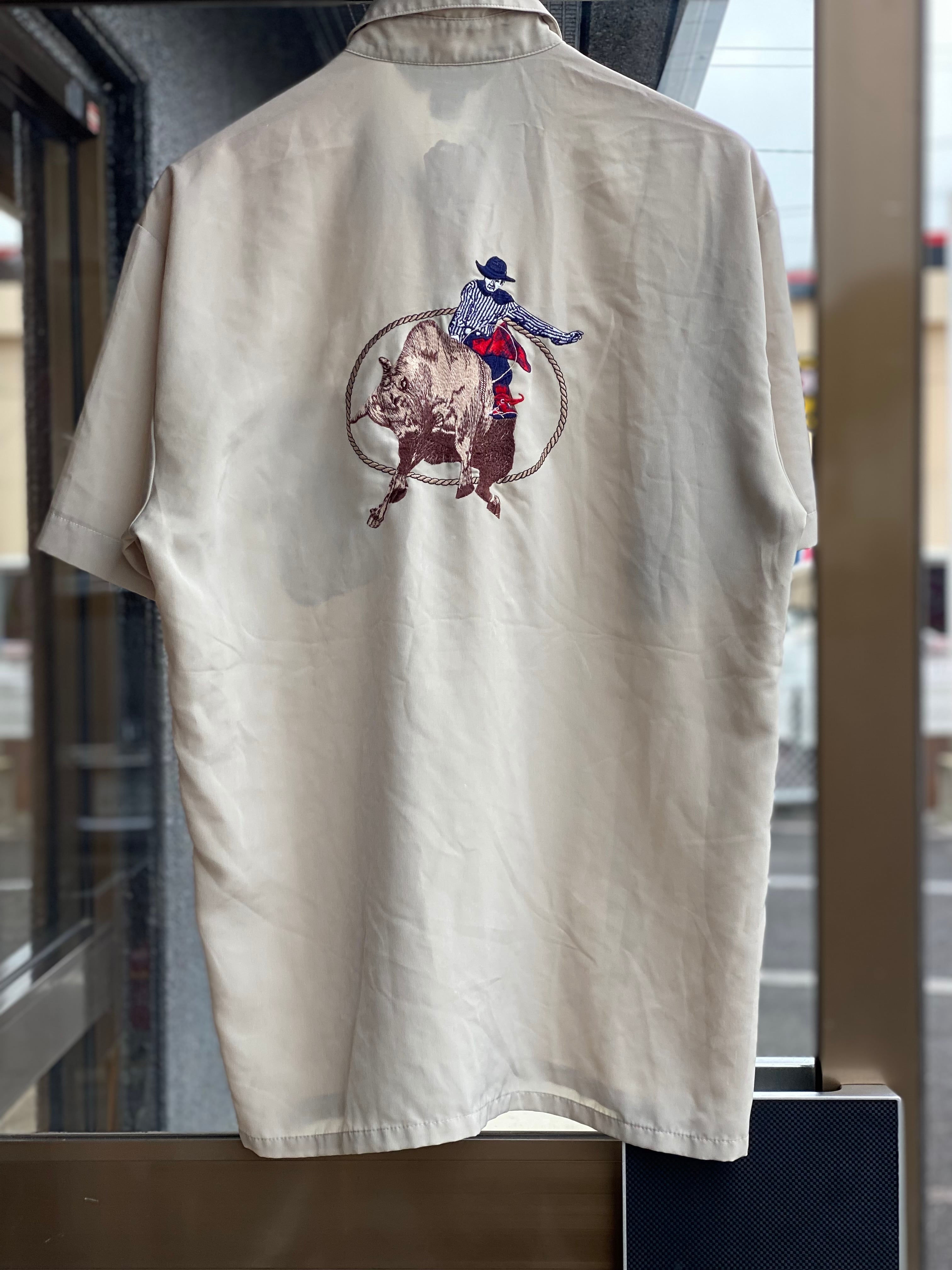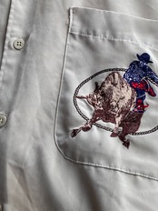 フロントポケット及び背中に闘牛士?カウボーイ?のような刺繍が入ります。