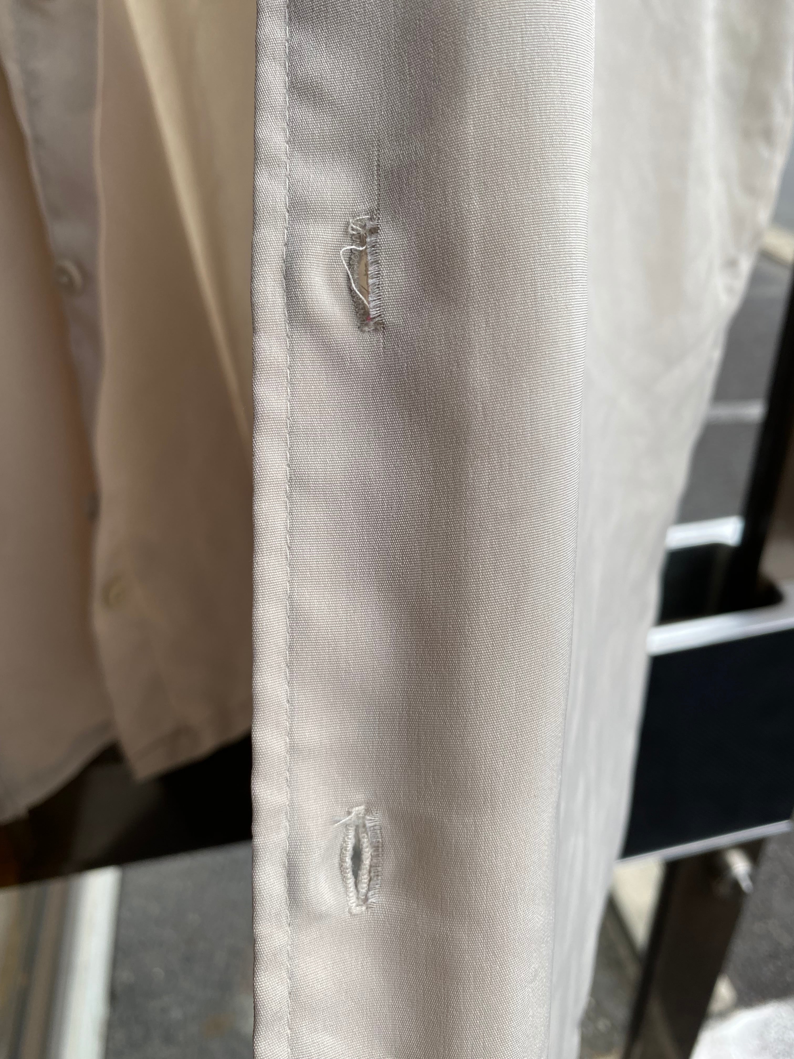 胸ポケット周辺に僅かな汚れ、裾両サイドと各ボタンホールに小さな裂けのような物がありますがとりあえず着用に支障はありません。