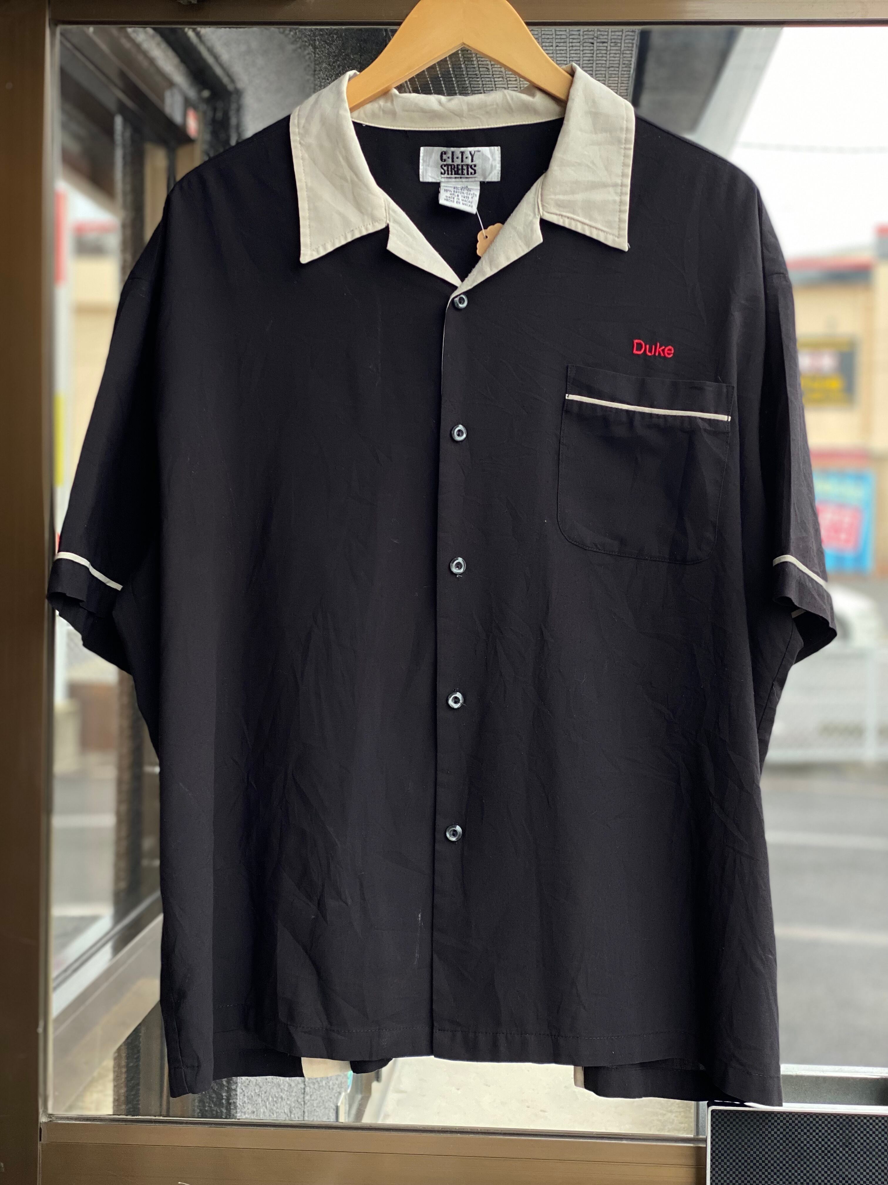90~00's CITY STREETS 刺繍入り半袖ボーリングシャツ XLサイズ ブラック レーヨン J.C.Penney J.C.ペニー ボウリングシャツ ロカビリー ロックンロール オープンカラーシャツ