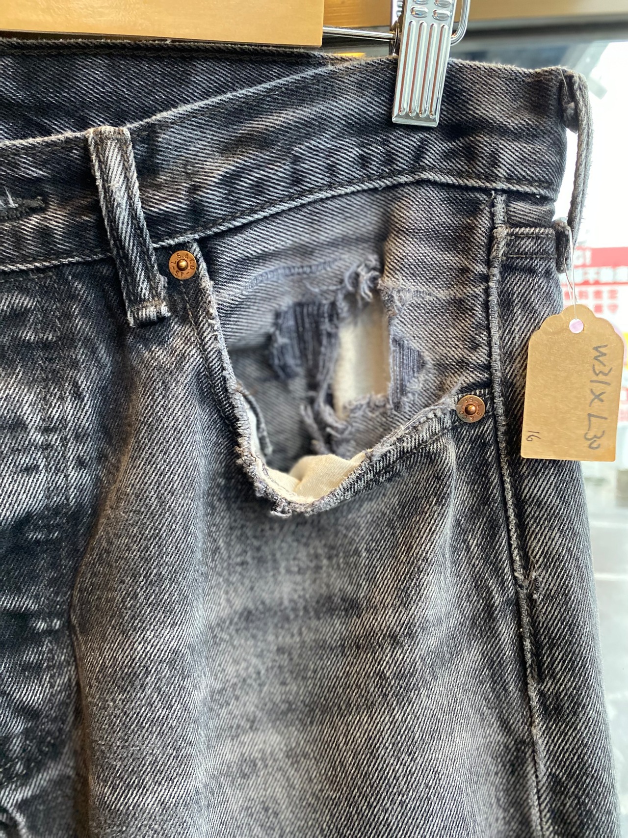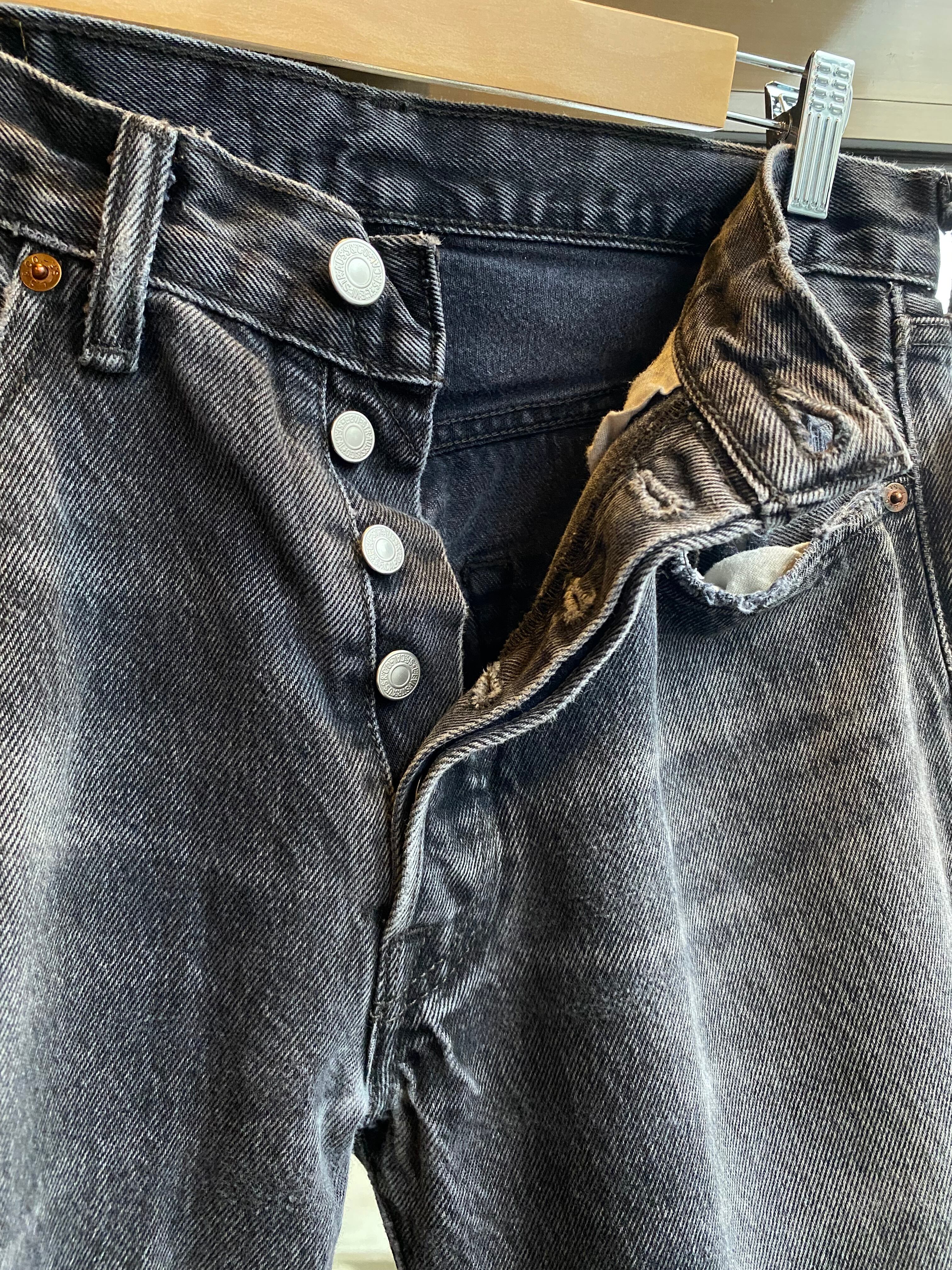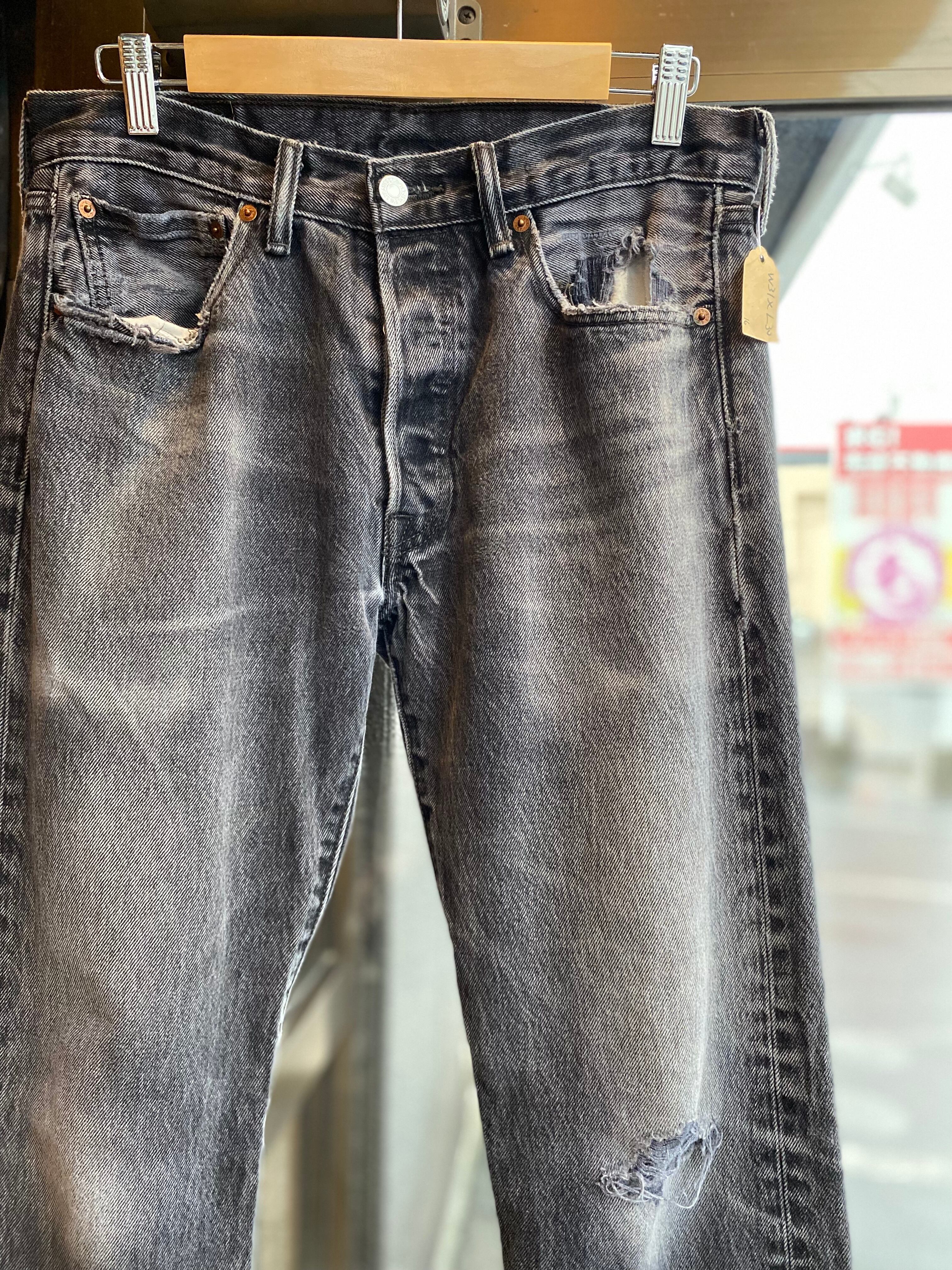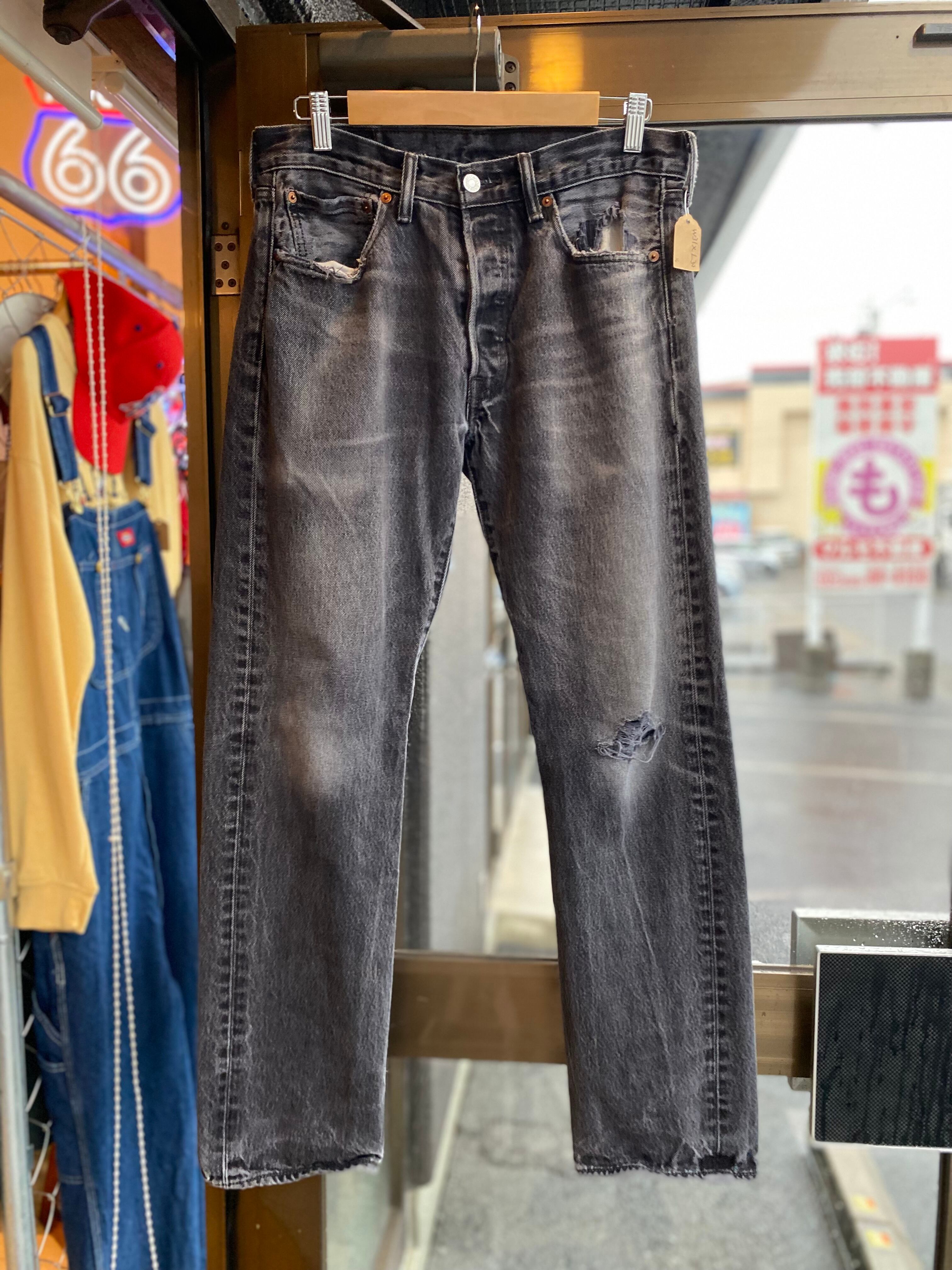 Levi's 501 ブラックデニムパンツ W31×L30 ストレート ジーンズ ブラックデニム 黒デニム ボロ ダメージジーンズ