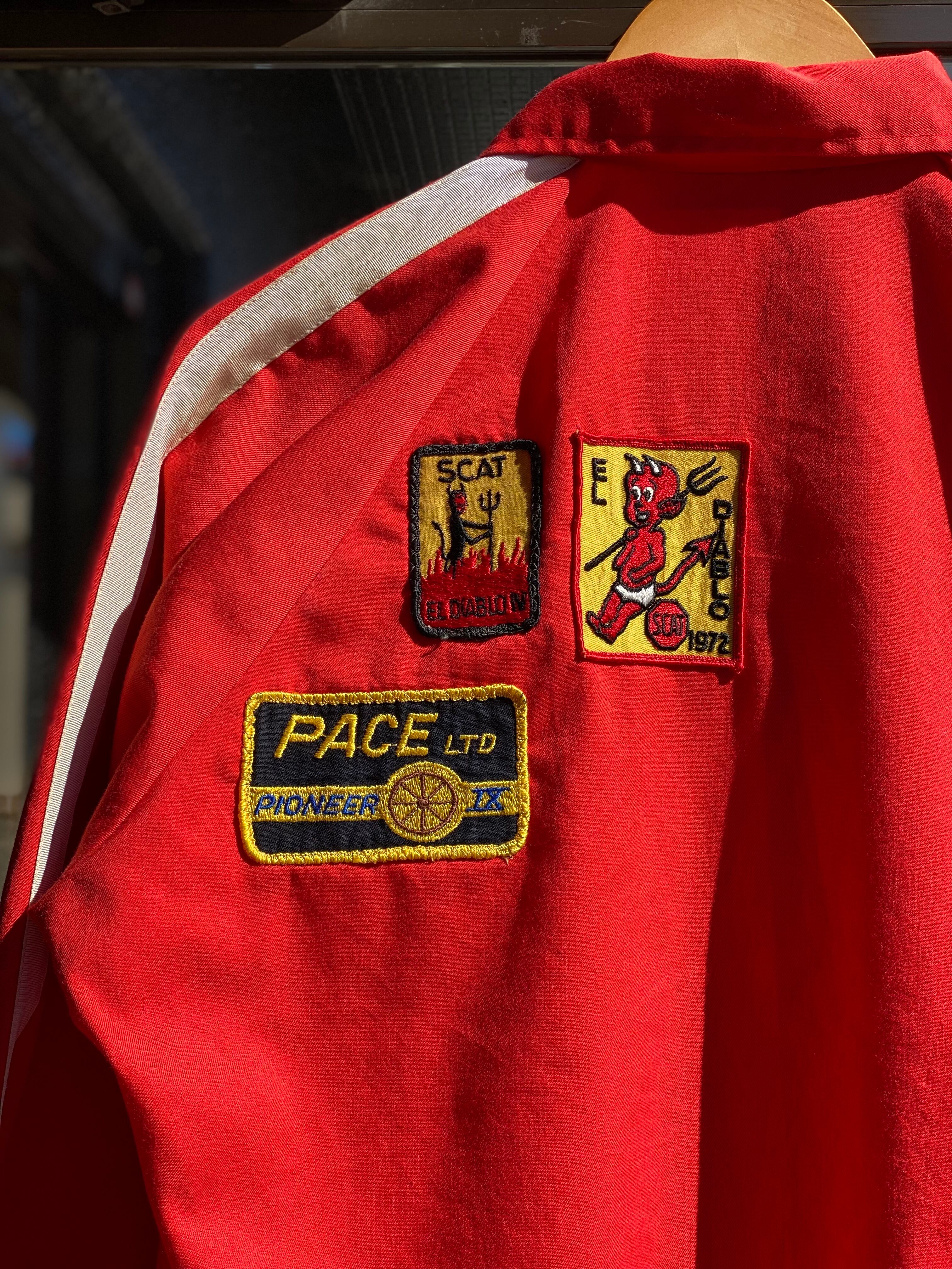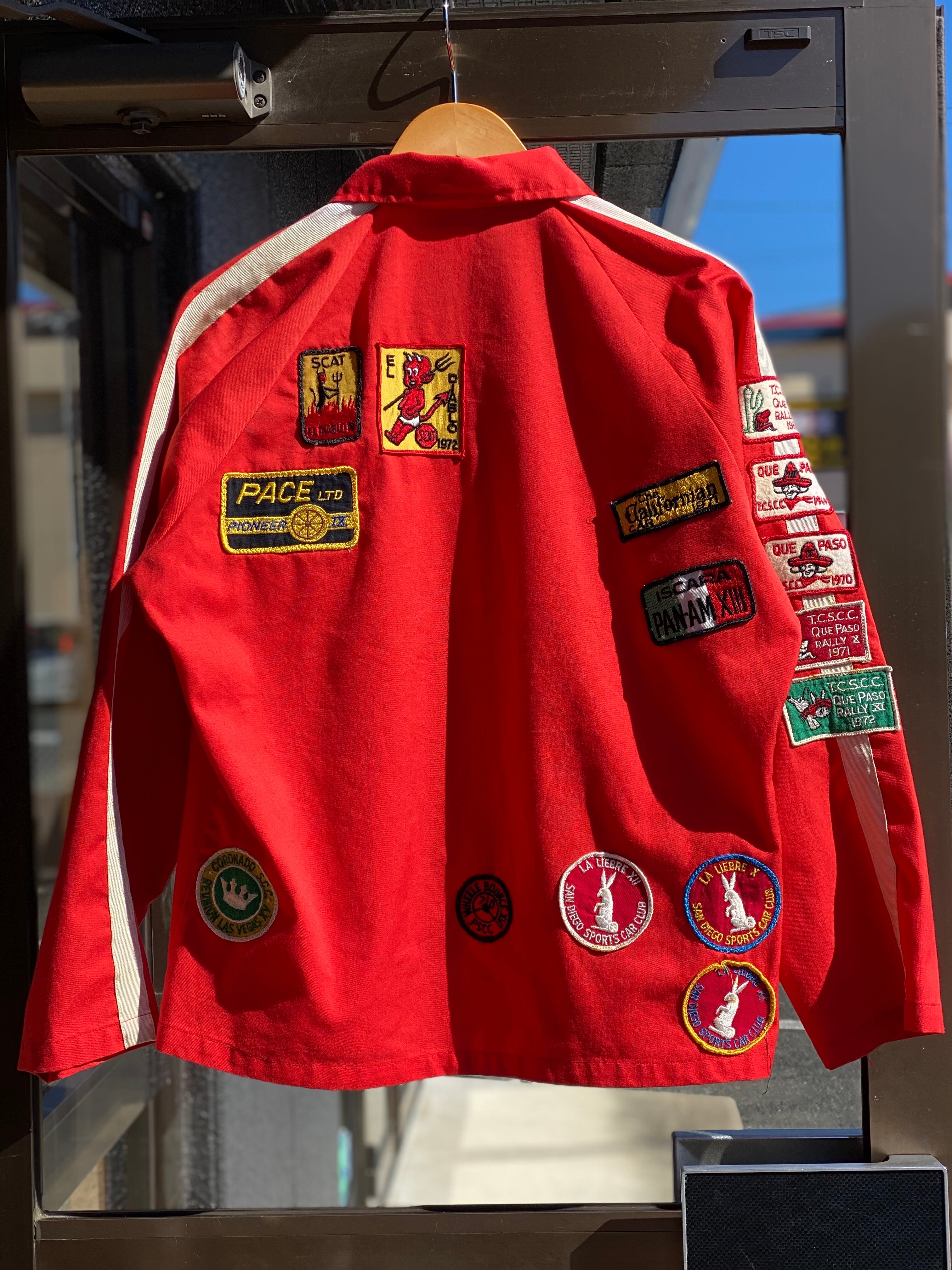 60~70's vintage unknown ドリズラージャケット Mサイズ ワッペン ヴィンテージ ビンテージワッペン カークラブ カーコート ホットロッド hotrod 赤 棒TALON スイングトップ スポーツジャケット