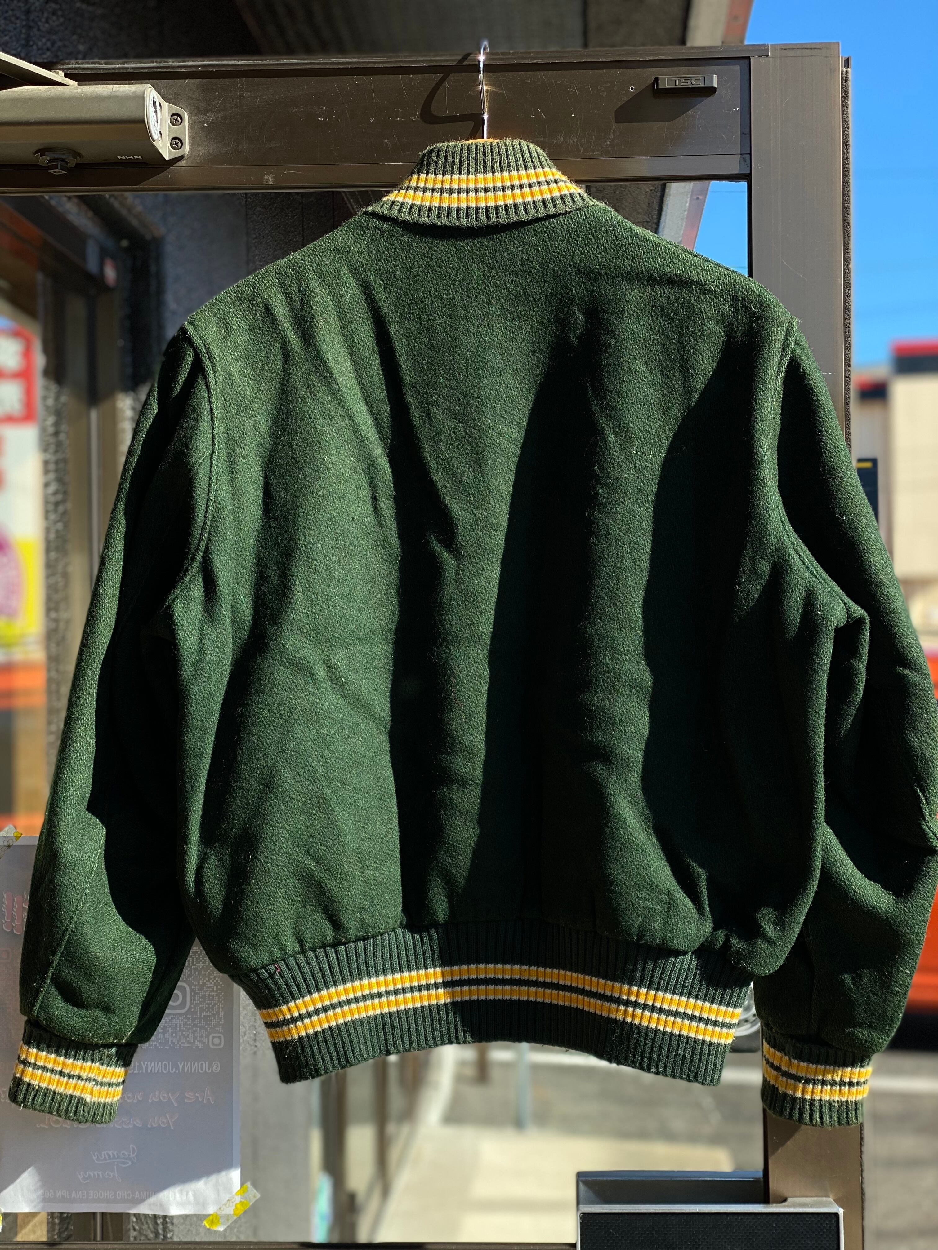 70~80's Vintage DeLONG ウールスタジャン 40 Lサイズ ダークグリーン アワードジャケット スタジアムジャンパー ウールジャケット 短丈 ボックスシルエット MADE IN U.S.A.