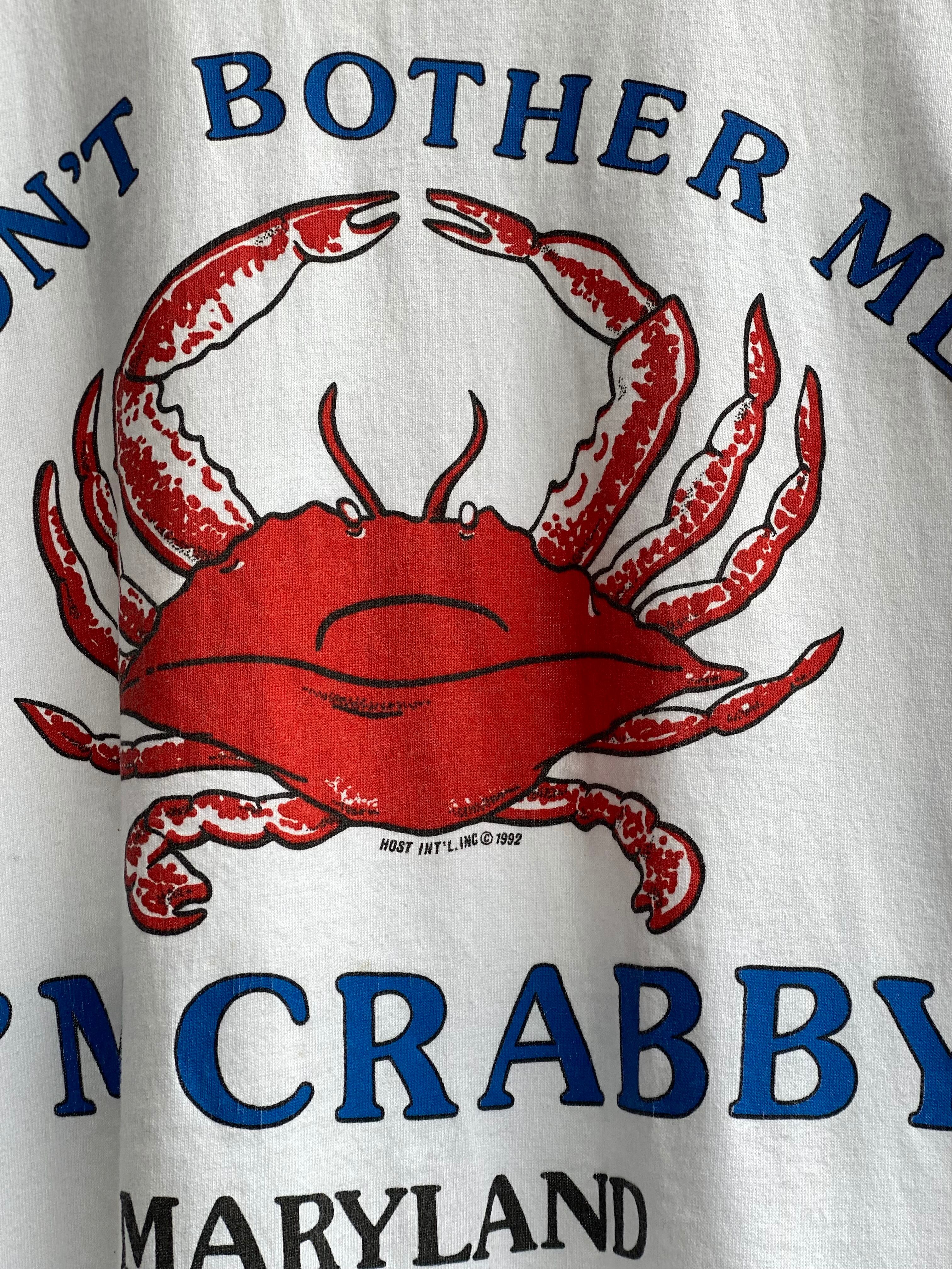 90's "DON'T BOTHER ME I'M CRABBY" Tシャツ L〜XLサイズ程 カニ 蟹 maryland 1992年 シングルステッチ 90年代