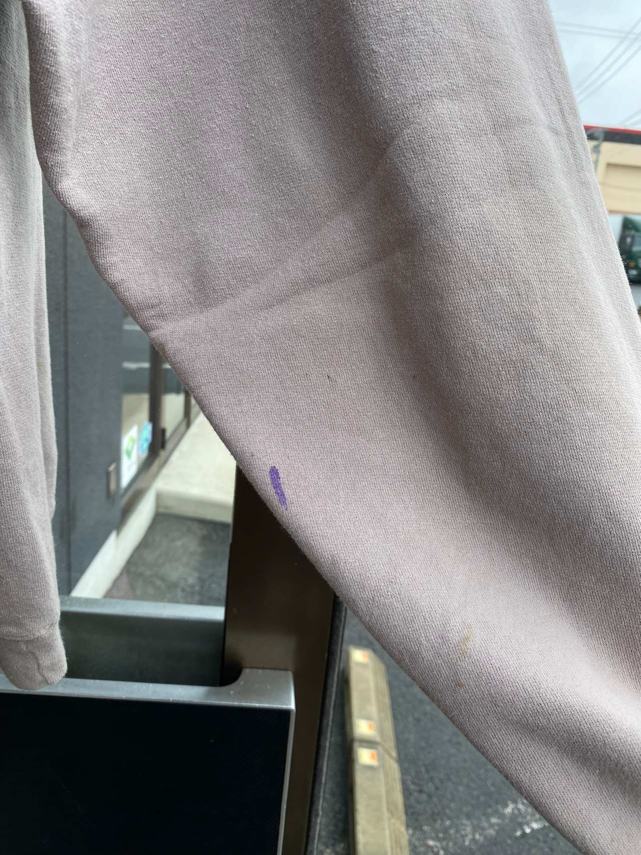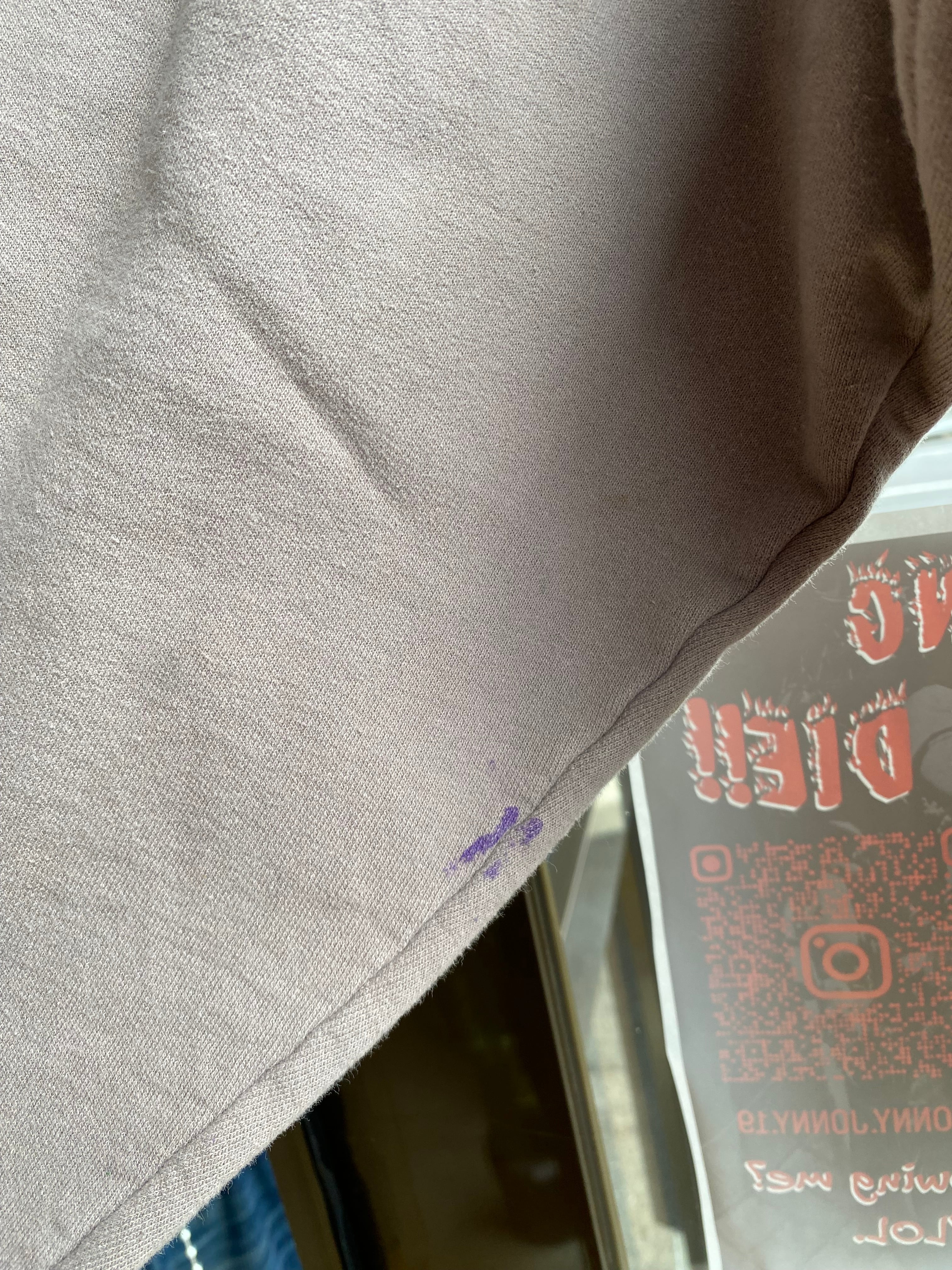 右腰元、右腕に紫色のインクのような汚れ、左肩の辺りに色抜け?があります。
