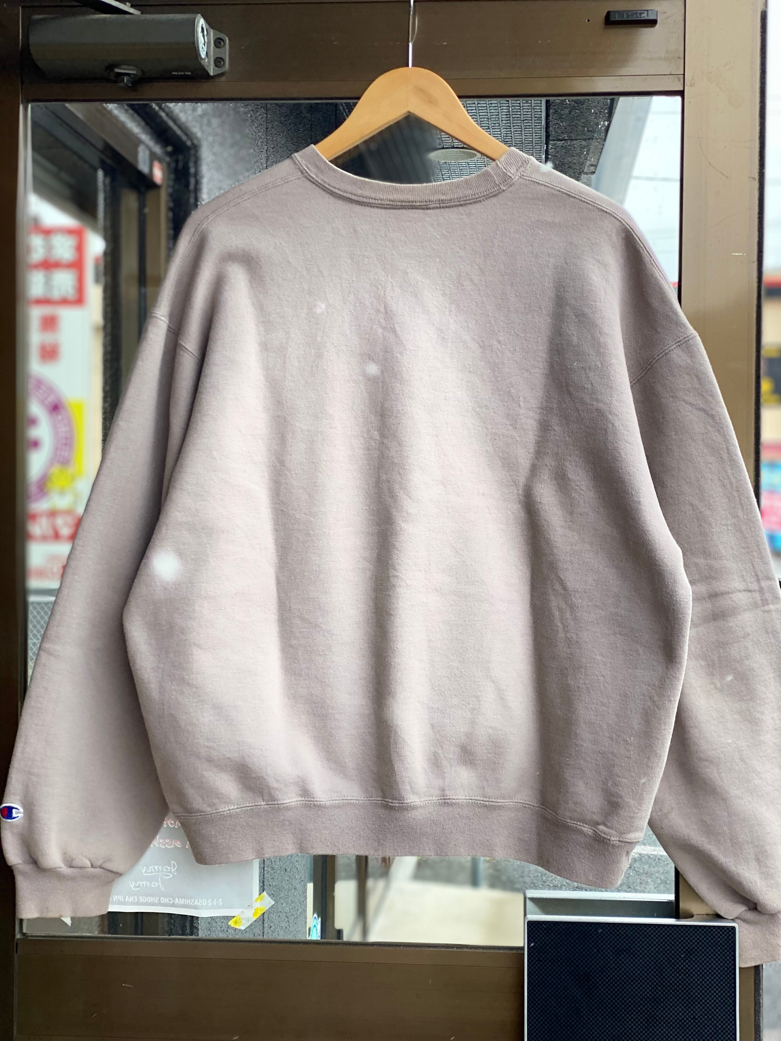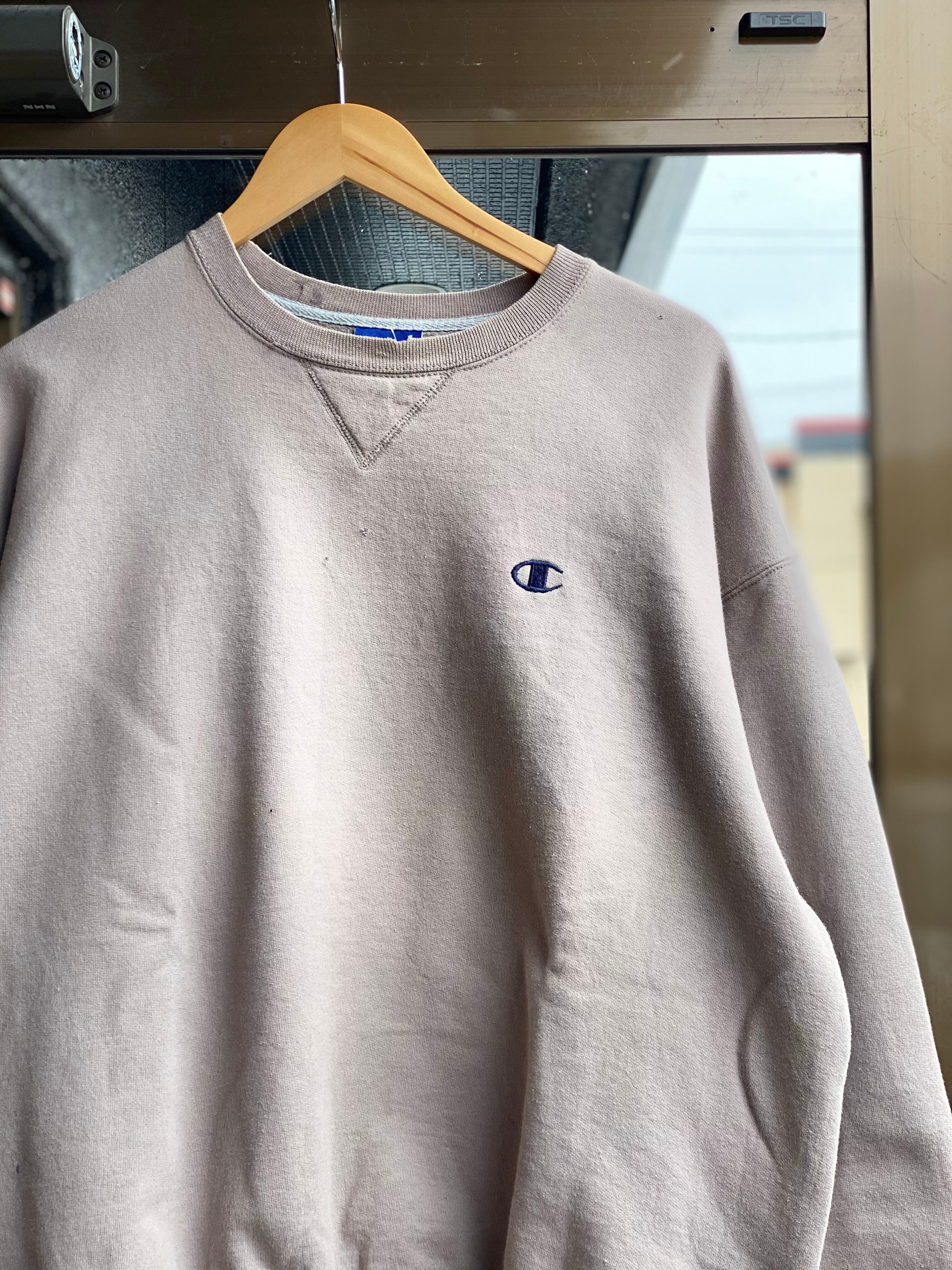 Champion 前Vガゼットスウェットシャツ Lサイズ ベージュ メキシコ製 チャンピオン ワンポイント刺繍 ミルクティー シンプル くすみカラー ダメージ トレーナー