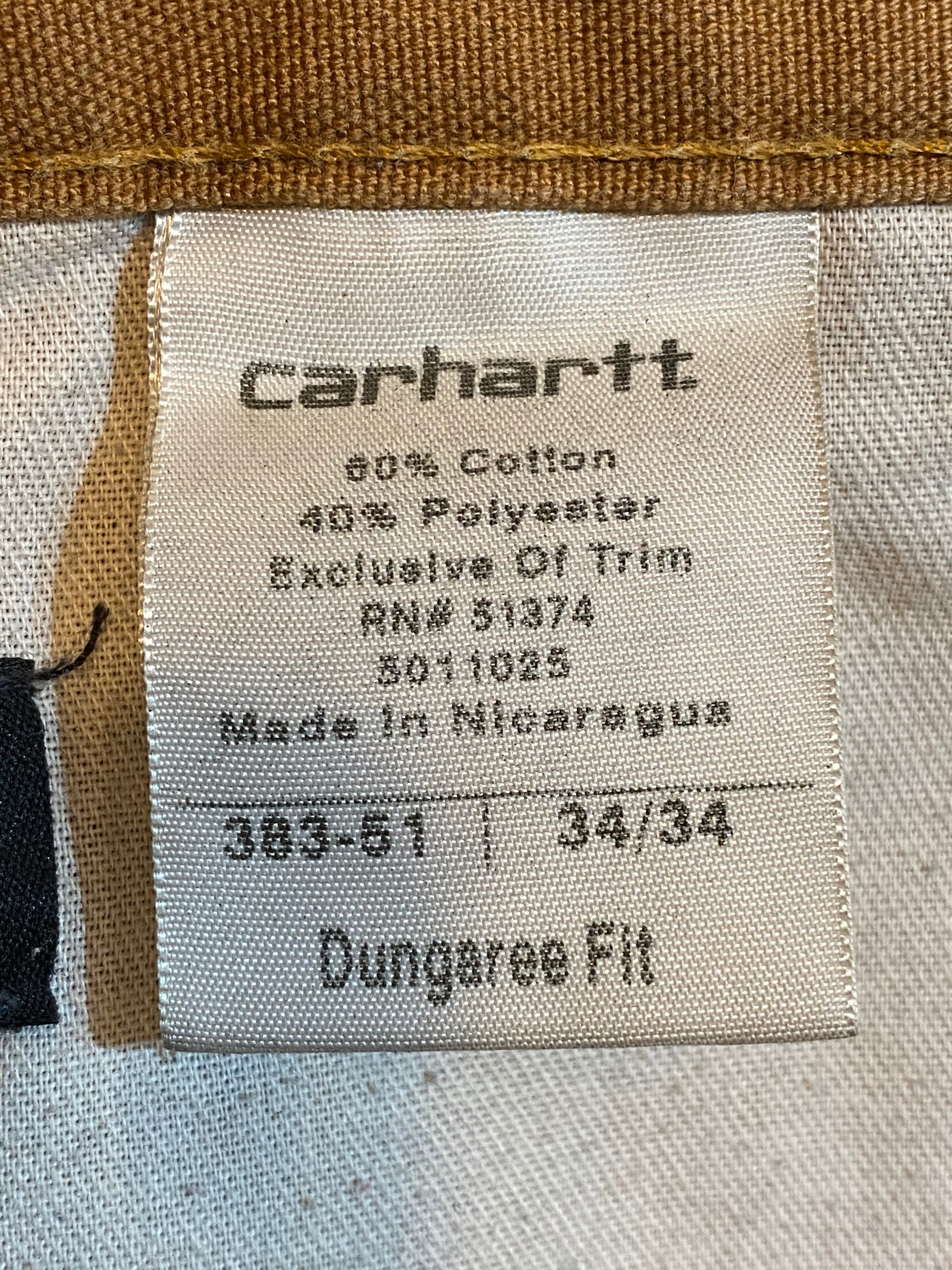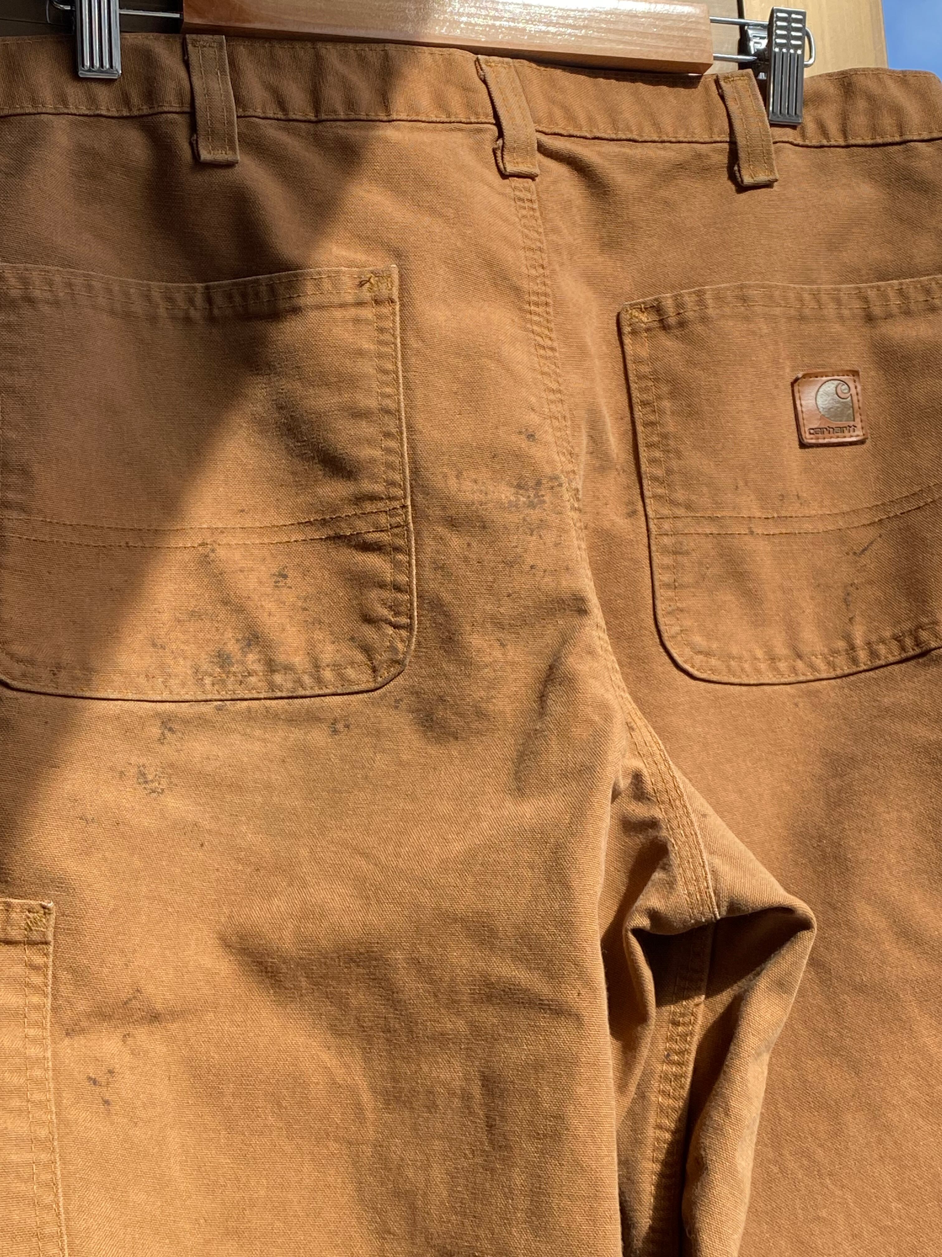 Carhartt 383-51 dungaree fit ライトウェイトキャンバスダックカーペンターパンツ W35×L33 カーハート ペインターパンツ ブラウンダック ダメージ 作業着 ワークウェア